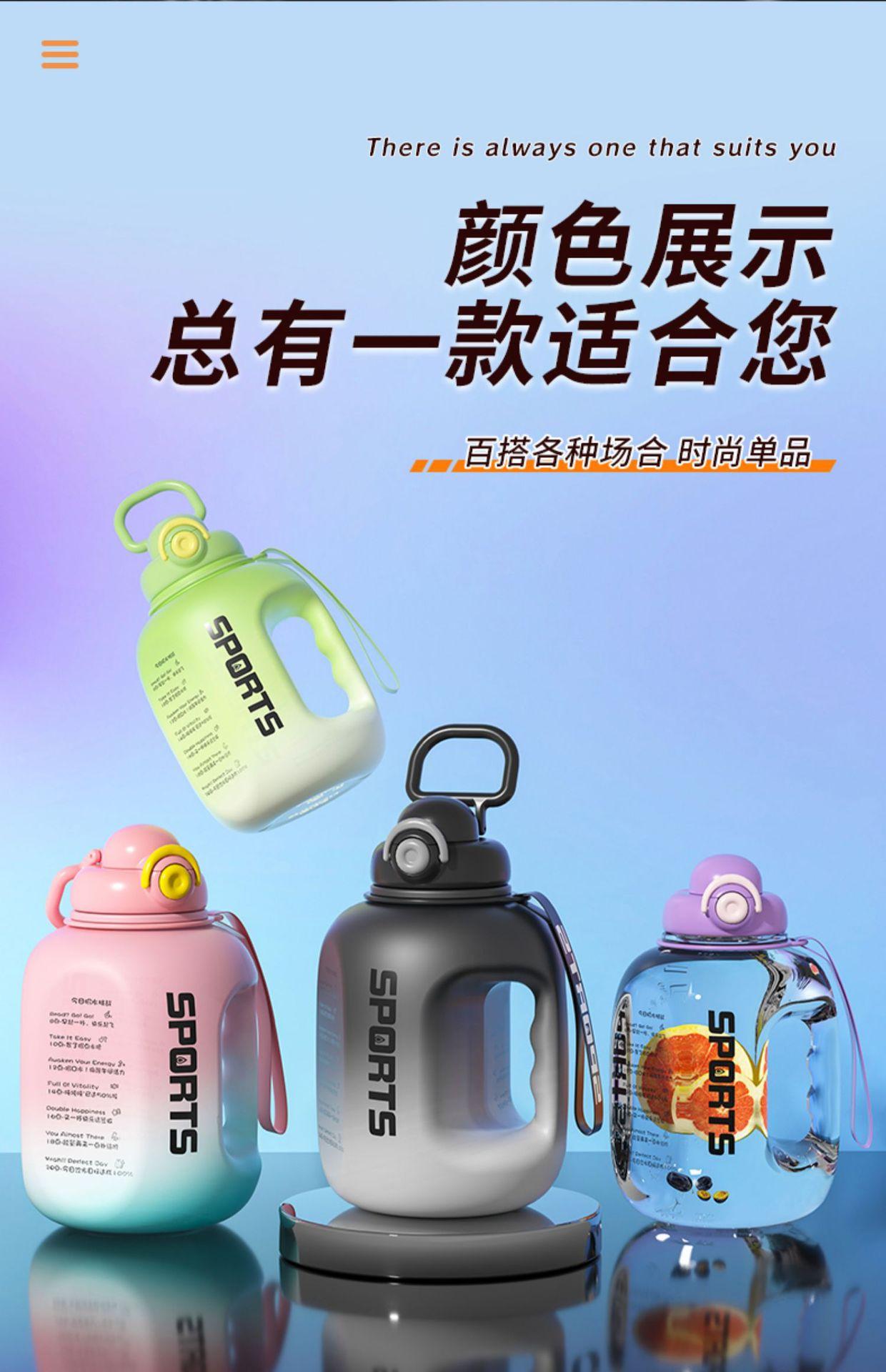 Vaso de agua popular de gran capacidad Ton-Ton personalizado de fábrica para deportes y fitness, portátil, de plástico resistente a altas temperaturas, vaso espacial ligero