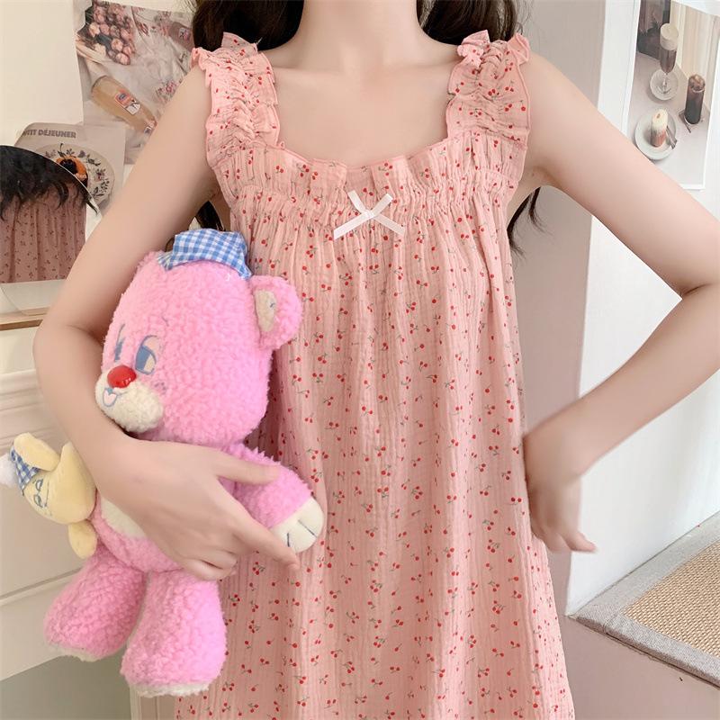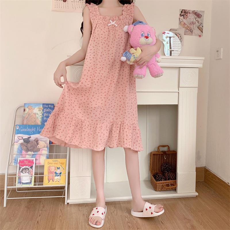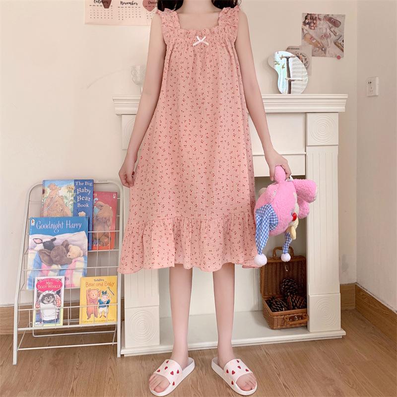 2022 Pijama de Tirantes Camisón de Mujer Estilo Coreano ins Lindo Corazón de Niña Falda Verano Verano Ropa para el Hogar Se Puede Usar