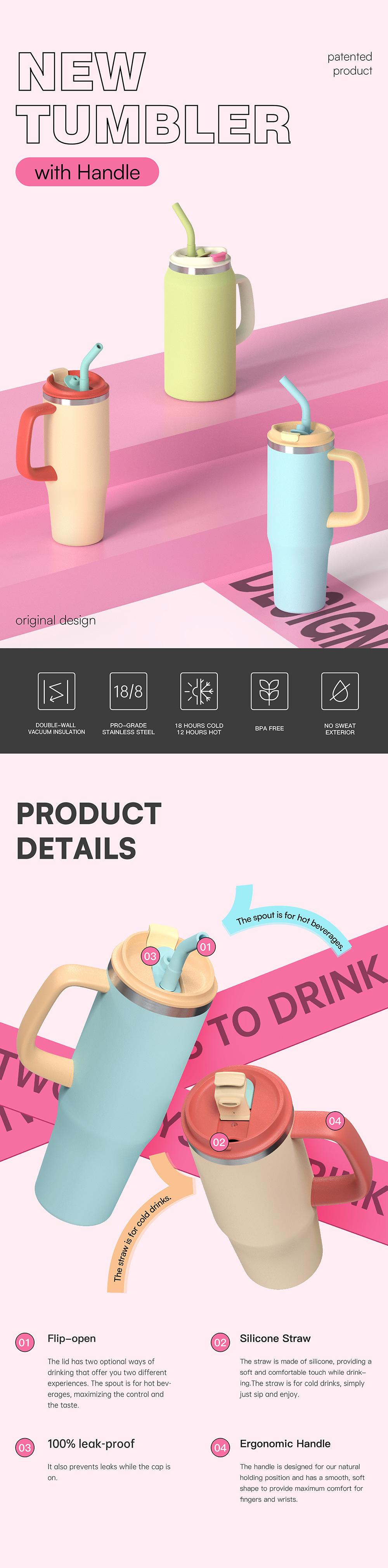Rose gold car cup, Sky blue car cup, Light green car cup, Patented double drinking lid car cup, Patented handl...