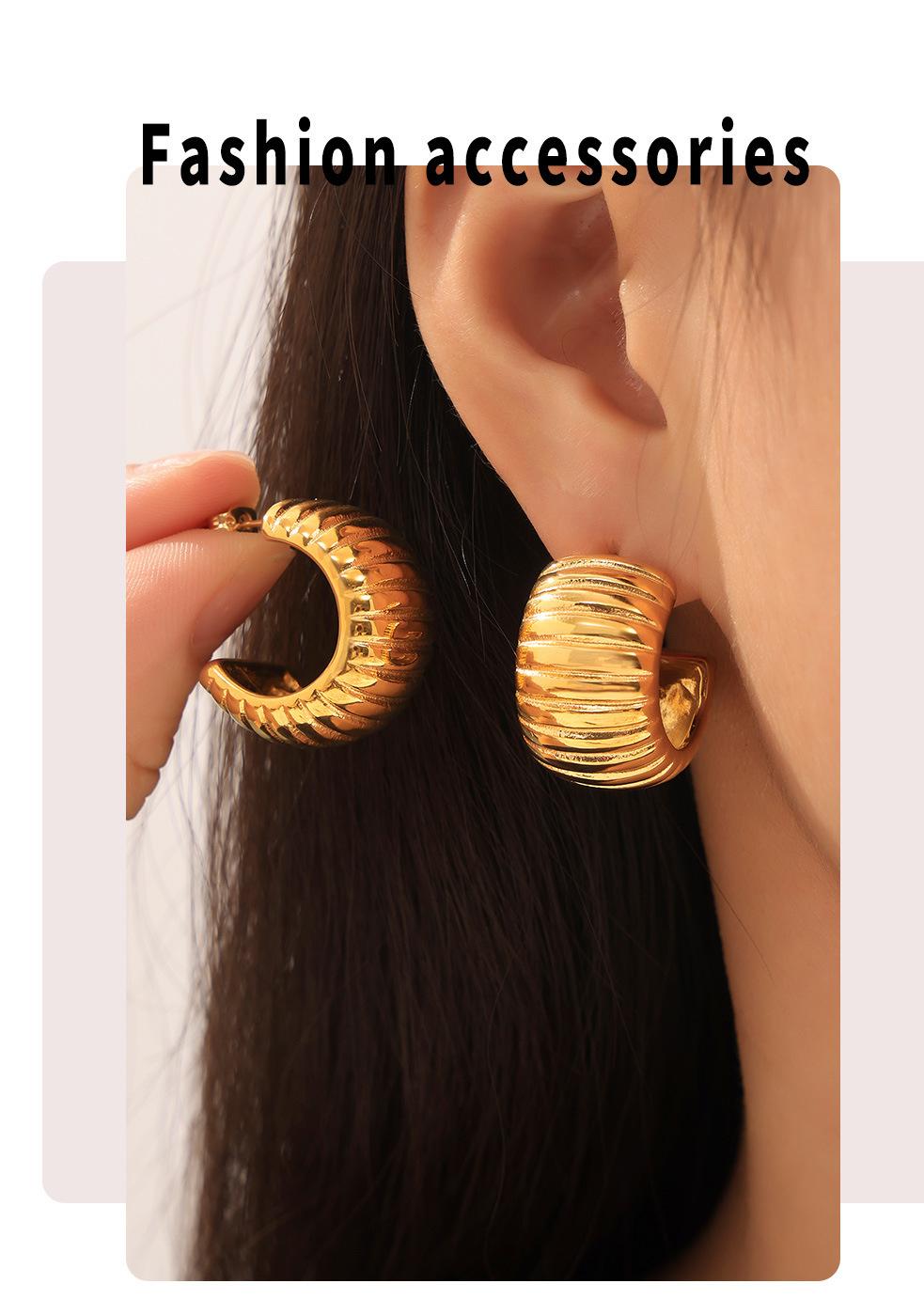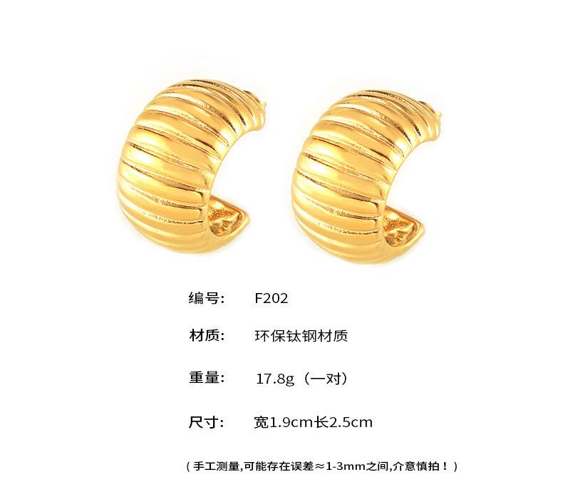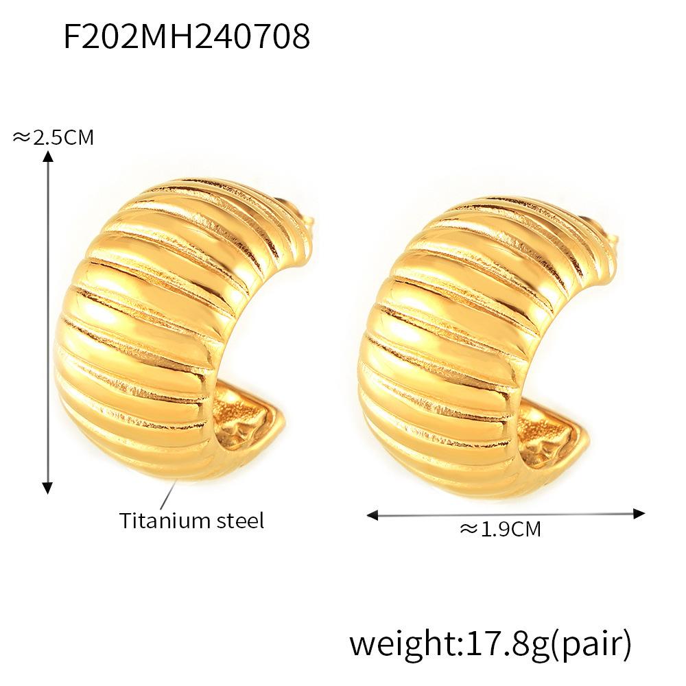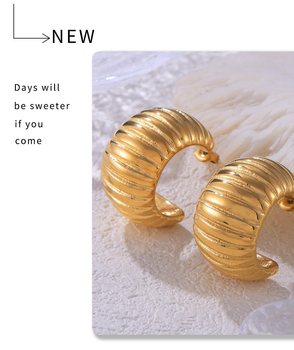 Pendientes de temperamento con rayas huecas transfronterizas, de acero de titanio chapado en oro real de 18 quilates, en forma de C, sin decoloración, sencillos y ligeros, de lujo, al por mayor para mujer
