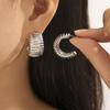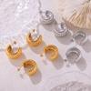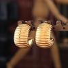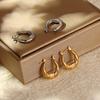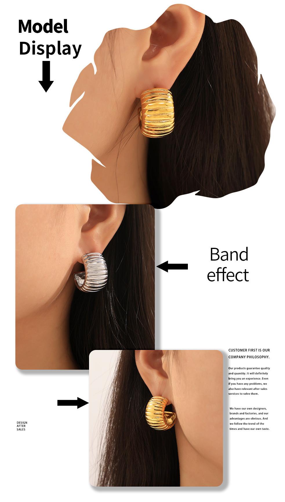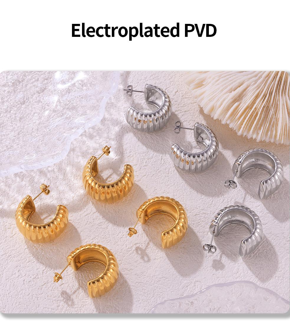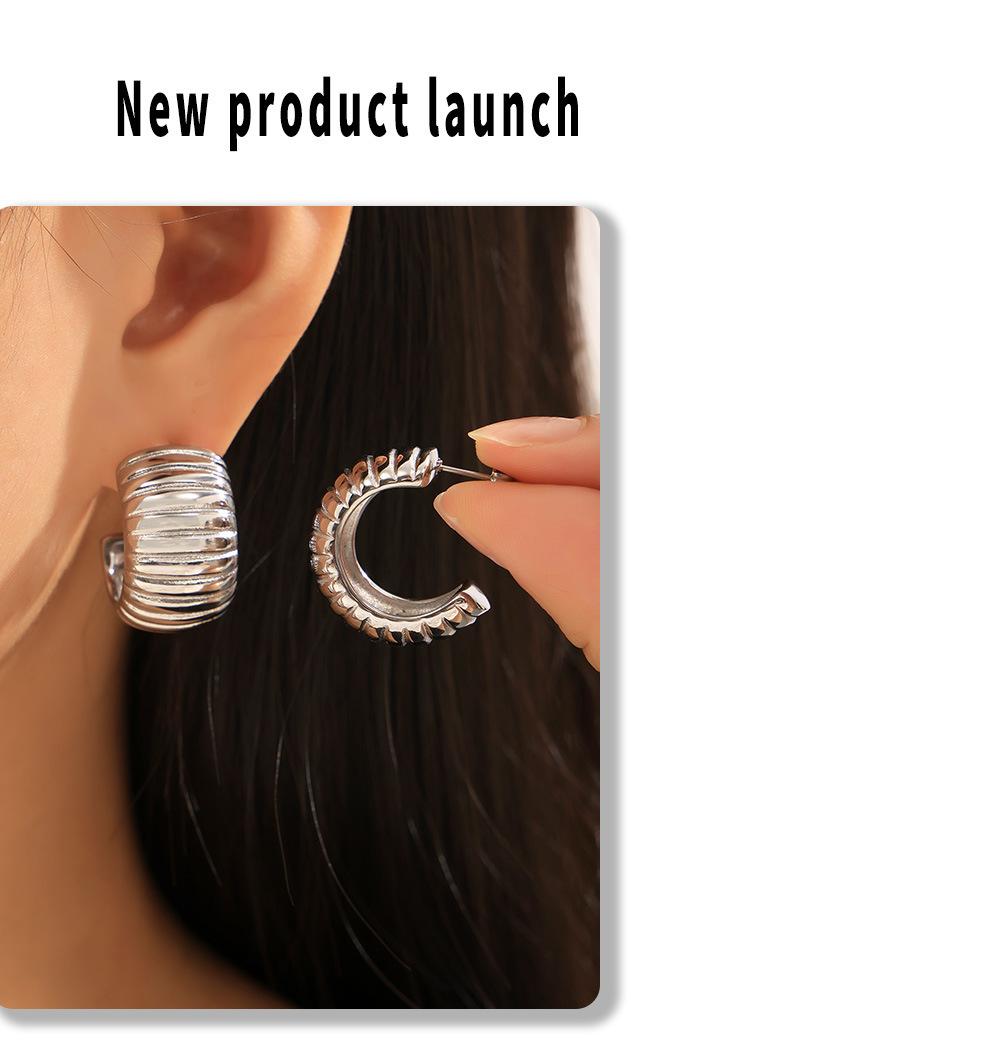 Pendientes de temperamento con rayas huecas transfronterizas, de acero de titanio chapado en oro real de 18 quilates, en forma de C, sin decoloración, sencillos y ligeros, de lujo, al por mayor para mujer