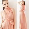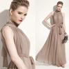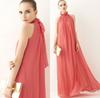 Vestido largo de gasa con cuello elegante y sexy para mujer, estilo europeo y americano, vestido bohemio con vuelo grande