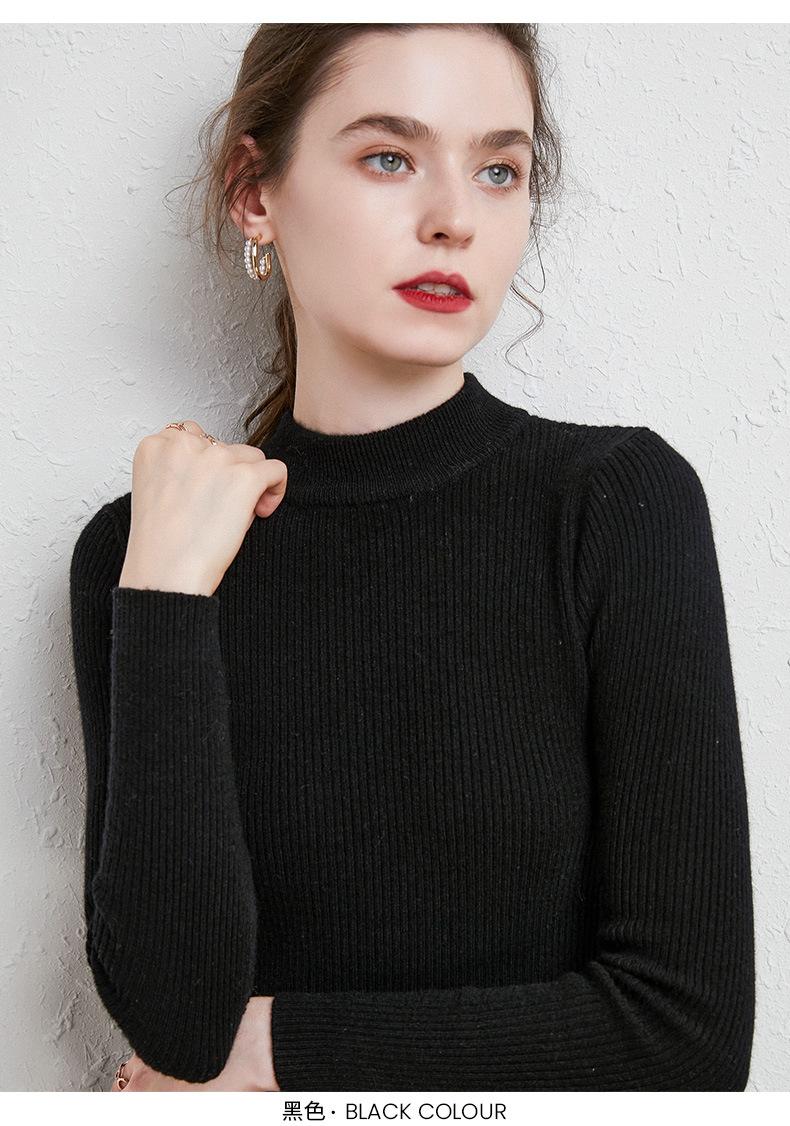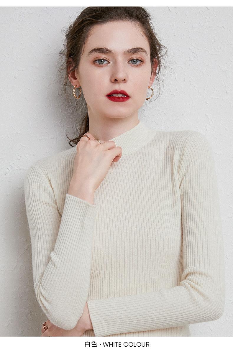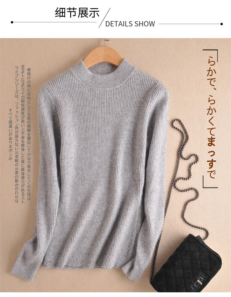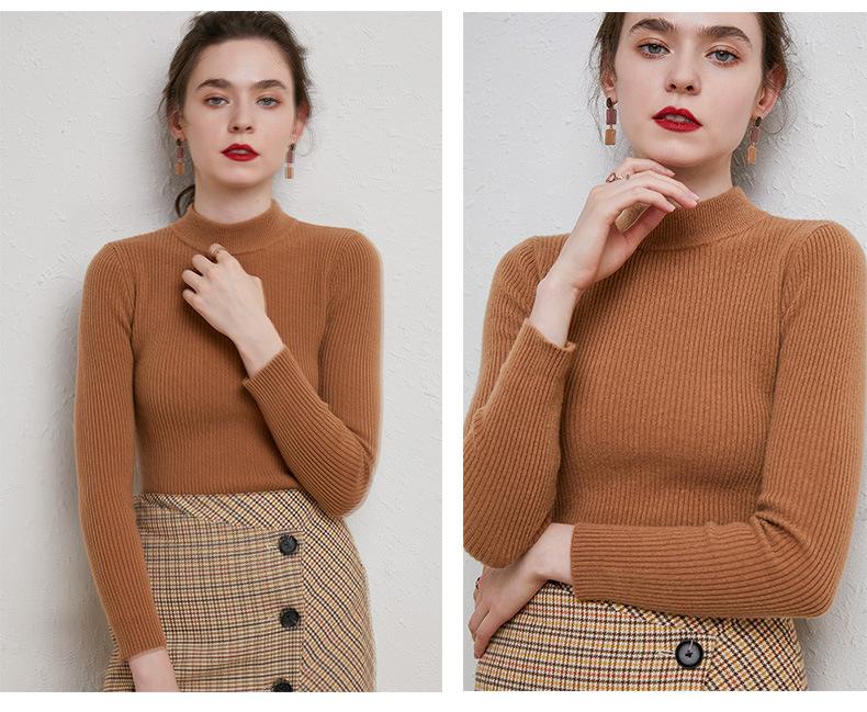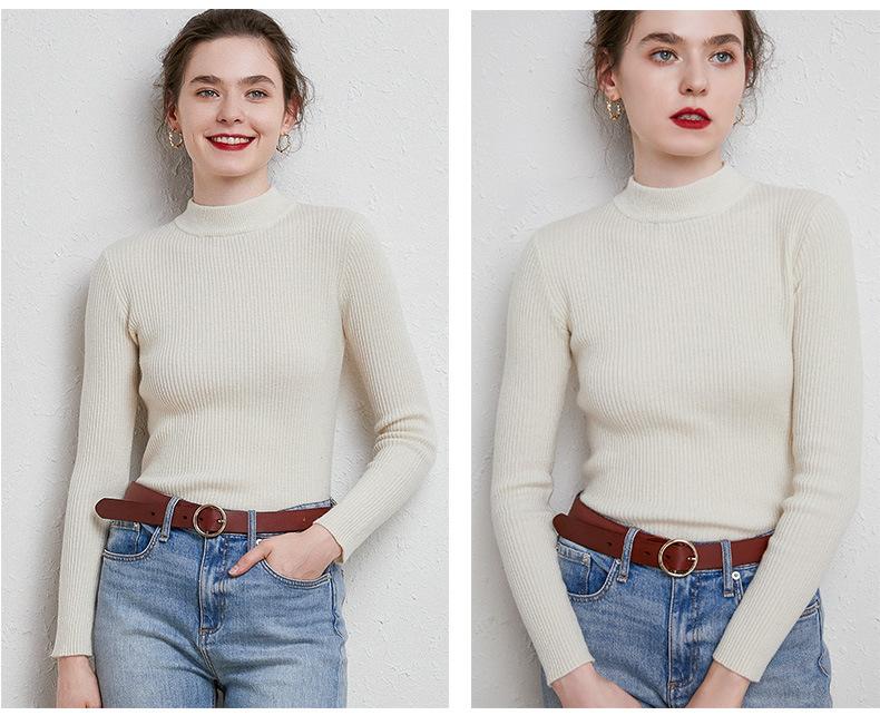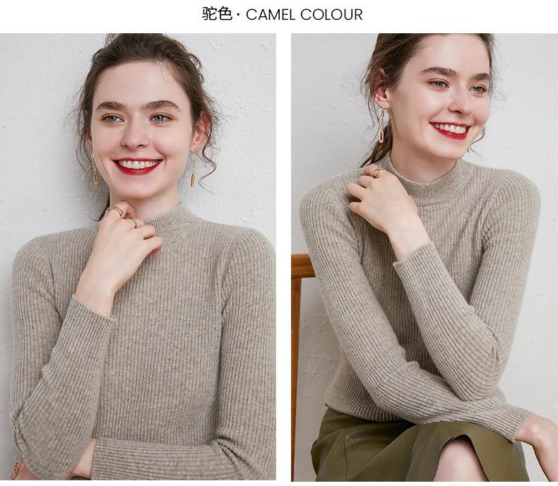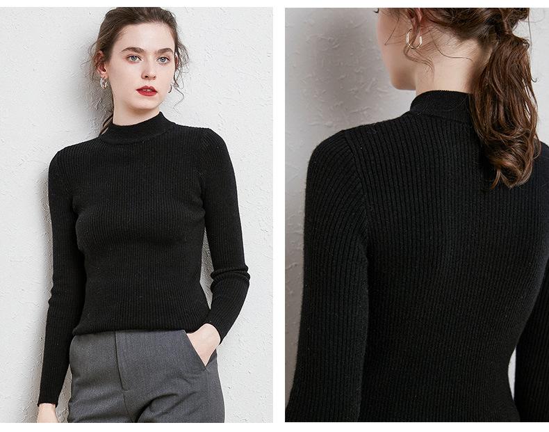 Suéter ajustado de cuello medio alto para mujer, suéter adelgazante de otoño e invierno, nuevo, de manga larga, informal, sencillo, cálido, de color sólido.