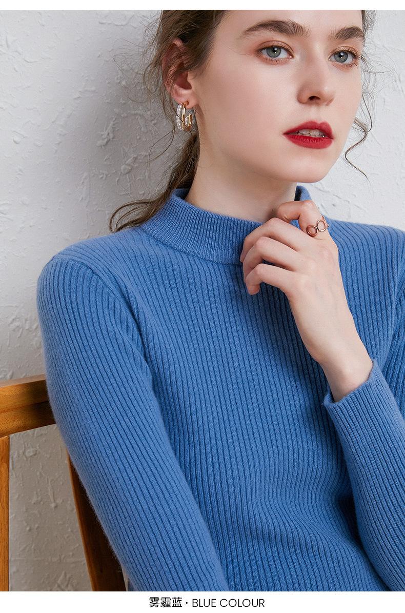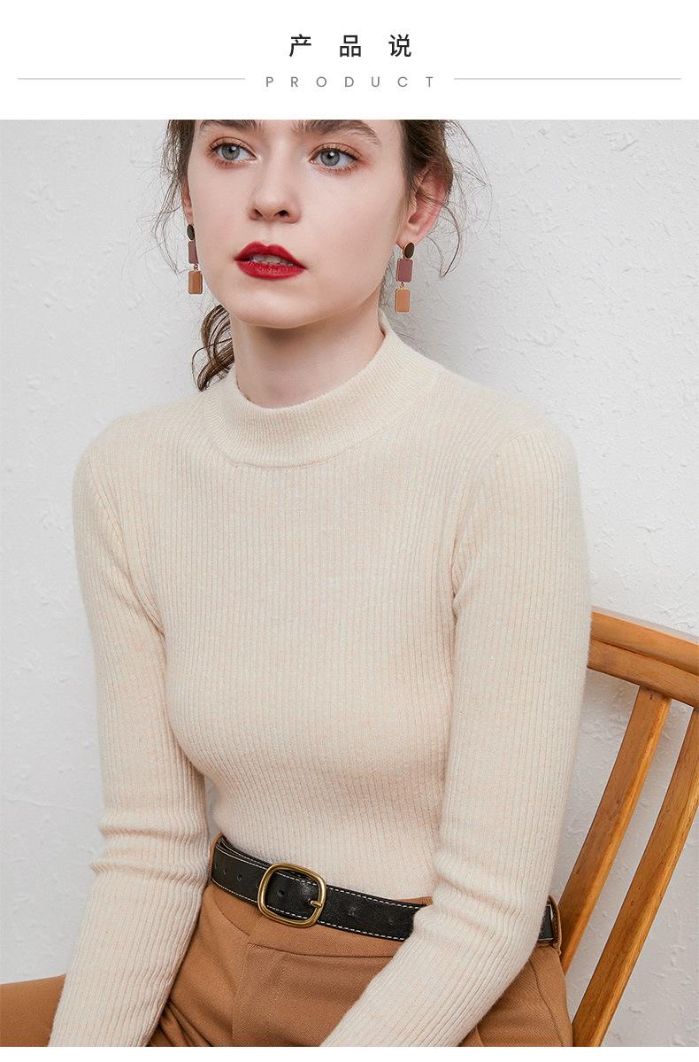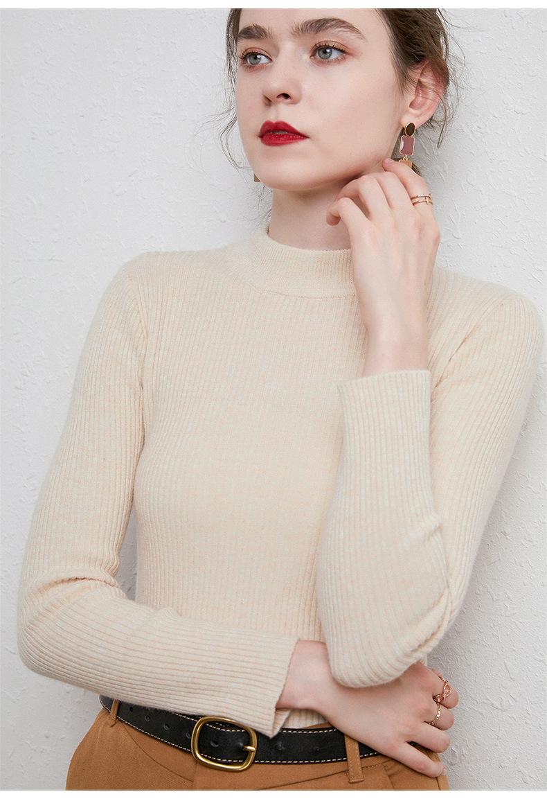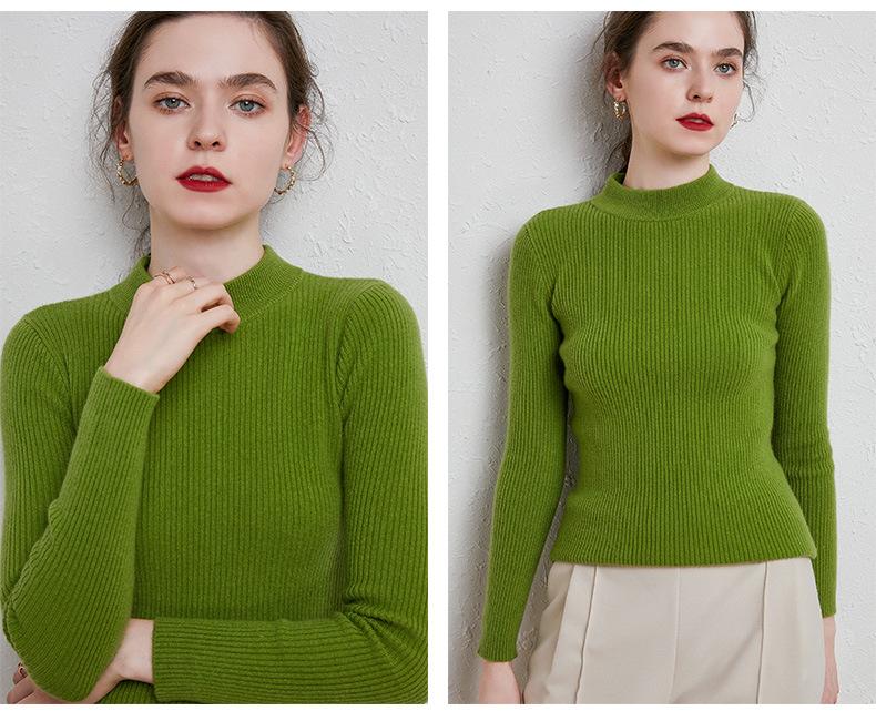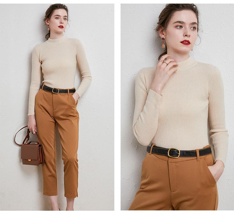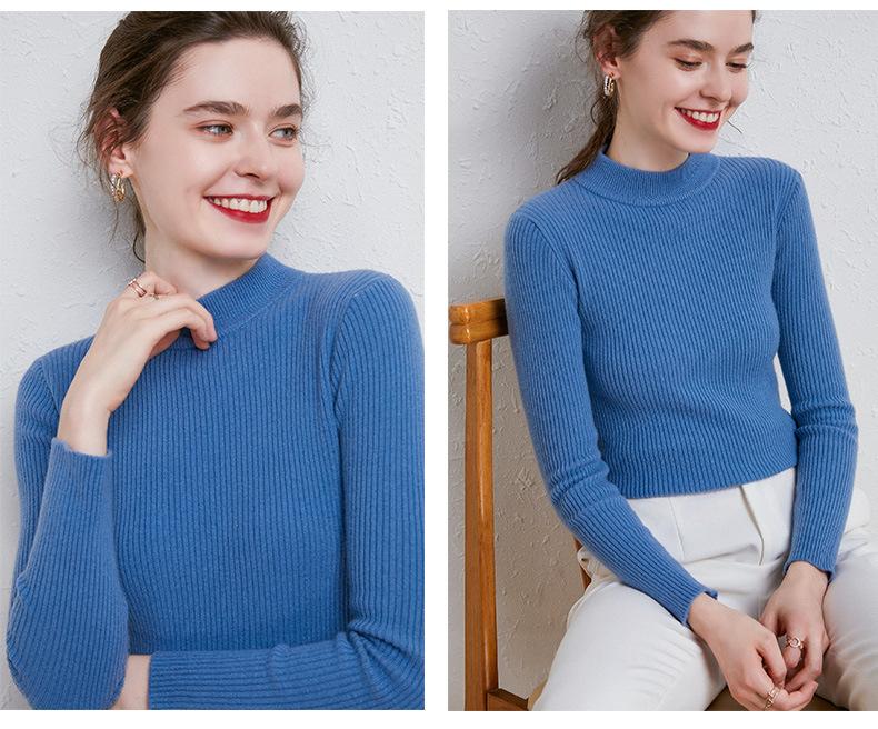 Suéter ajustado de cuello medio alto para mujer, suéter adelgazante de otoño e invierno, nuevo, de manga larga, informal, sencillo, cálido, de color sólido.
