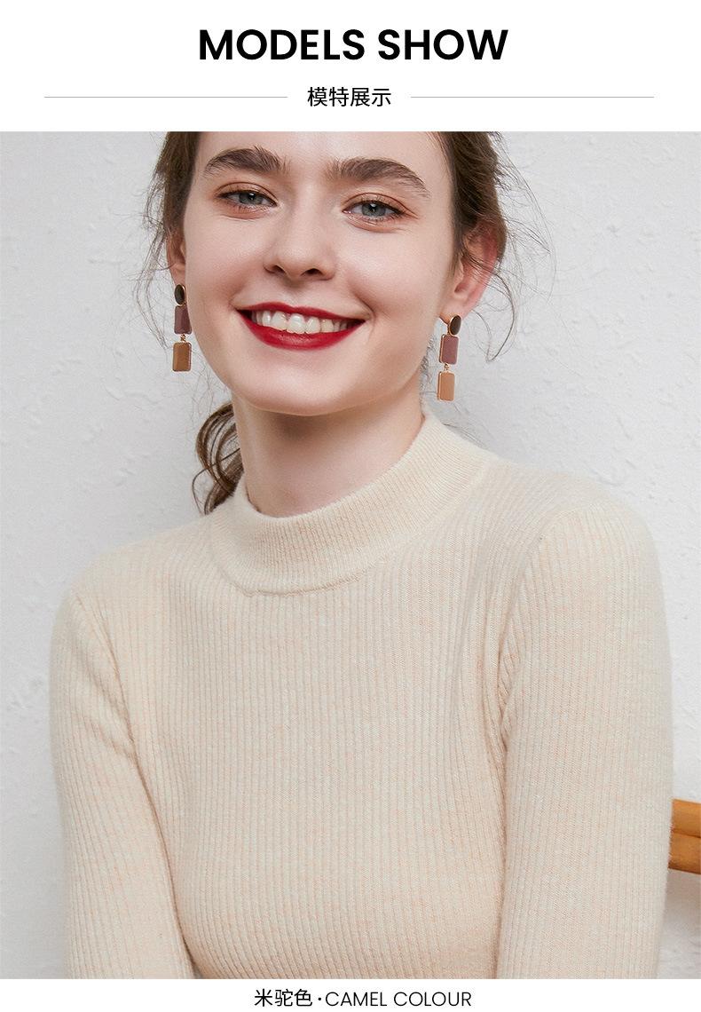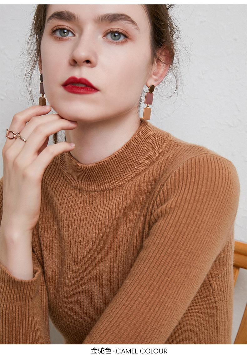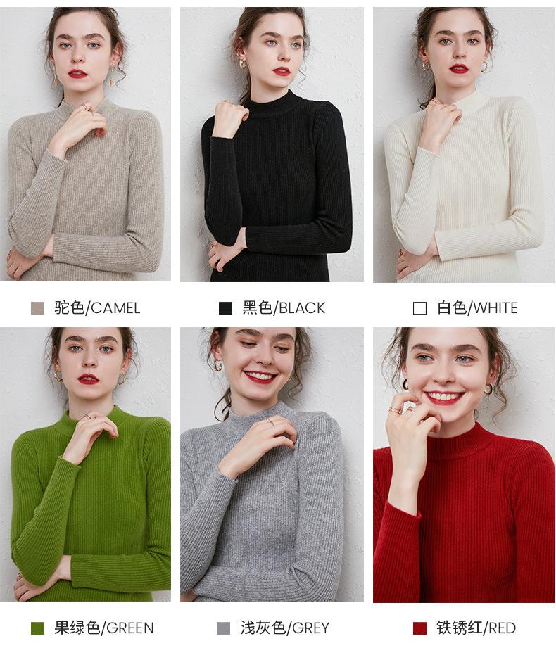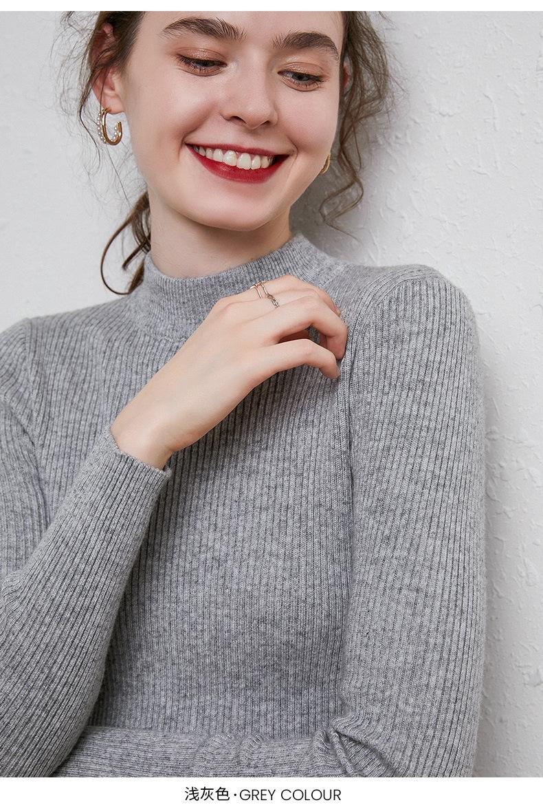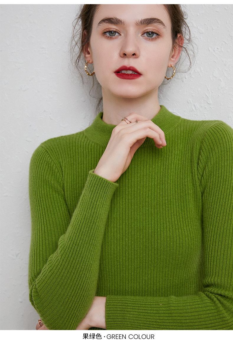 Suéter ajustado de cuello medio alto para mujer, suéter adelgazante de otoño e invierno, nuevo, de manga larga, informal, sencillo, cálido, de color sólido.