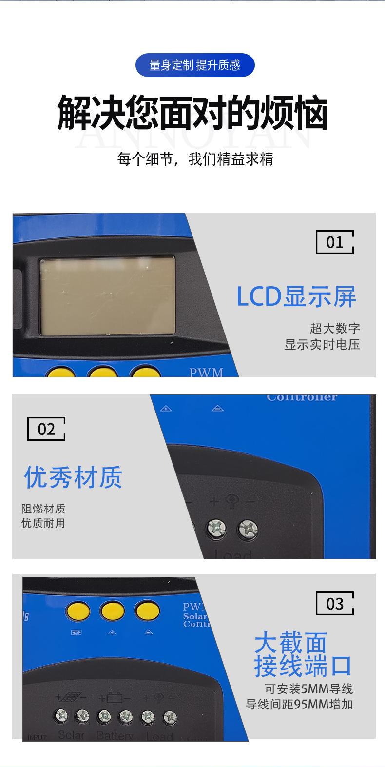 Controlador solar para sistema fotovoltaico doméstico, pantalla de visualización, fuente de alimentación multifunción de 12 V-48 V, nuevo controlador de energía.