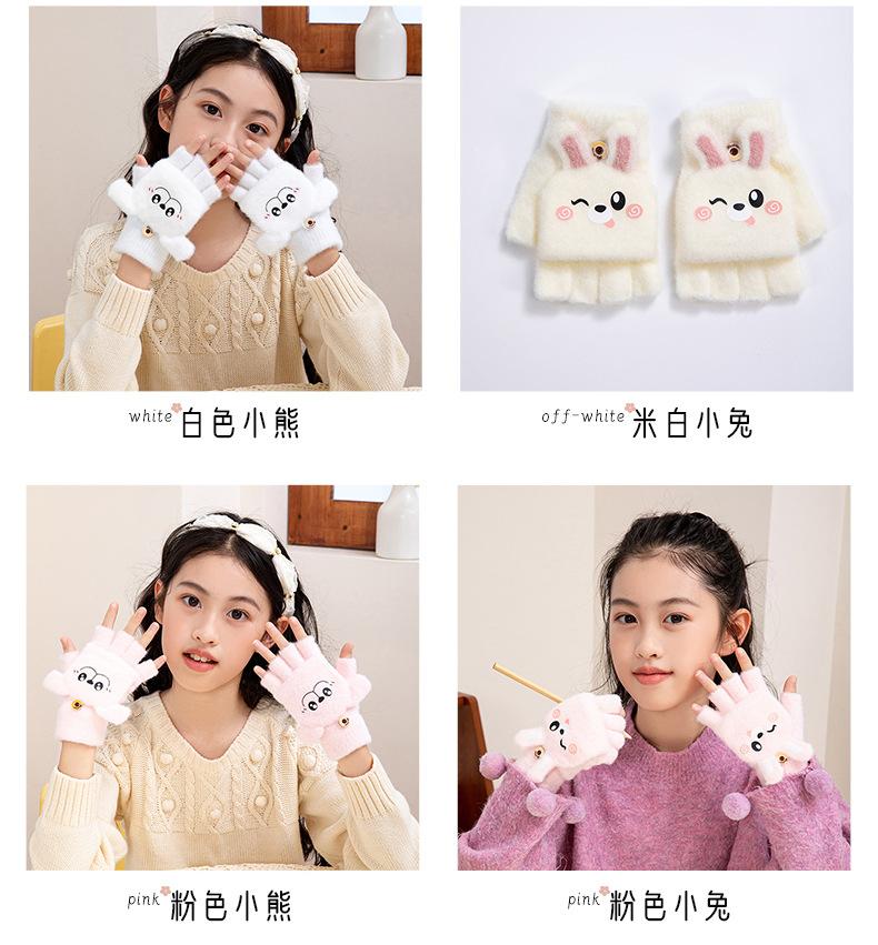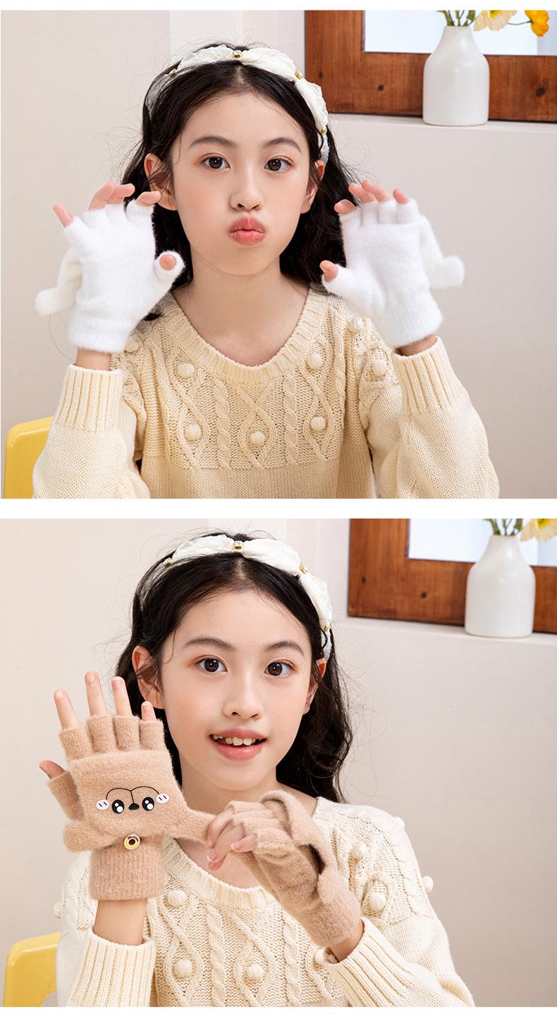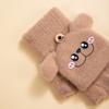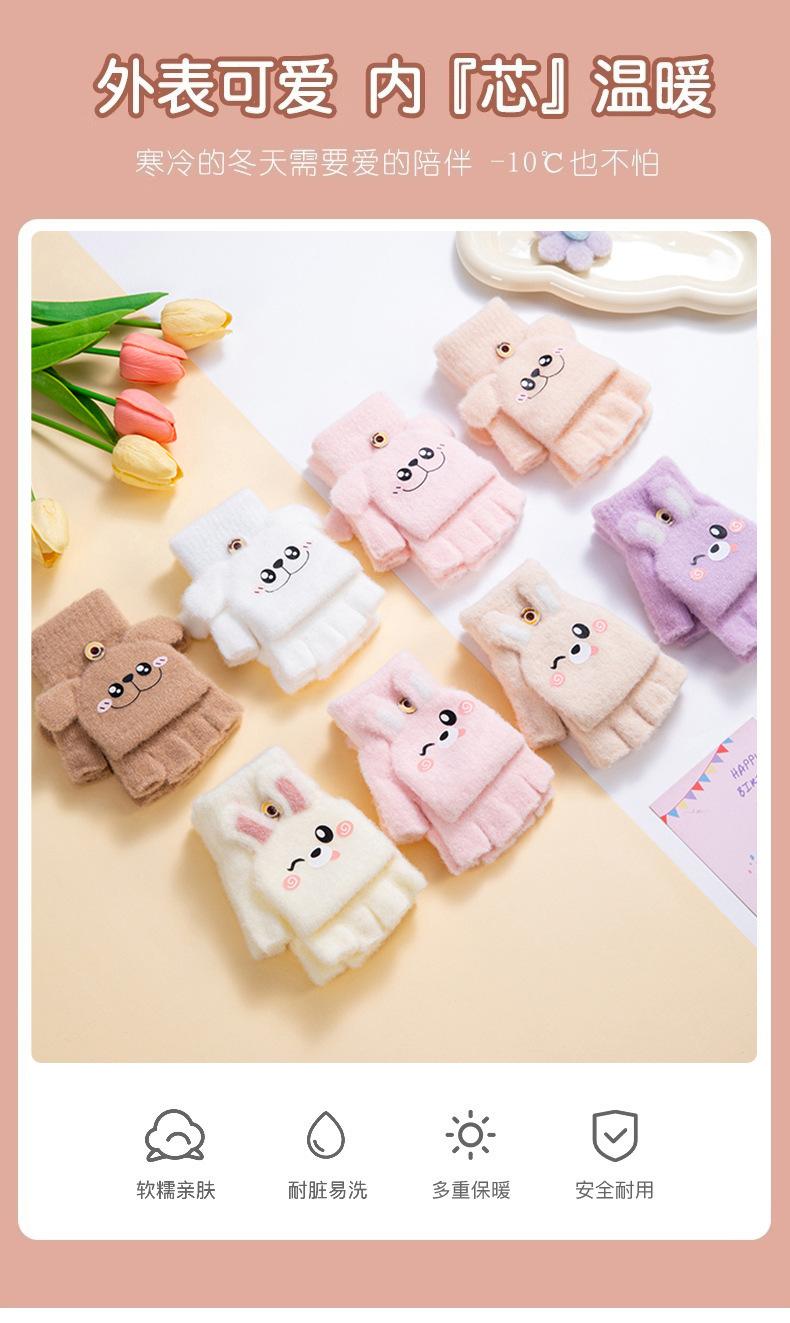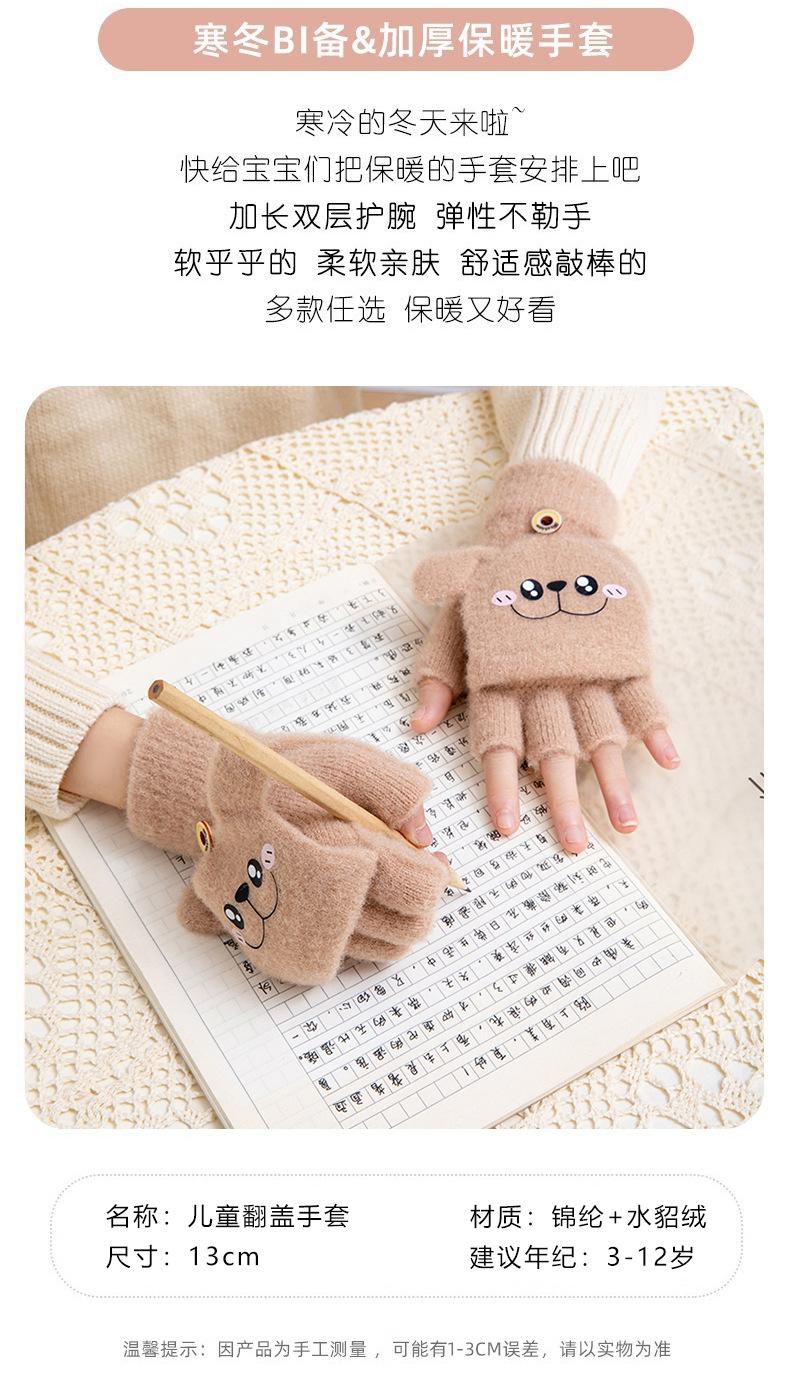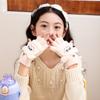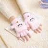 Guantes de medio dedo convertibles para niños, cálidos de jacquard, lindos de dibujos animados, cálidos para estudiantes, con forro de terciopelo cristal