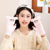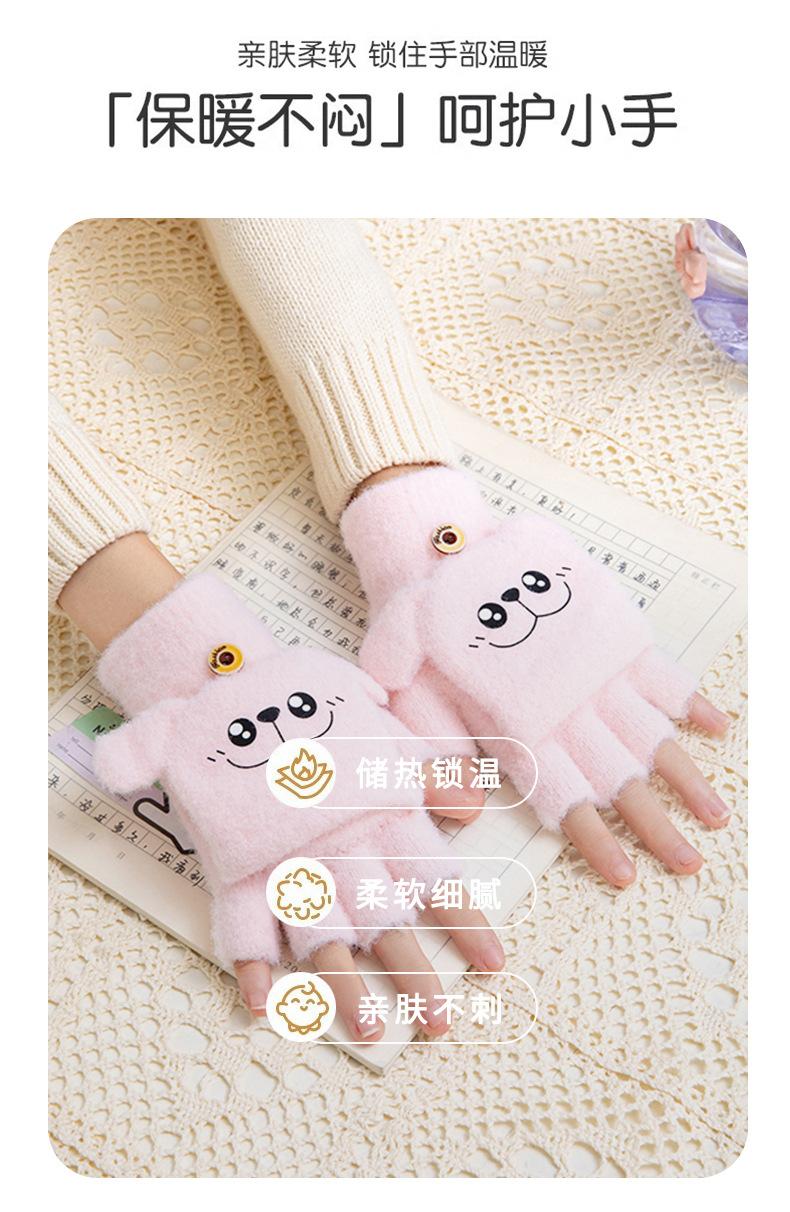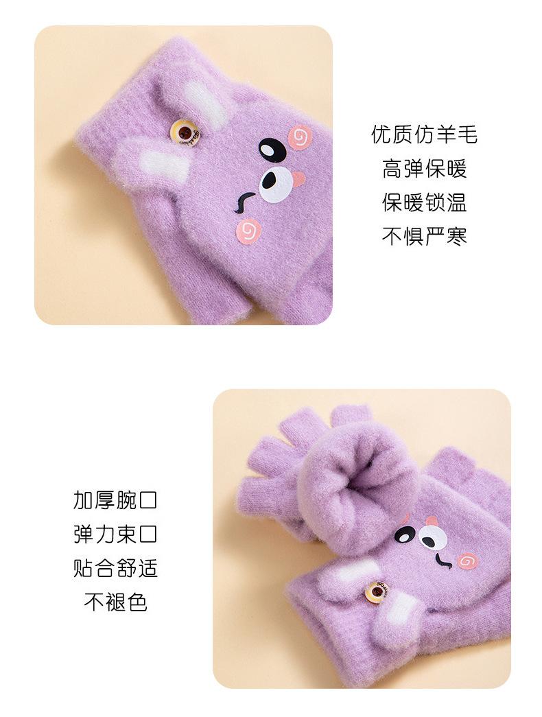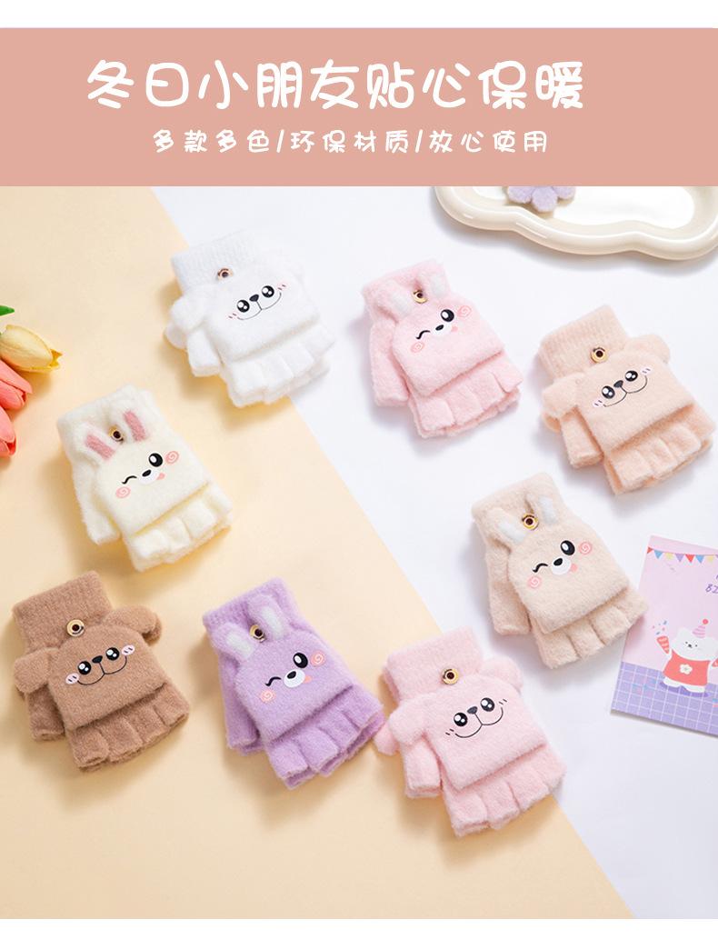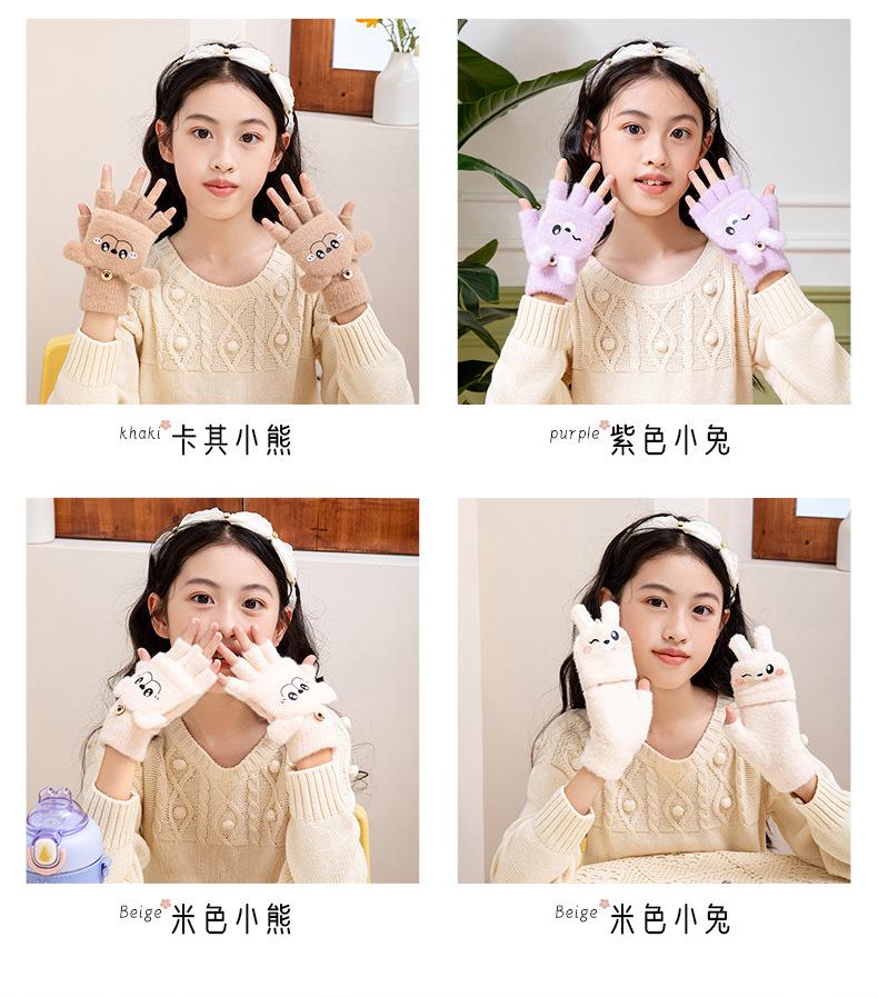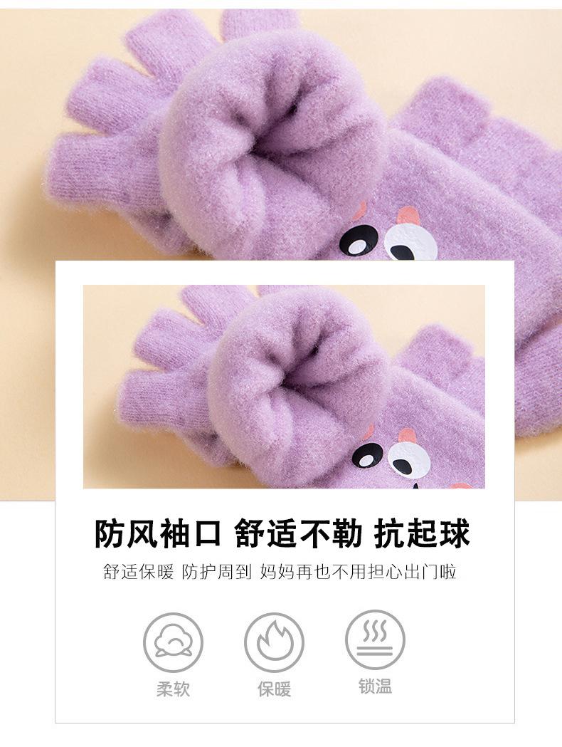 Guantes de medio dedo convertibles para niños, cálidos de jacquard, lindos de dibujos animados, cálidos para estudiantes, con forro de terciopelo cristal
