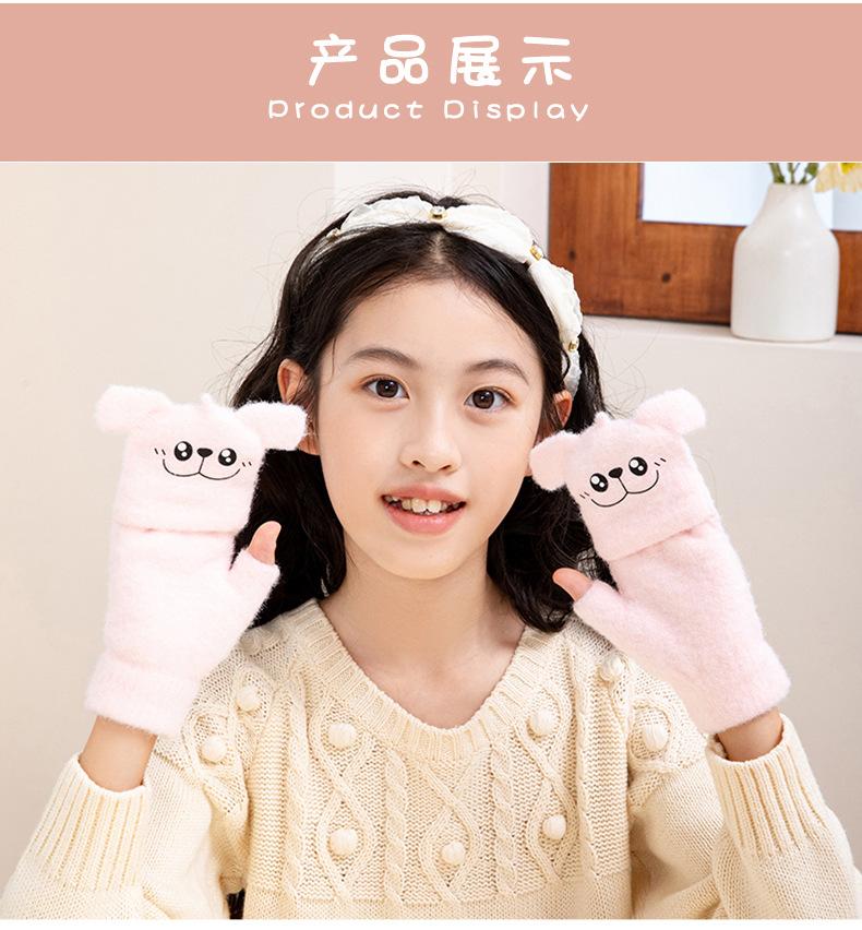 1 Children's Half Finger Flap Puppy Gloves Khaki, 2 Children's Half Finger Flap Puppy Gloves Pink, 3 Children'...
