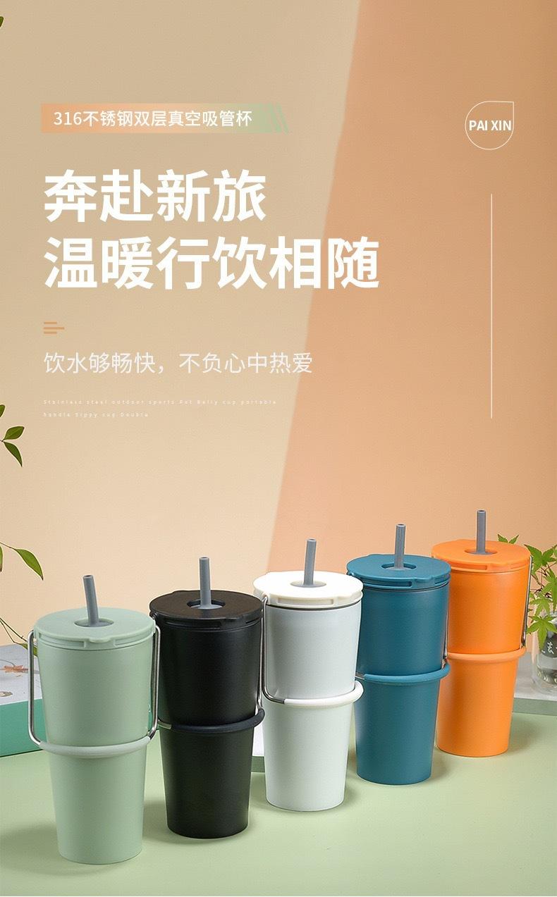 Nuevo vaso al vacío de acero inoxidable 304 de alta apariencia, vaso con pajita portátil para exteriores, gran capacidad 20 oz, vaso para helado