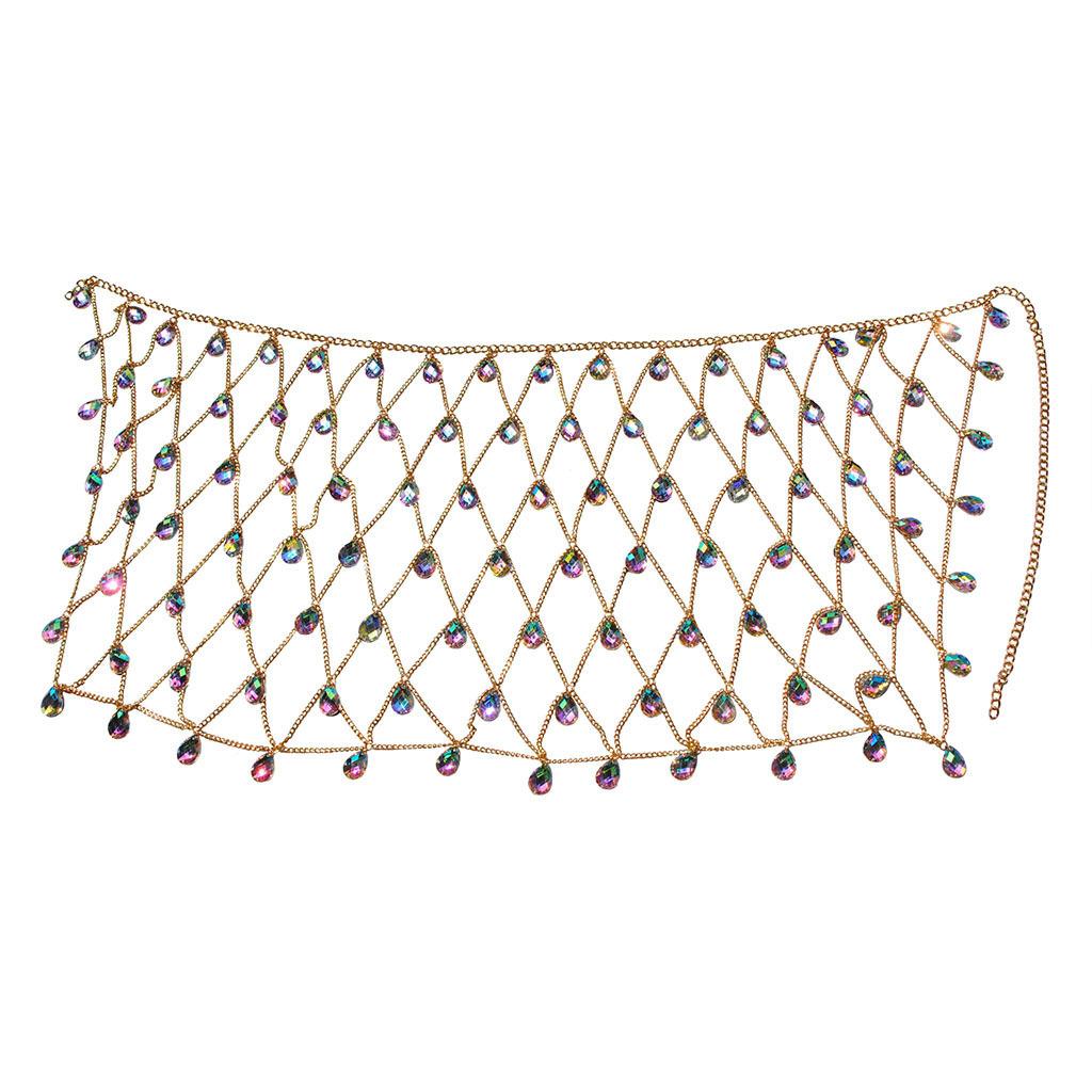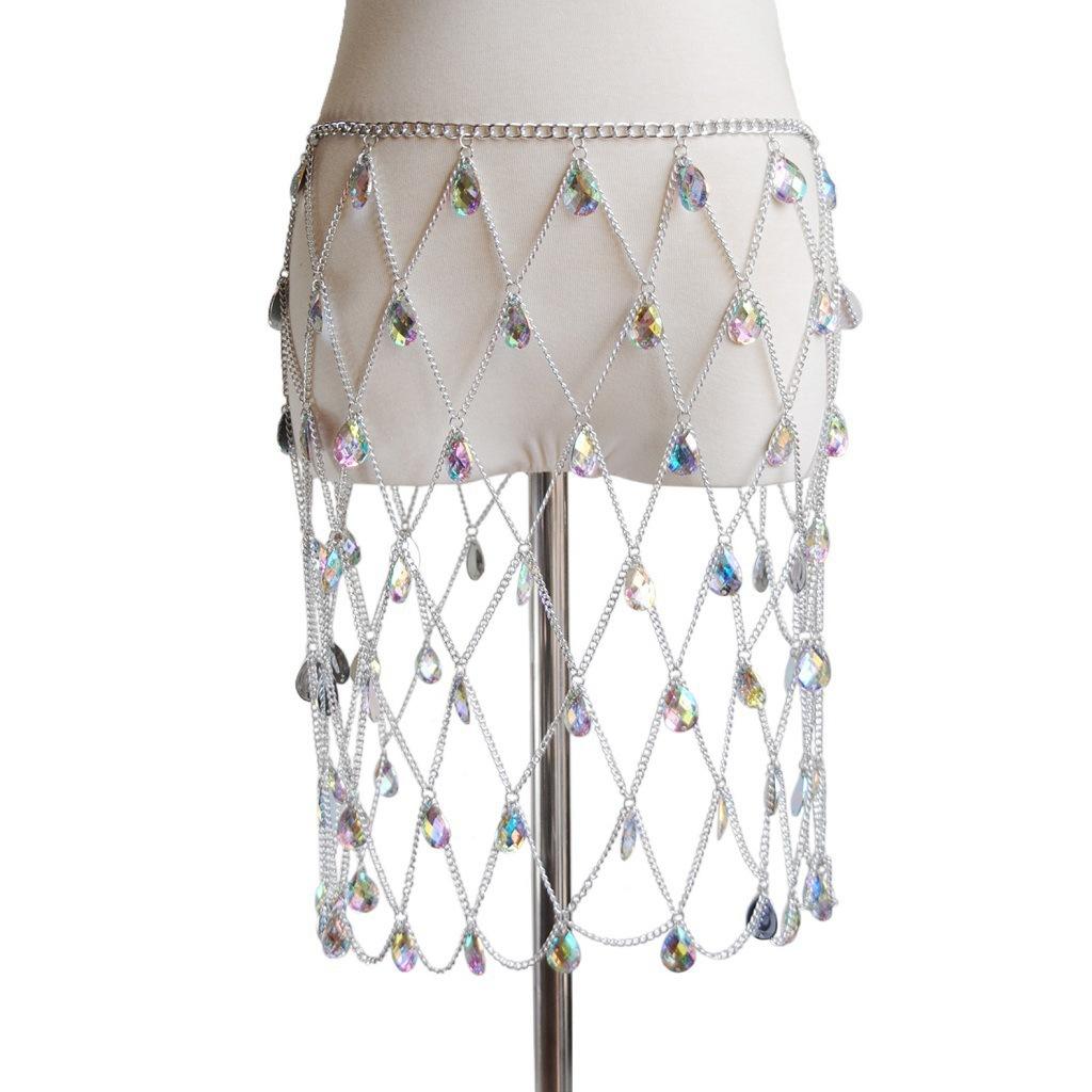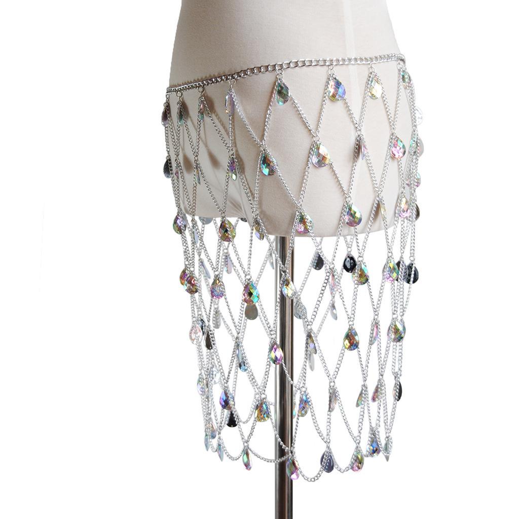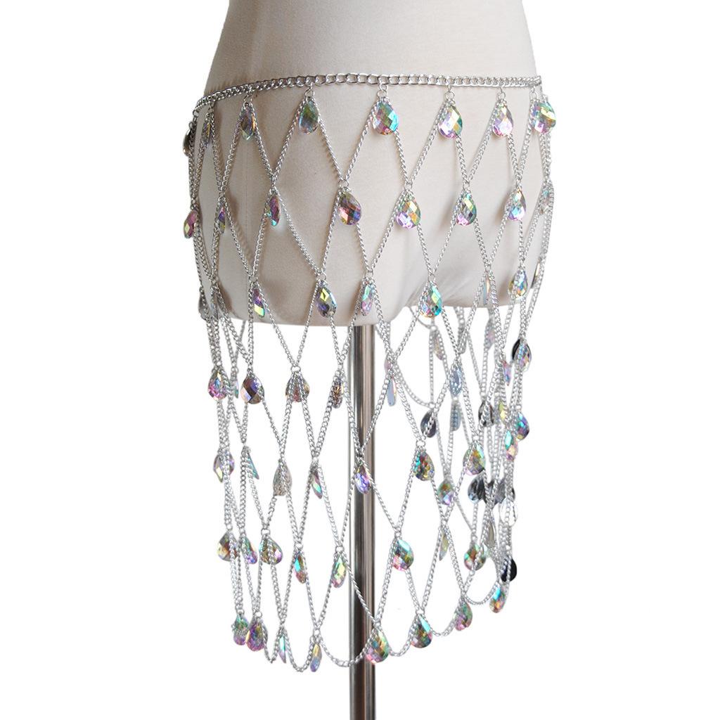 Joyería Transfronteriza Europea y Americana de Venta Caliente 2025 Nuevo Acrílico Sexy Gota de Agua Falda de Red Cadena de Cintura Cadena para el Cuerpo