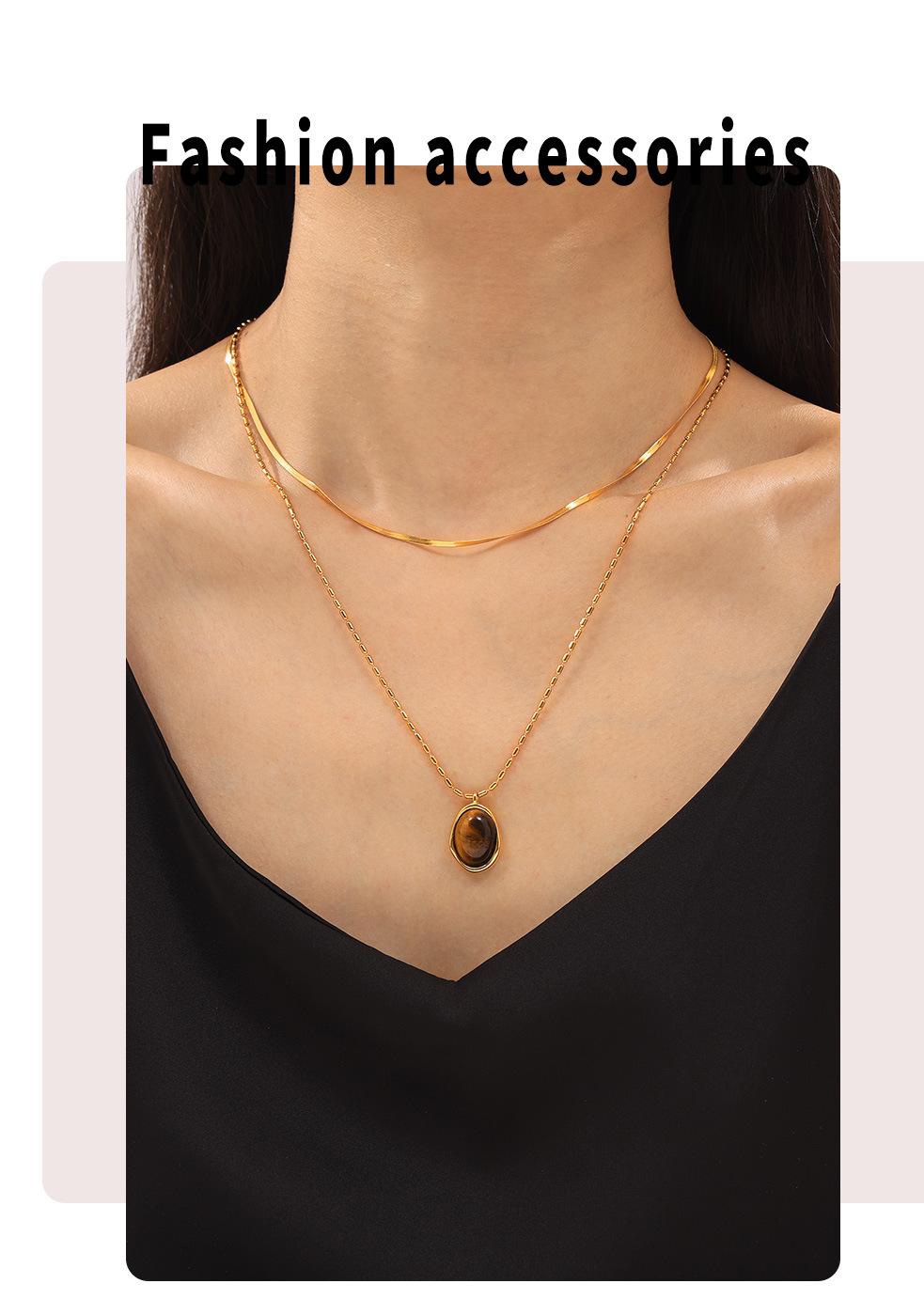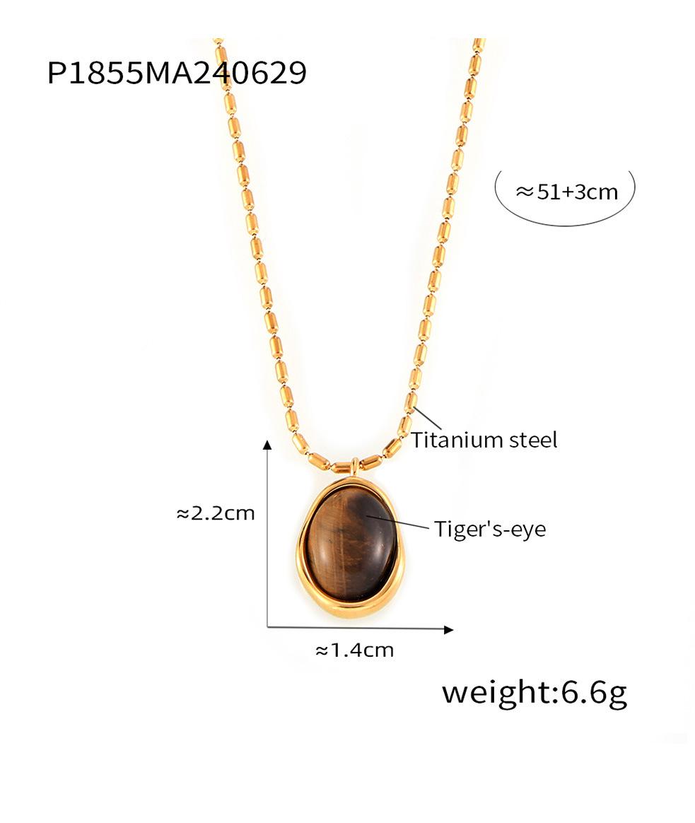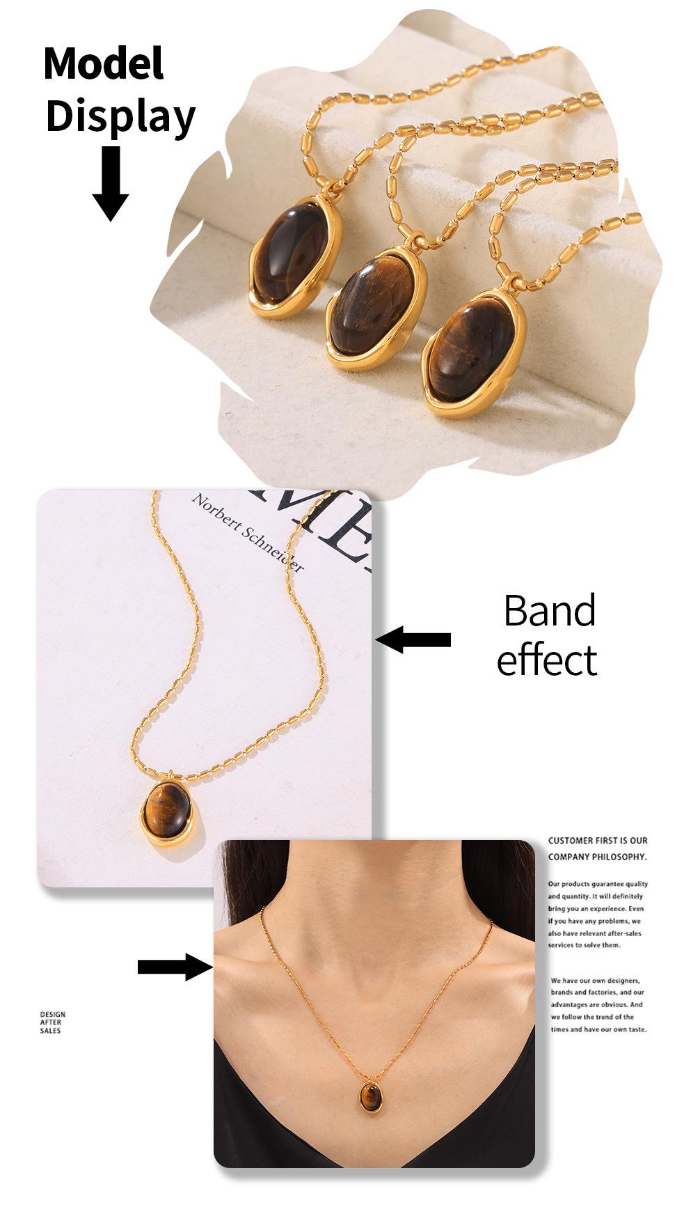 Colgante de ojo de tigre con incrustaciones ovaladas, diseño de personalidad francesa, chapado en acero de titanio y oro de 18 quilates, collar Joker al por mayor.
