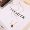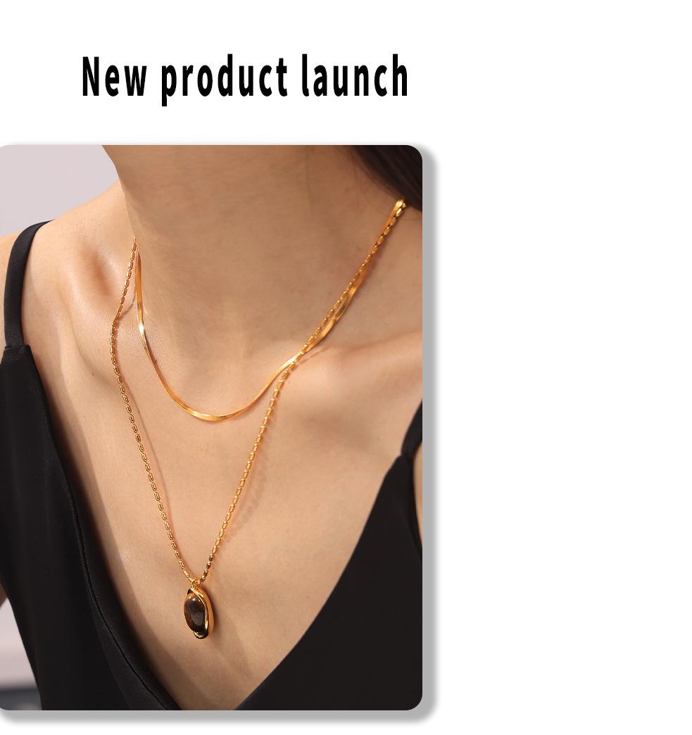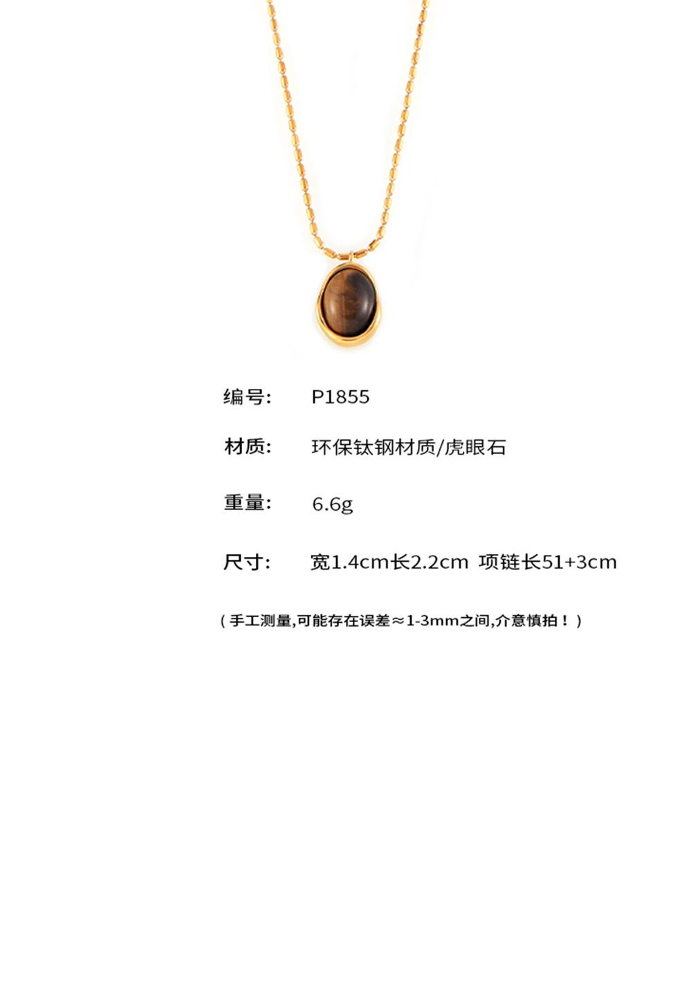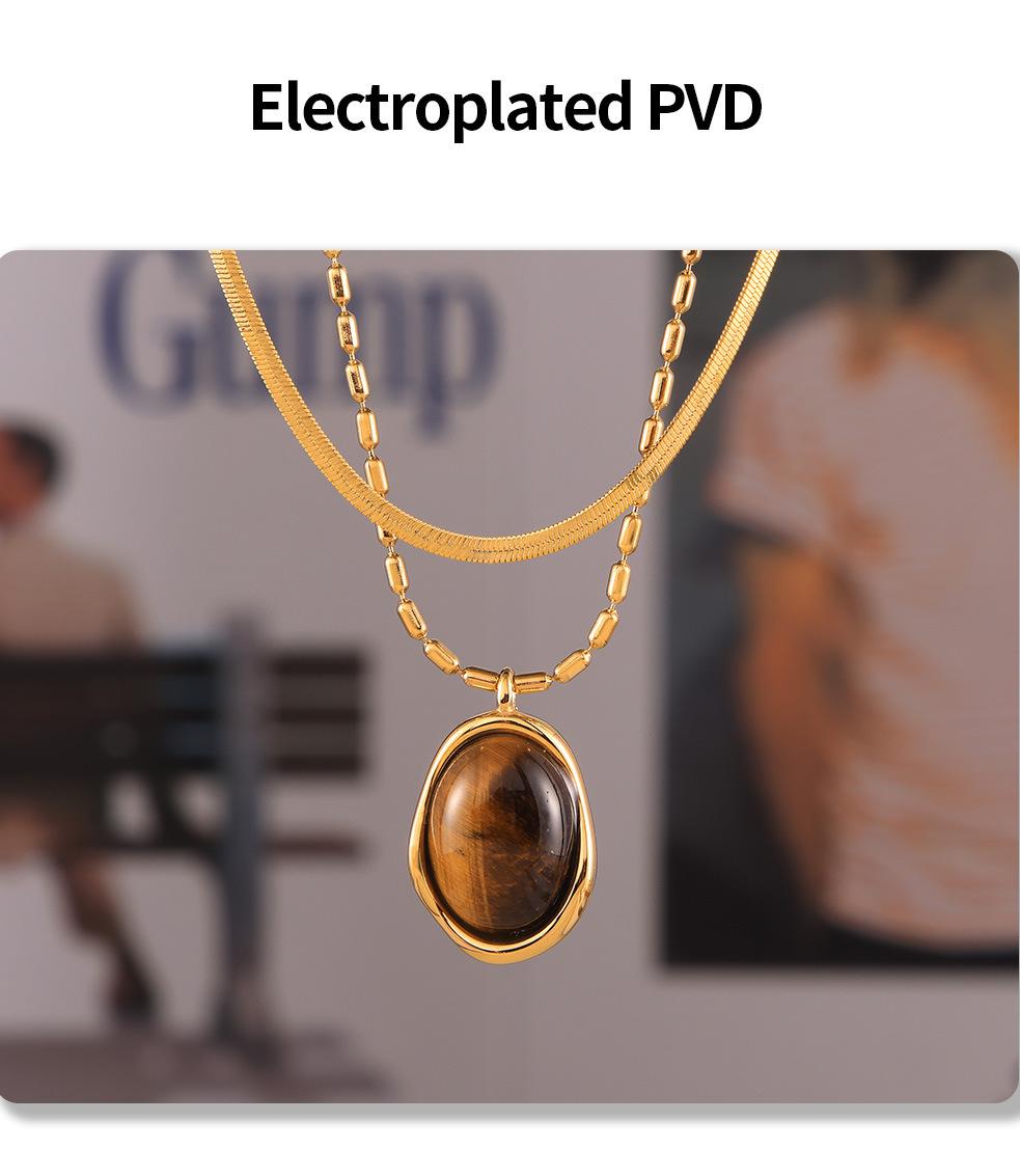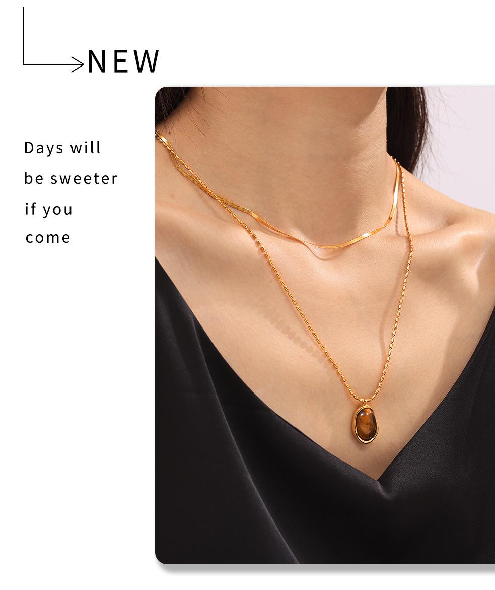 Colgante de ojo de tigre con incrustaciones ovaladas, diseño de personalidad francesa, chapado en acero de titanio y oro de 18 quilates, collar Joker al por mayor.