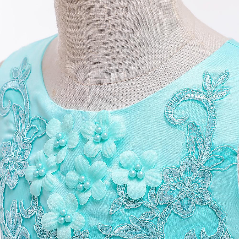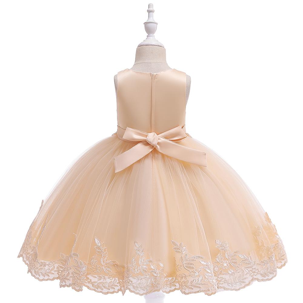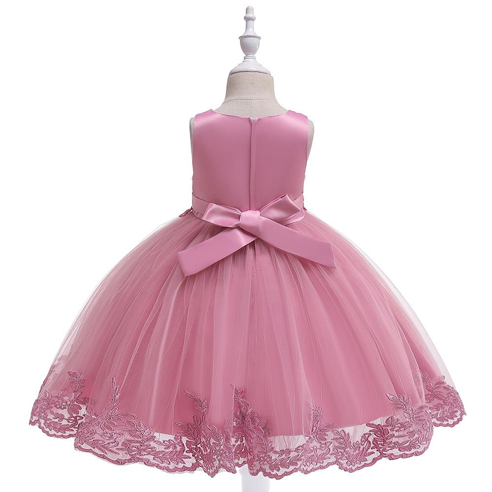 Vestido de princesa para niñas transfronterizas, vestido de princesa para niñas medianas y grandes, con lazo de flores bordado en el lateral, falda de cola de golondrina, vestido de pasarela para festival infantil