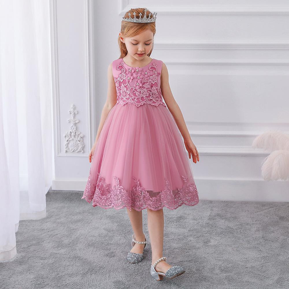 Ropa infantil de flores transfronteriza, vestido de princesa para niñas de gasa con encaje de flores, vestido de anfitriona ins, vestido de boda para niños, vestido de princesa