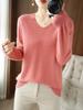 Suéter sencillo de cuello en V para mujer, otoño e invierno, nuevo jersey de color liso, informal, elegante, suelto, interior de manga larga.