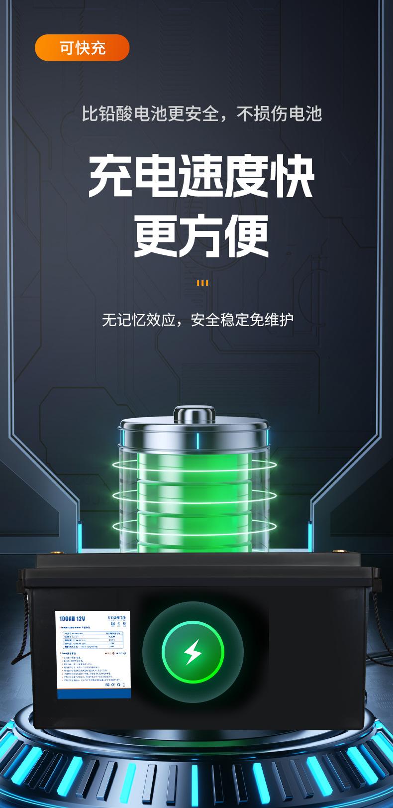 Batería de fosfato de hierro y litio 12v24v 100ah industrial hogar almacenamiento de energía solar respaldo de energía RV plomo a litio