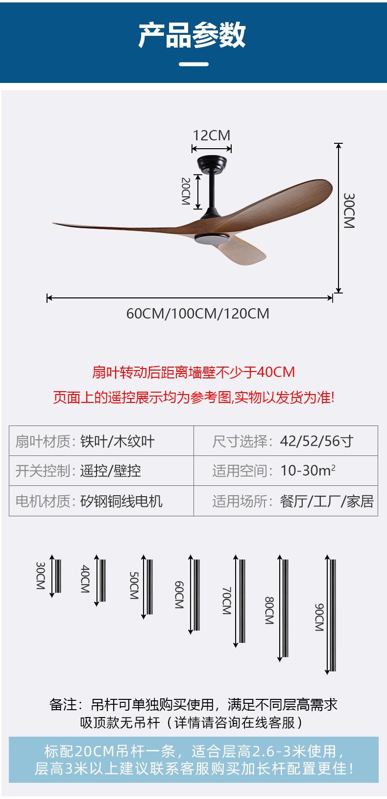 HJ Ventilador de Techo para Sala de Estar Comedor Nórdico Frecuencia Variable Sin Luz Ventilador Eléctrico Estilo Industrial Estilo Americano Retro Ventilador de Techo de Viento Grande