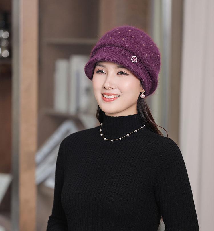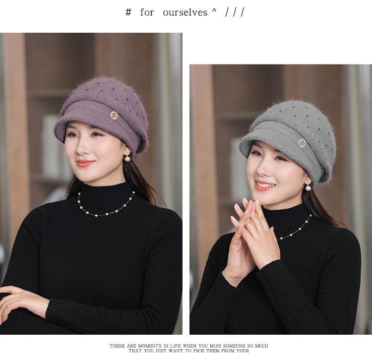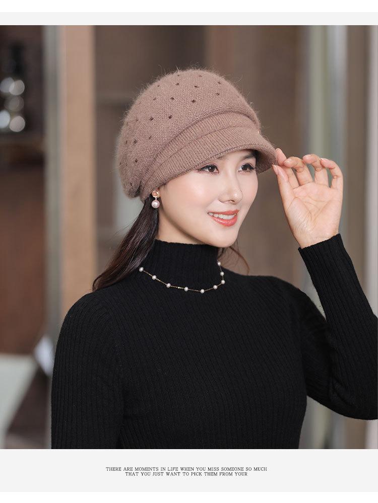 Gorro de lana de punto cálido para mujer, otoño e invierno, nuevo gorro grueso para madre, protección para las orejas, gorro para tía y suegra, venta al por mayor