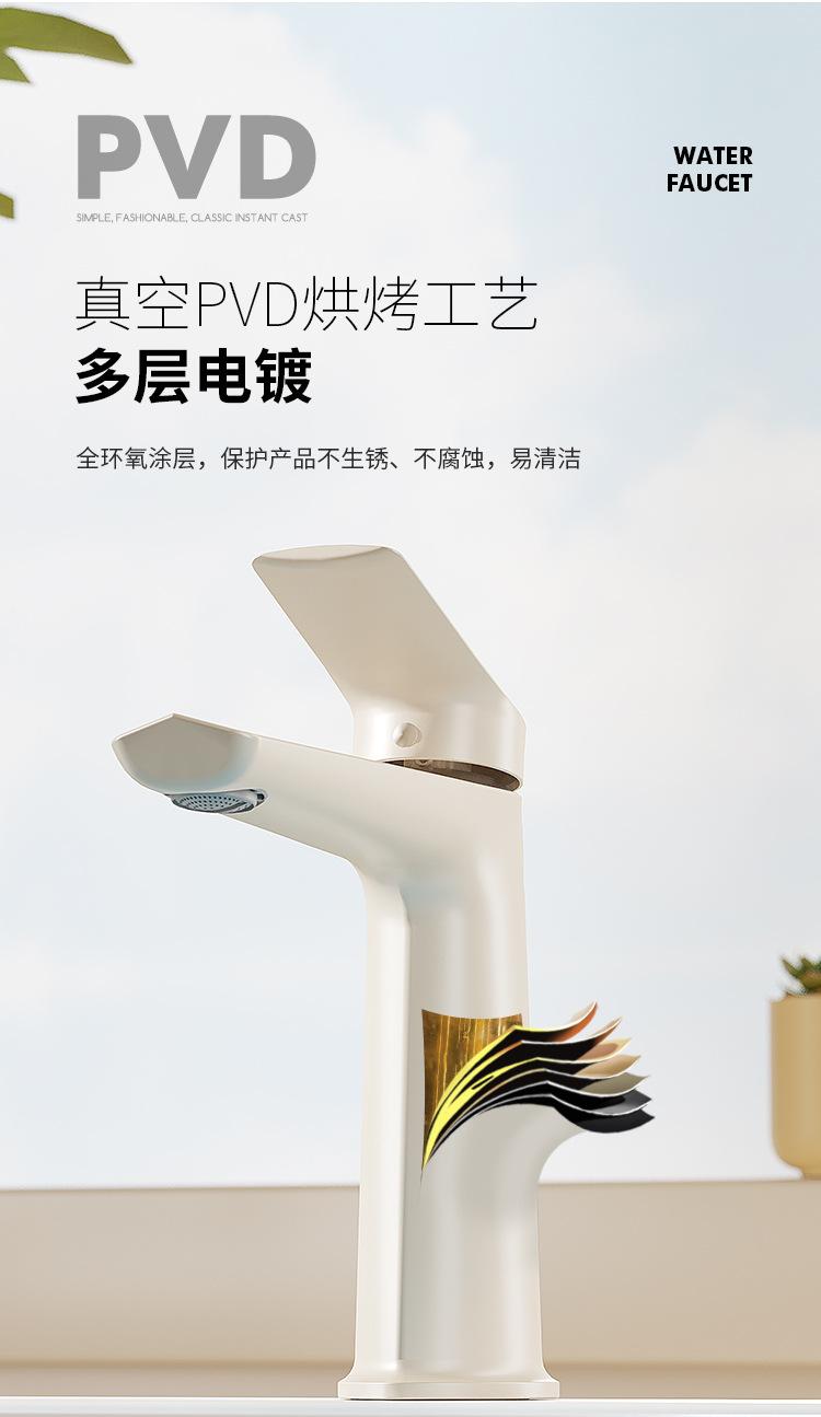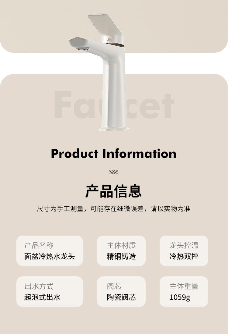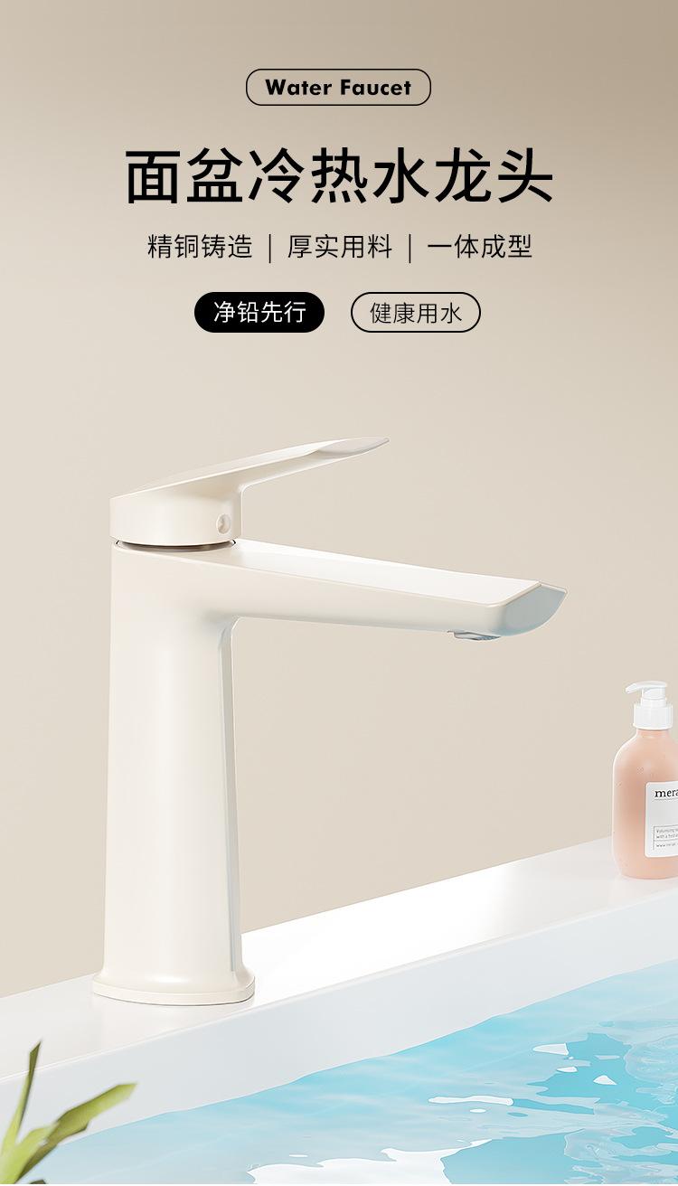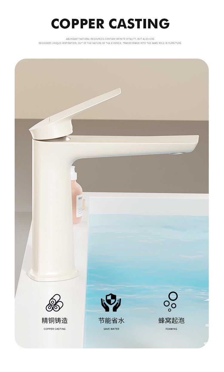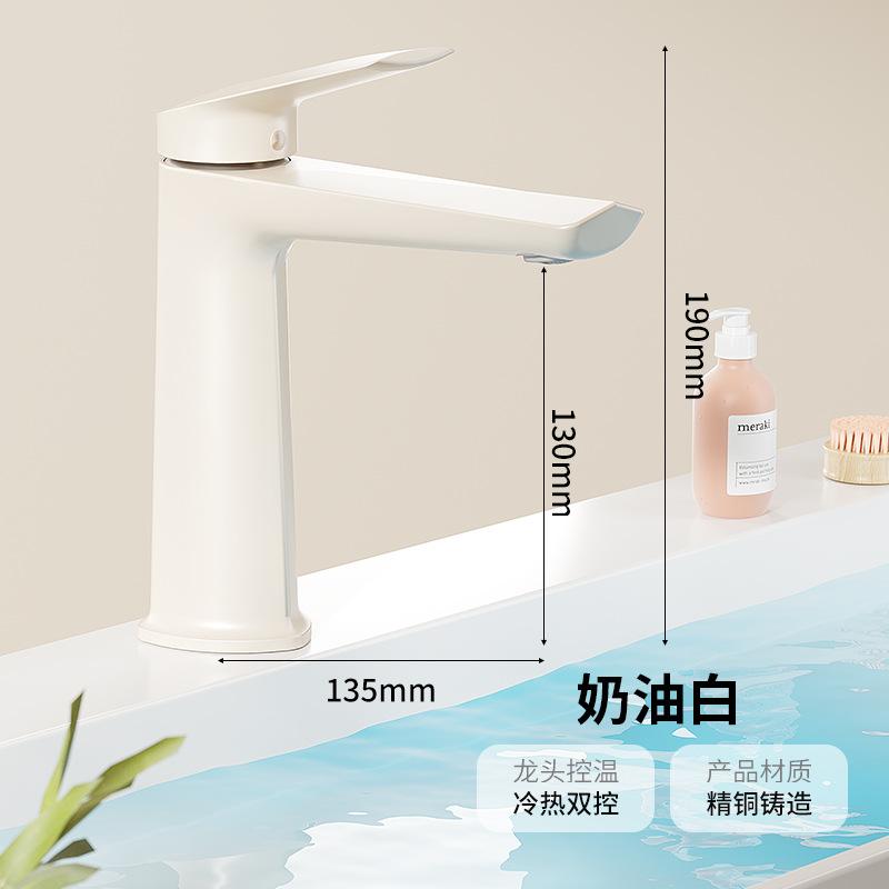 Grifo blanco de agua fría y caliente, todo de cobre, lavabo sencillo, lavabo de encimera, grifo de baño creativo