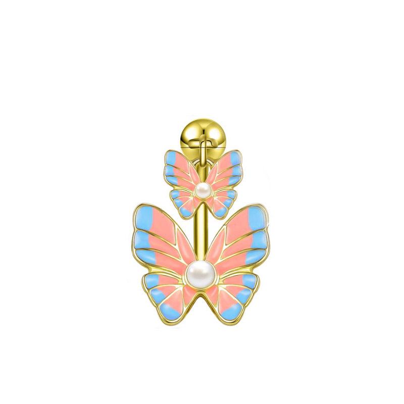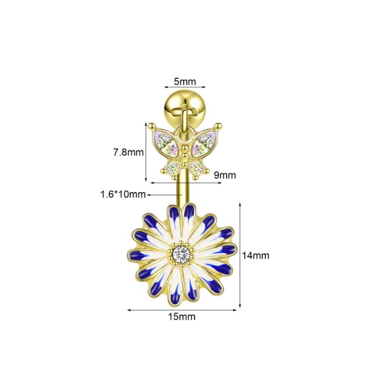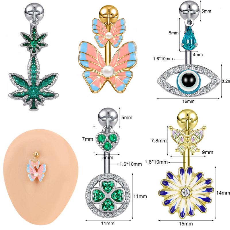 Nuevos Anillos para Ombligo Transfronterizos Acero Inoxidable Aretes para Ombligo Perforación Invertida del Ombligo Joyería para Perforación de Ojo Flor Mariposa