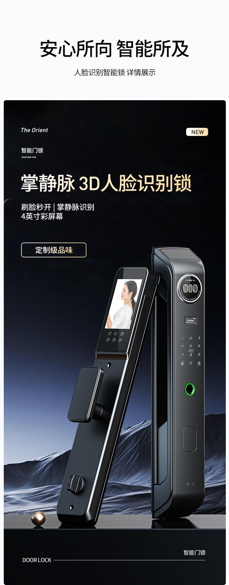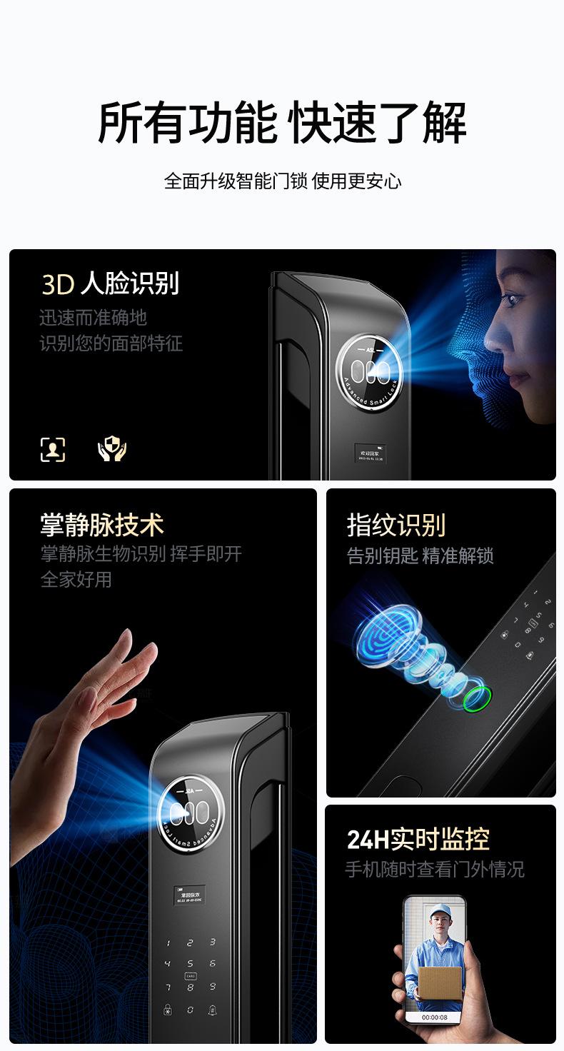 Cerradura de puerta inteligente con reconocimiento facial 3D y vena de palma, cerradura de seguridad para el hogar, cerradura de contraseña universal, cerradura de huella digital