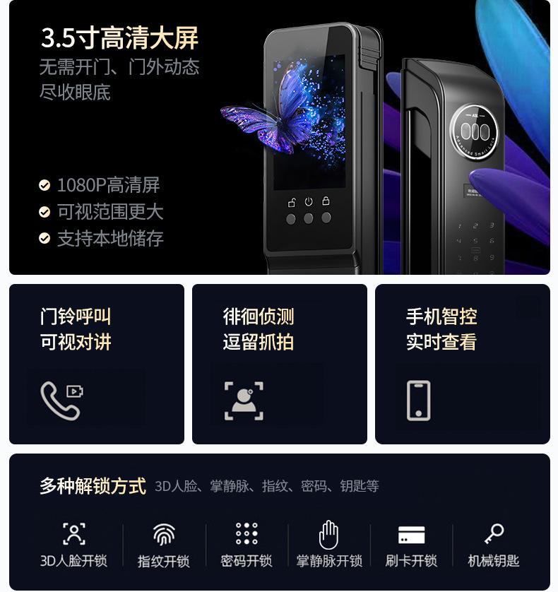 Basic model, 3.5inch large screen + cat eye model, 3.5inch large screen + palm vein + visual intercom + face m...