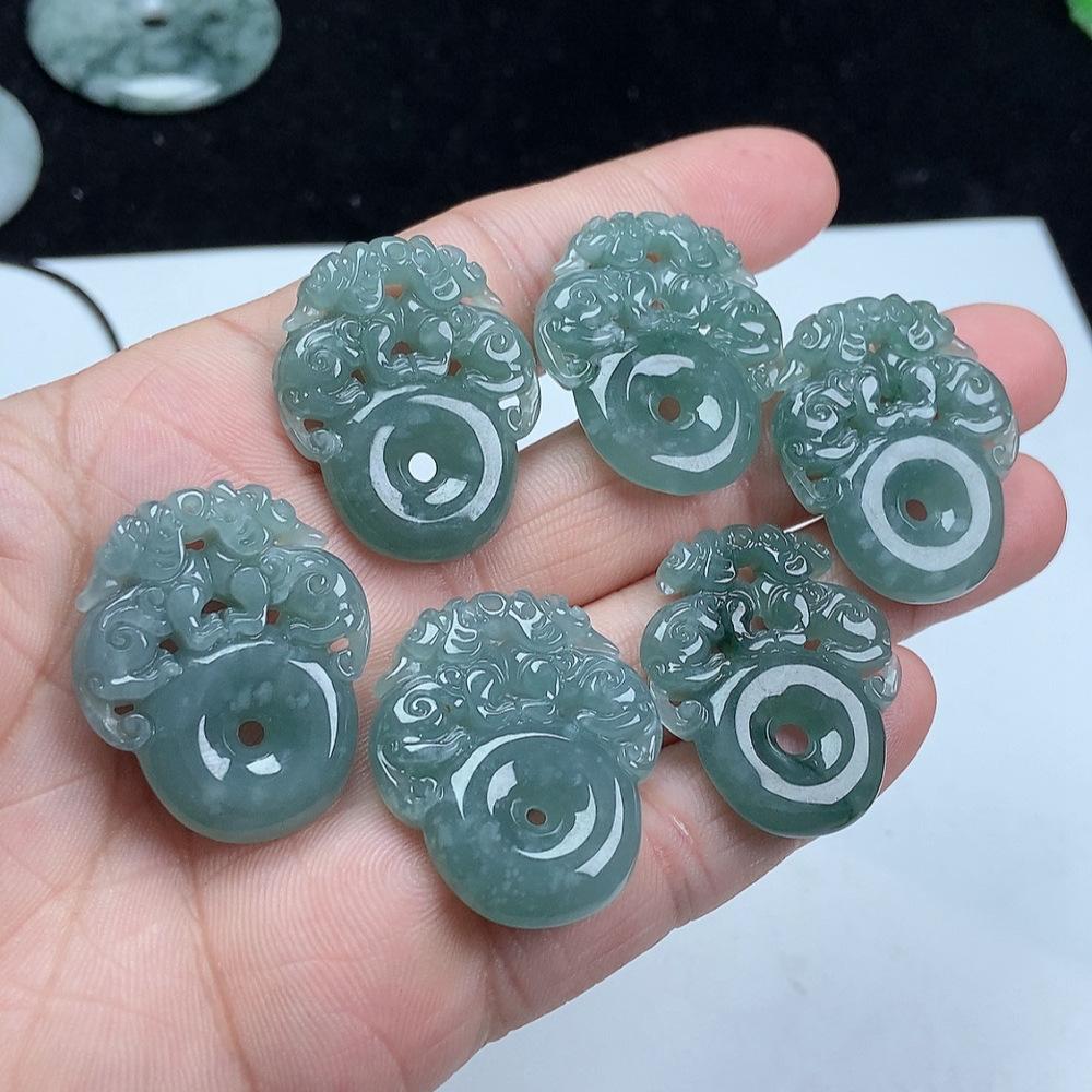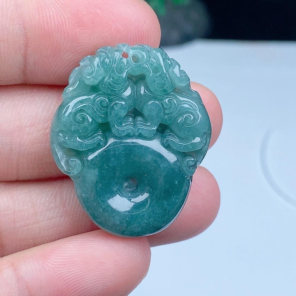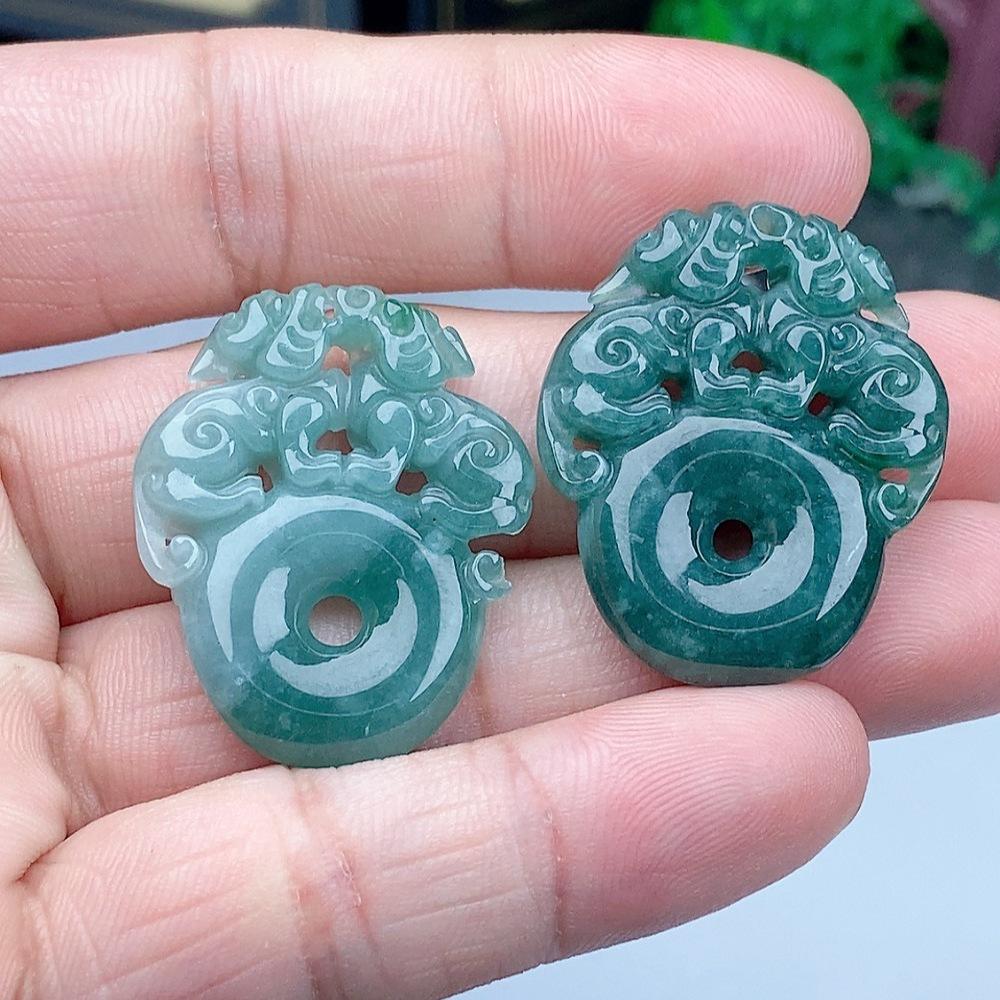 Colgante de Seguridad Doble Pixiu de Jade para la Riqueza, Colgante Pixiu de Jade Grado A, Venta al por Mayor de Jade, Jade Hielo