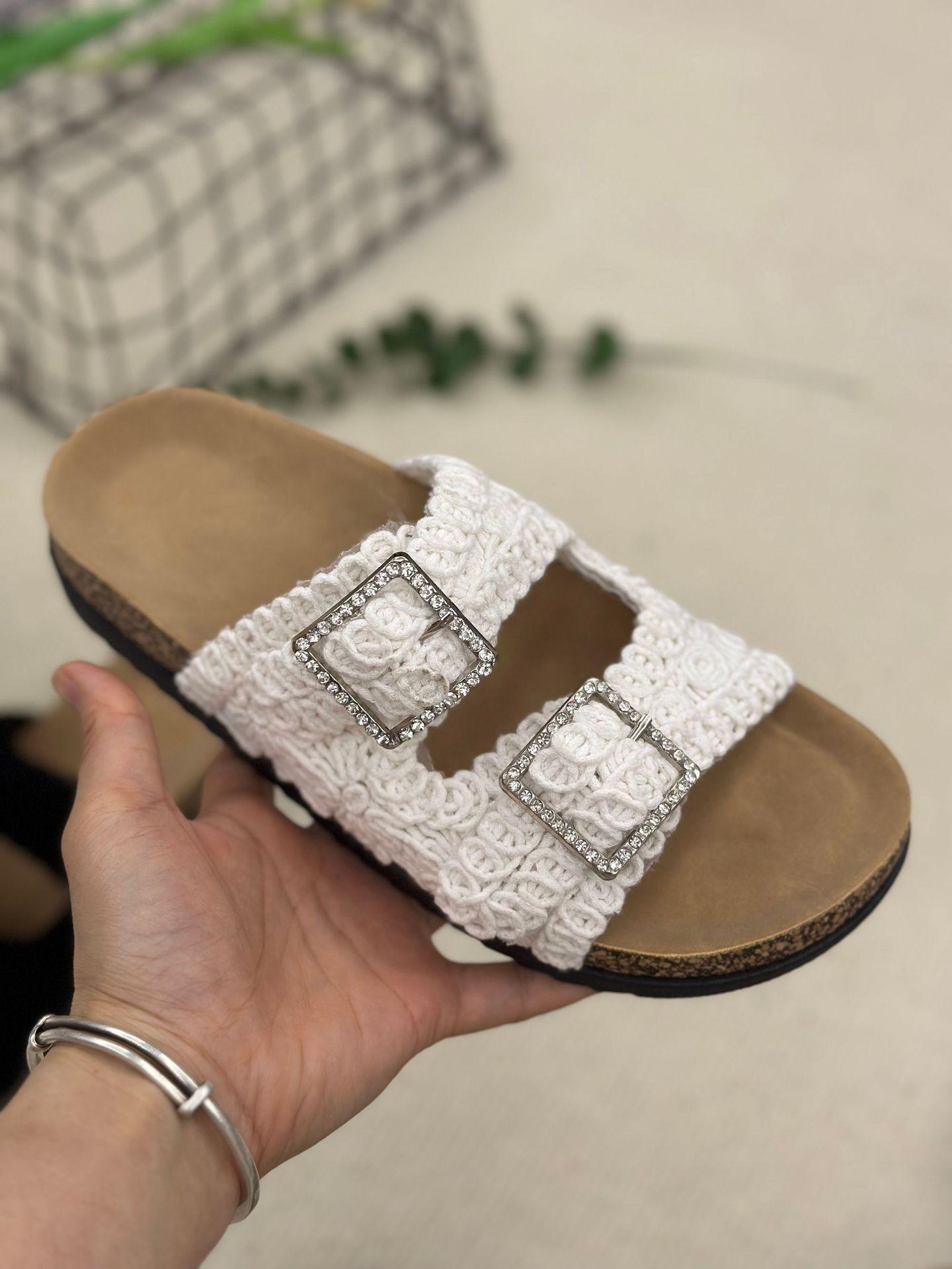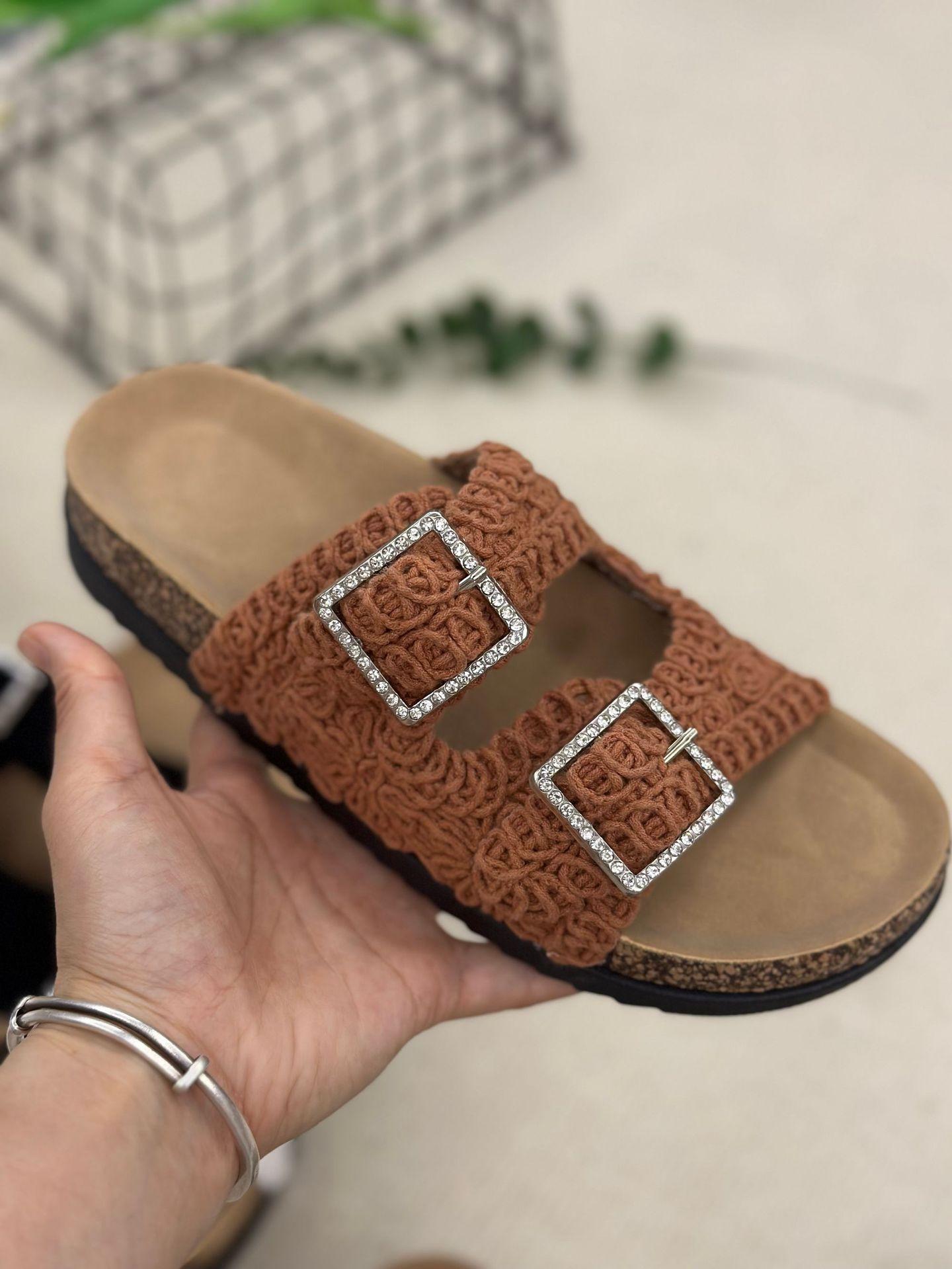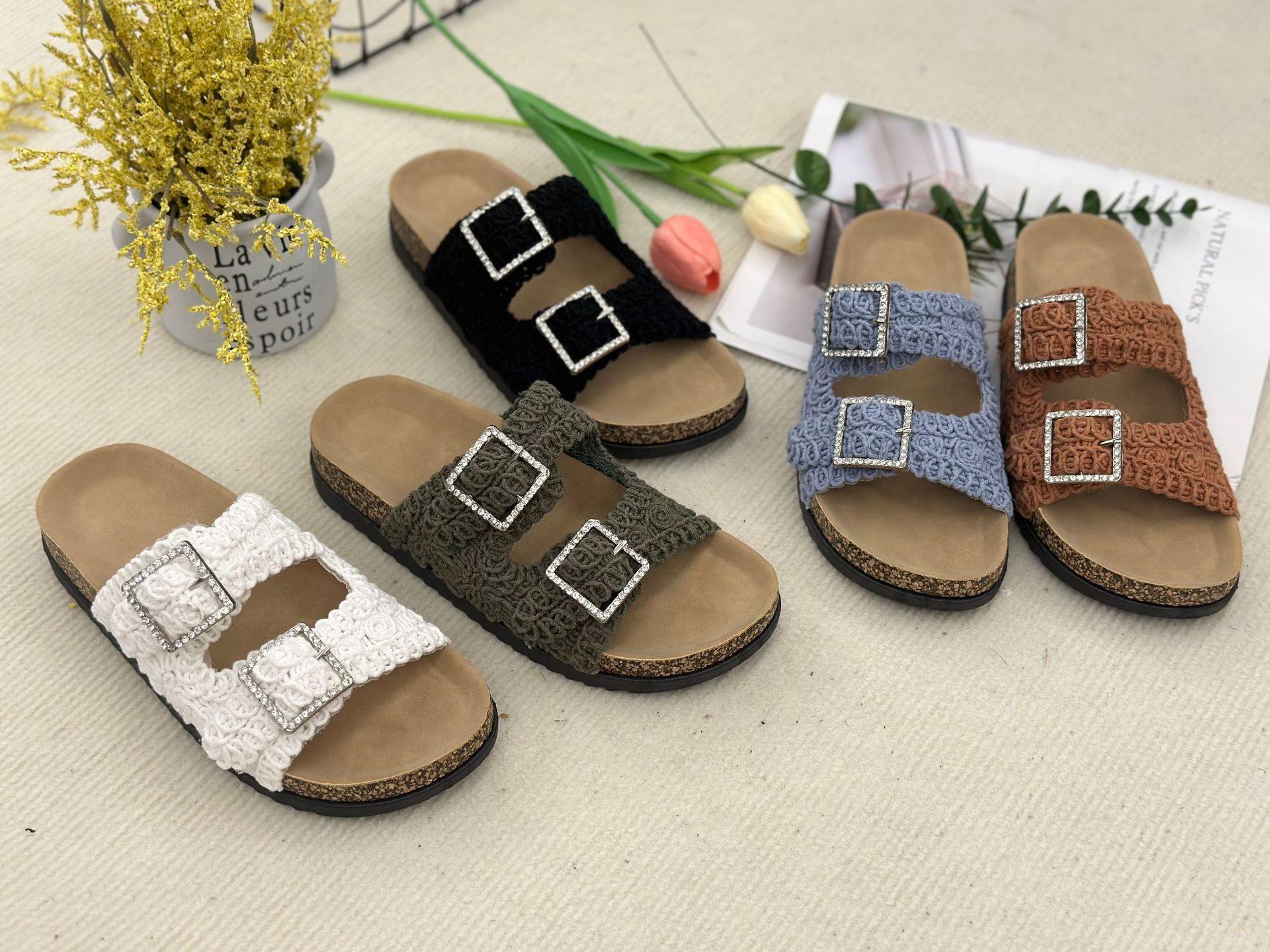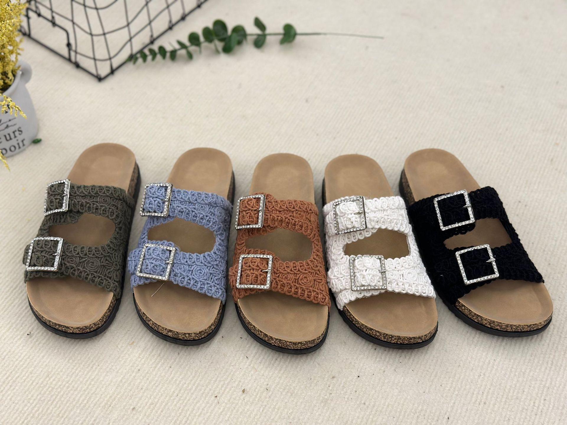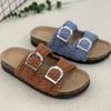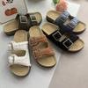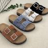 Zapatillas de Corcho con Doble Hebilla y Pedrería de Estilo Étnico para Comercio Transfronterizo Europeo y Americano, Sandalias de Suela Gruesa para Uso Exterior, Zapatillas