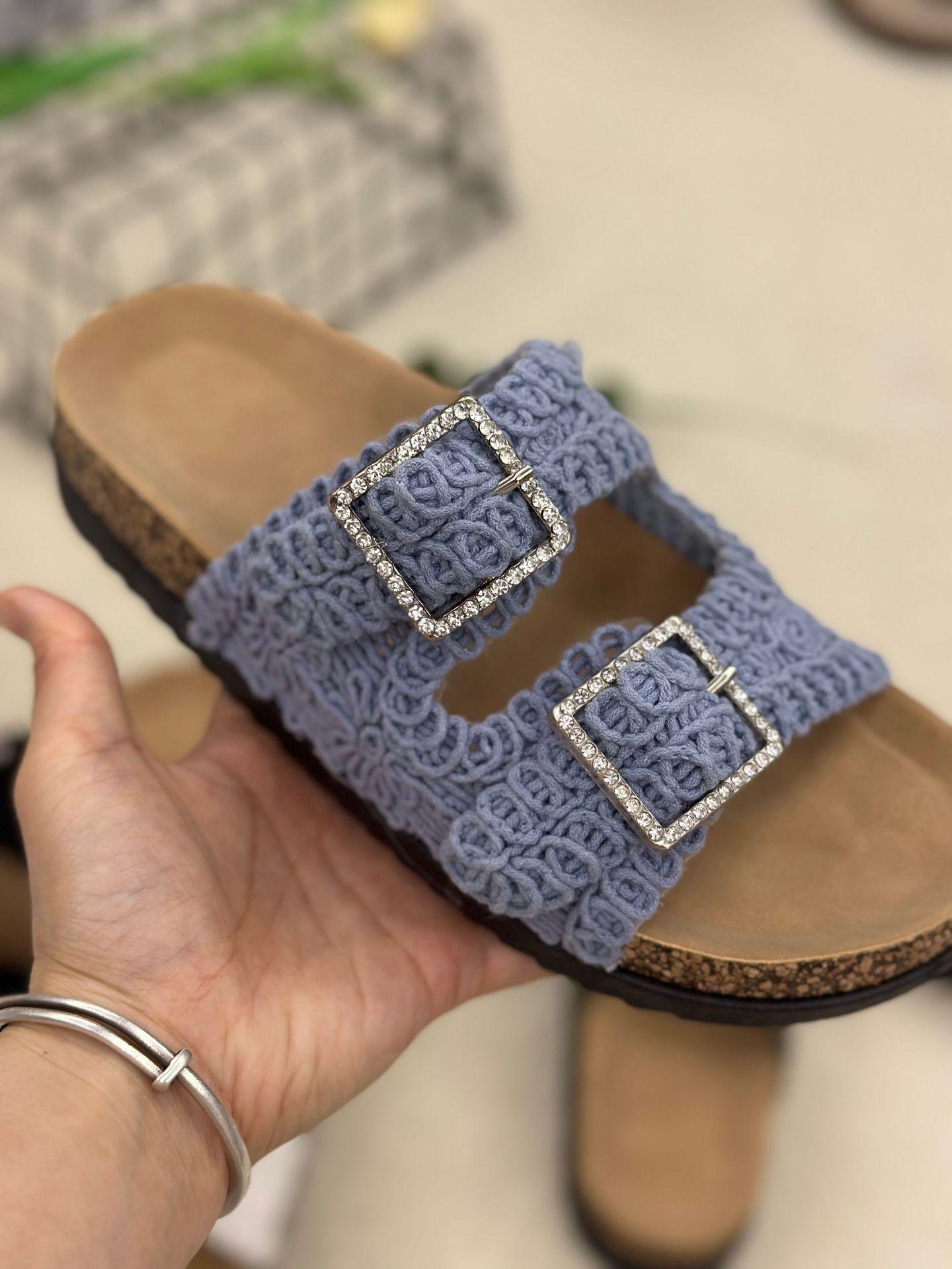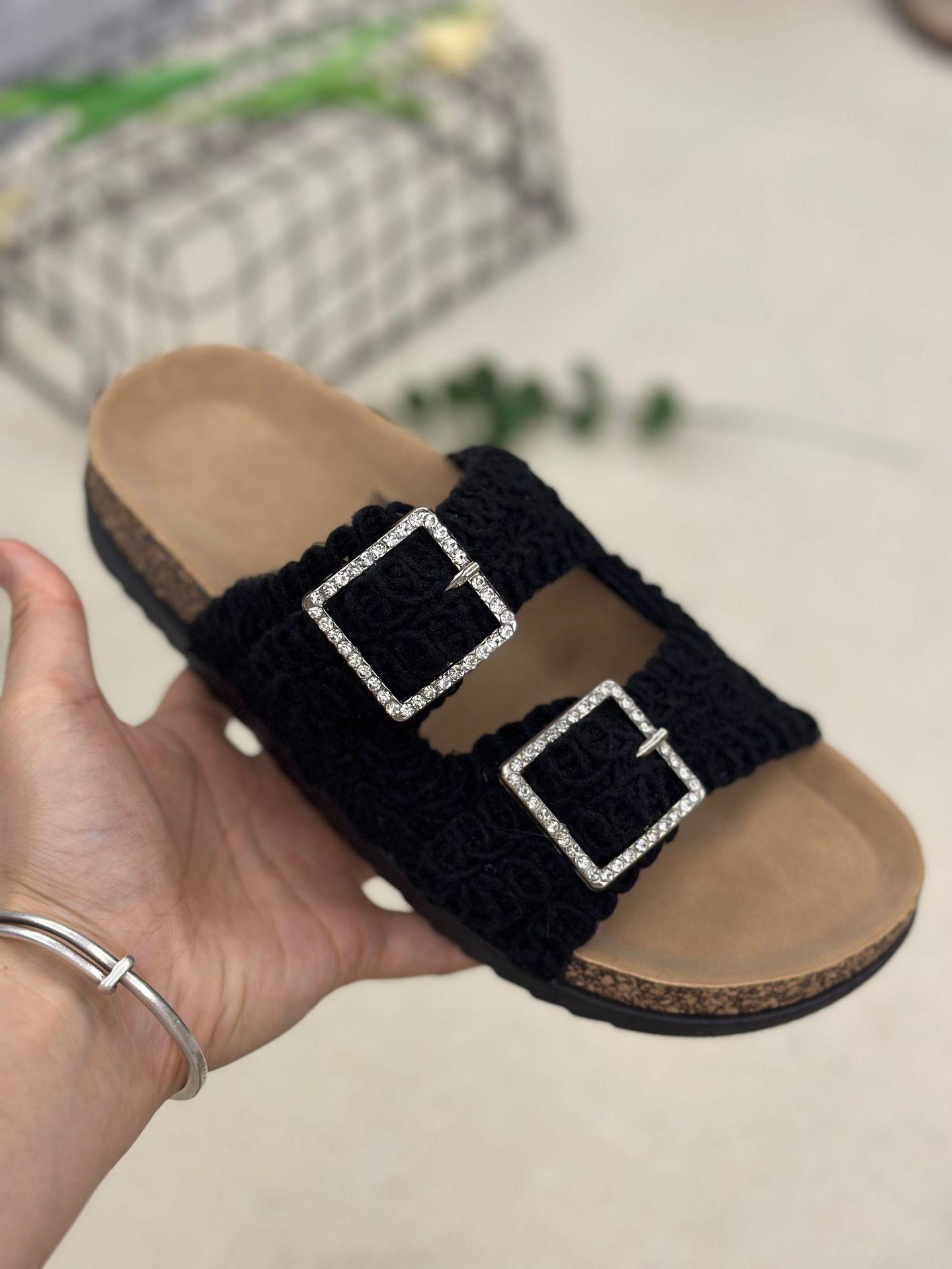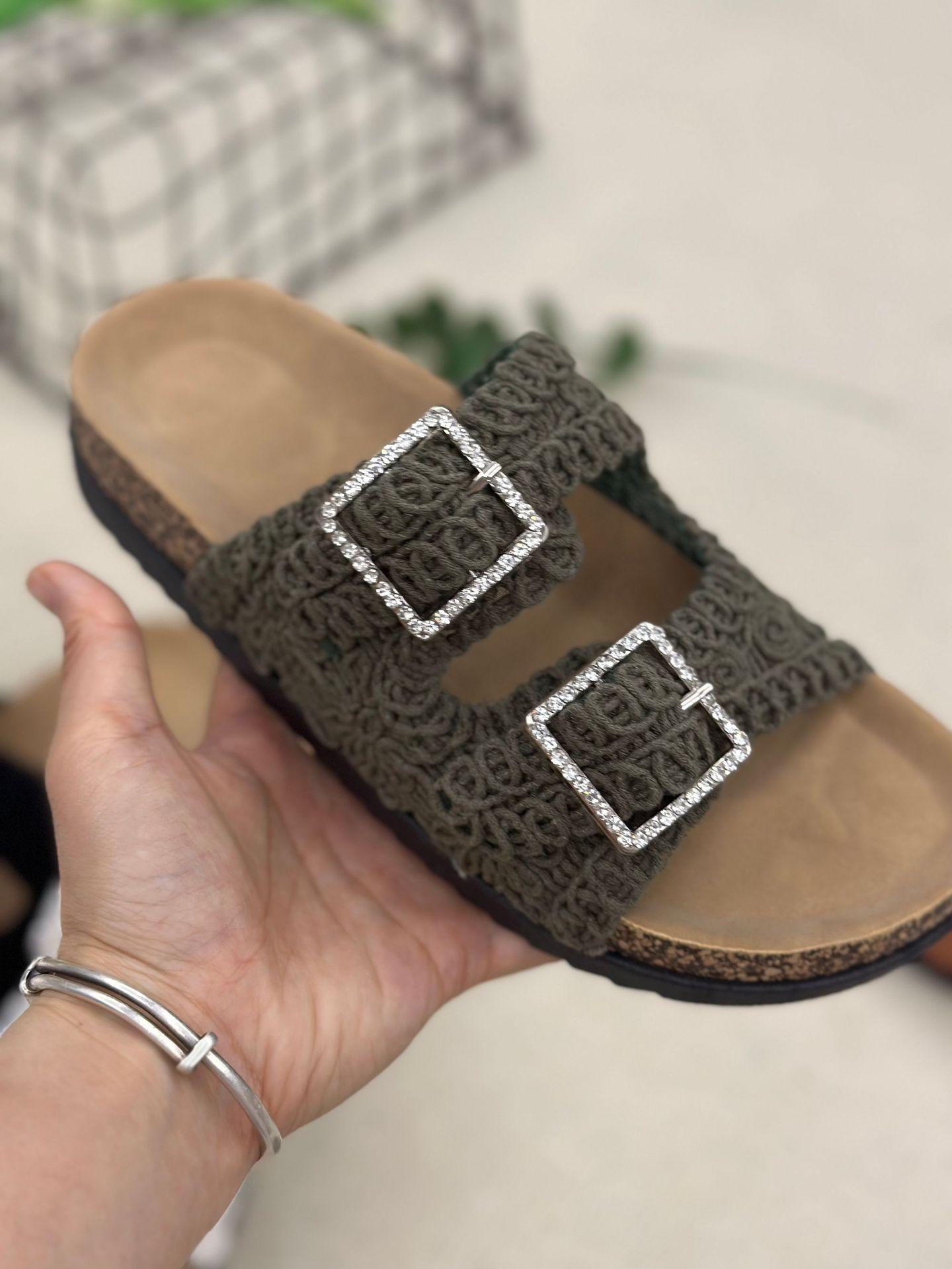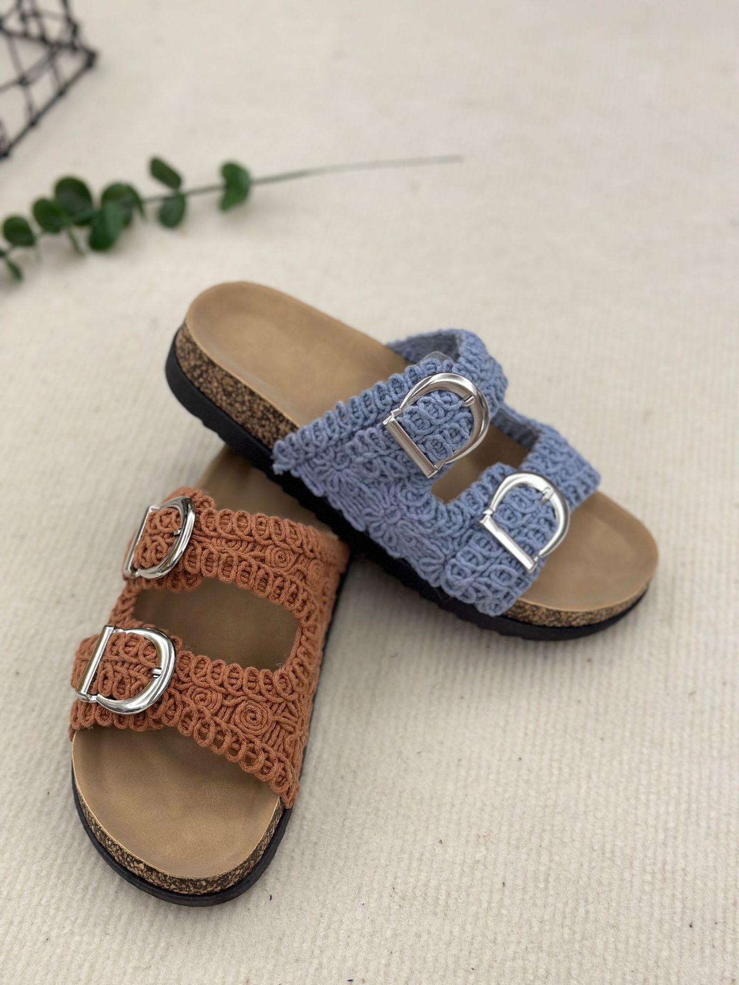 Zapatillas de Corcho con Doble Hebilla y Pedrería de Estilo Étnico para Comercio Transfronterizo Europeo y Americano, Sandalias de Suela Gruesa para Uso Exterior, Zapatillas