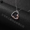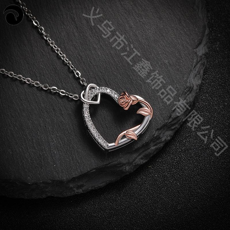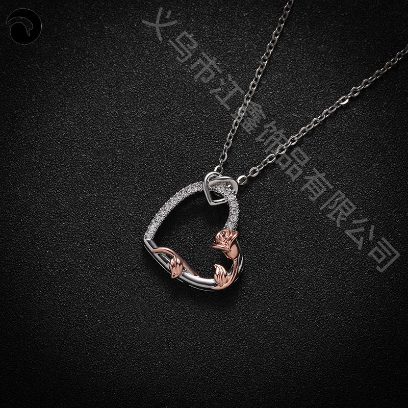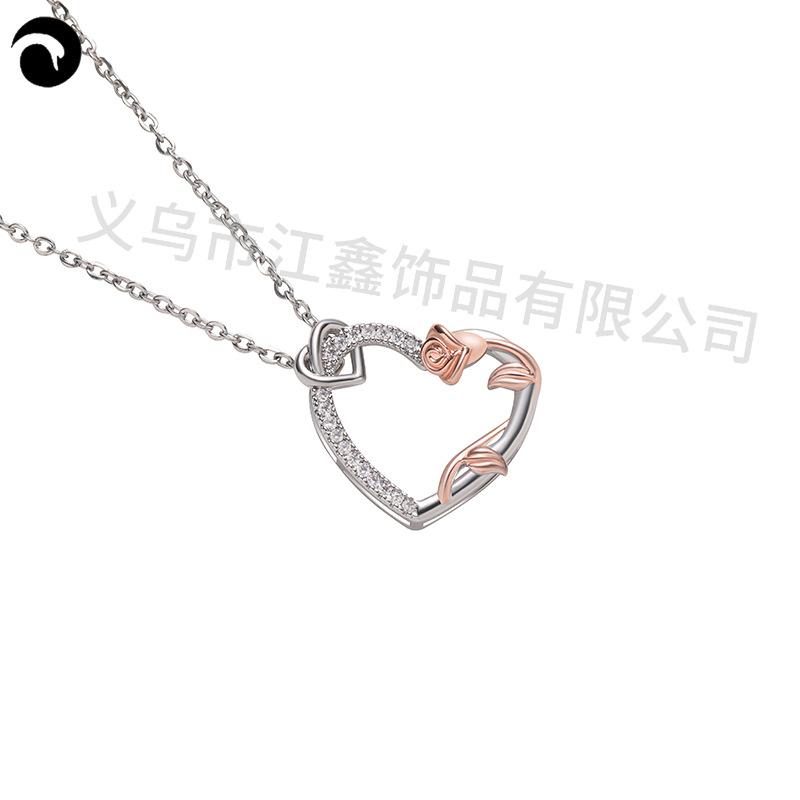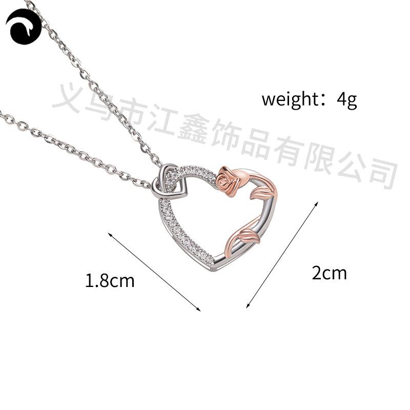 Cadena de clavícula chapada en oro real de dos colores con personalidad sencilla, collar de corazón de melocotón rosa de dos colores, accesorios de cadena de clavícula, diseño de nicho