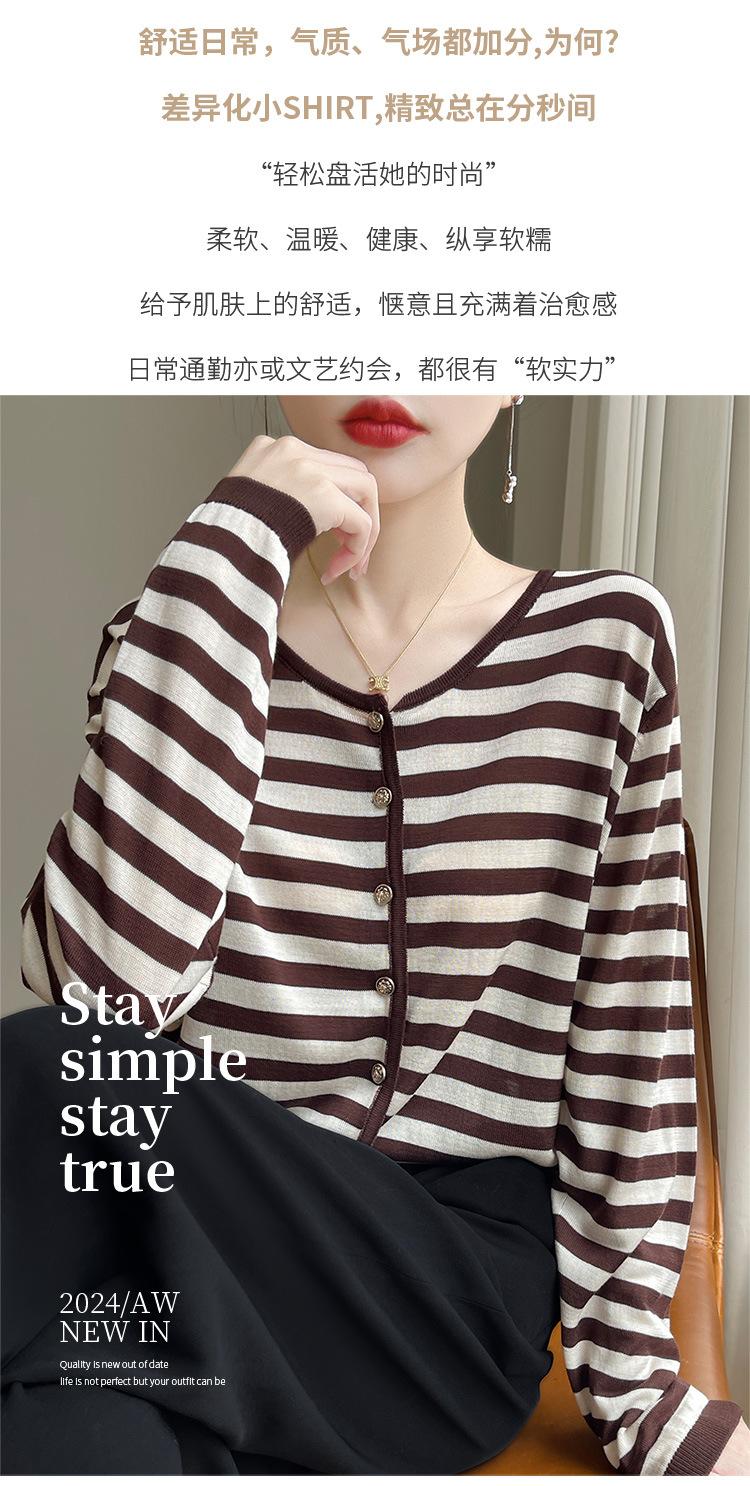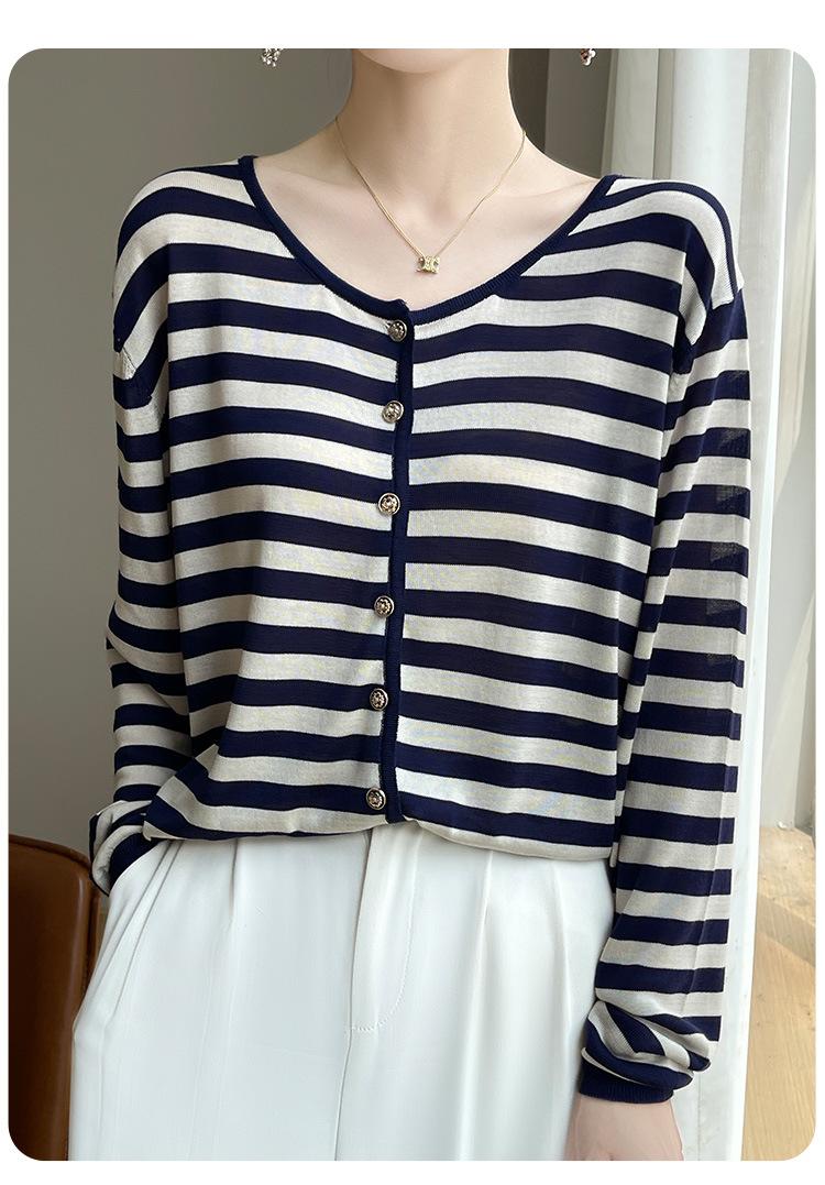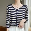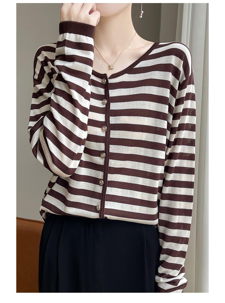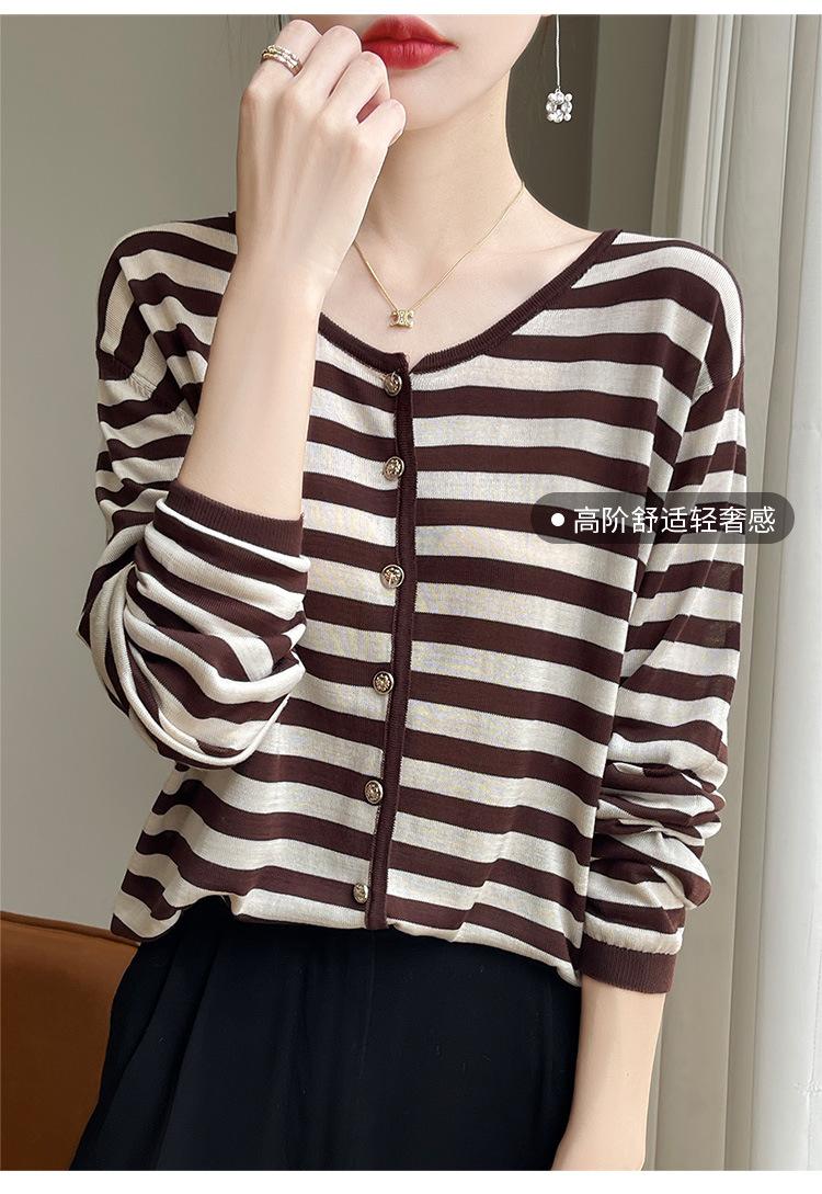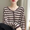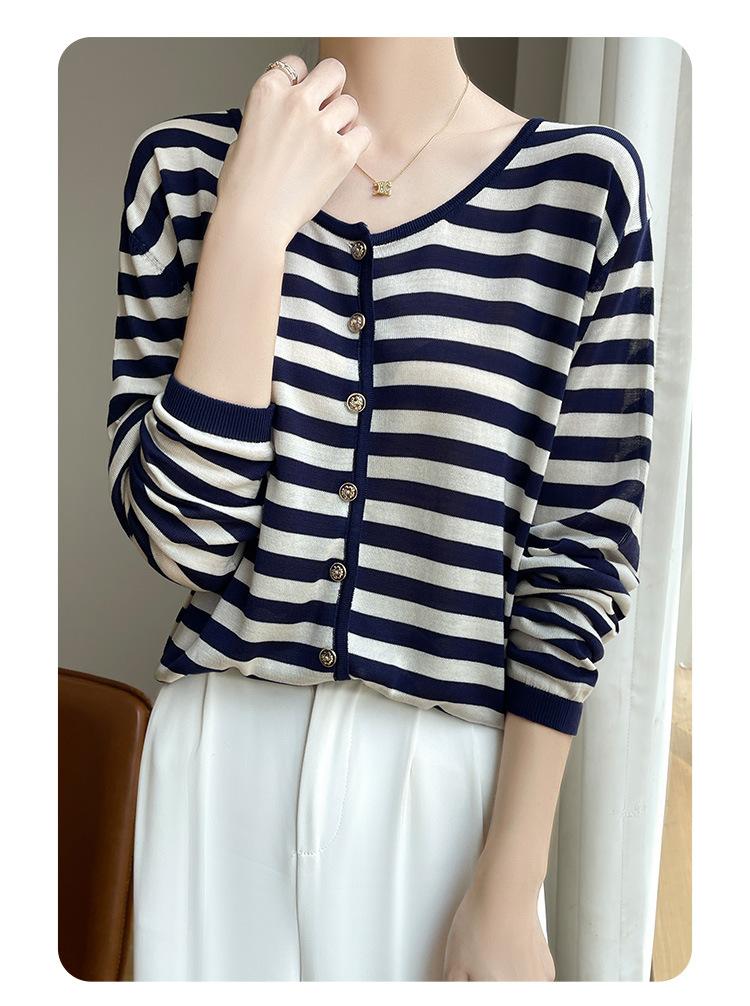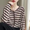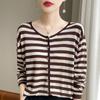 Cárdigan de punto a rayas coreanas para mujer, primavera y otoño 2024, nuevo, cuello redondo, holgado, combinable, chaqueta fina