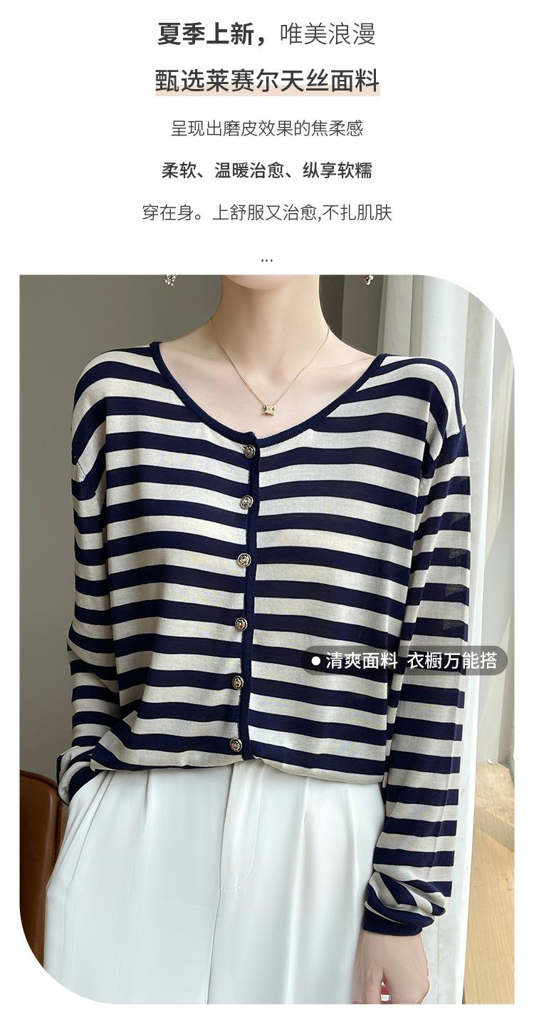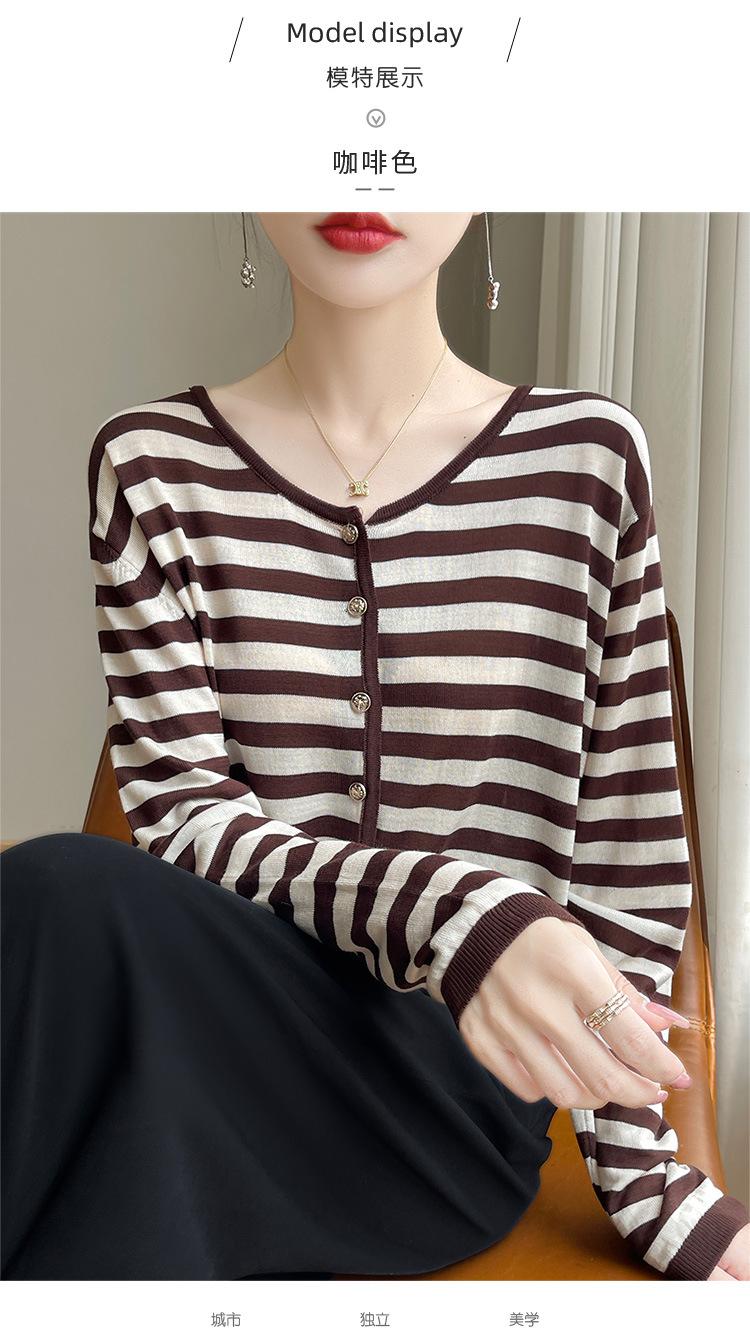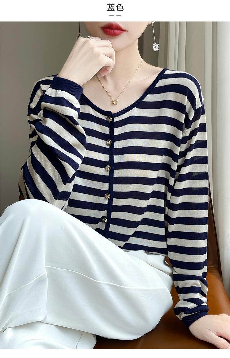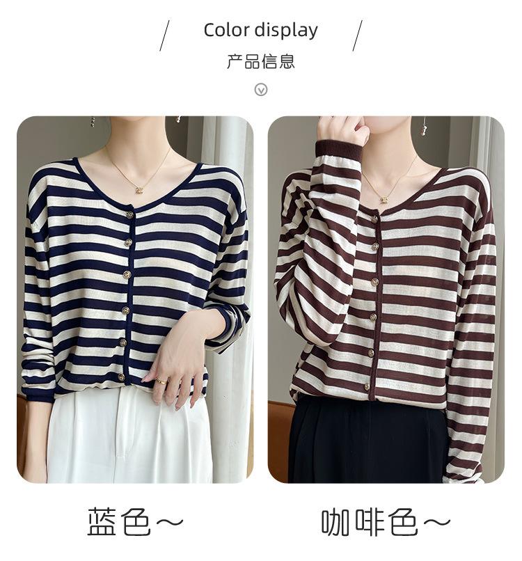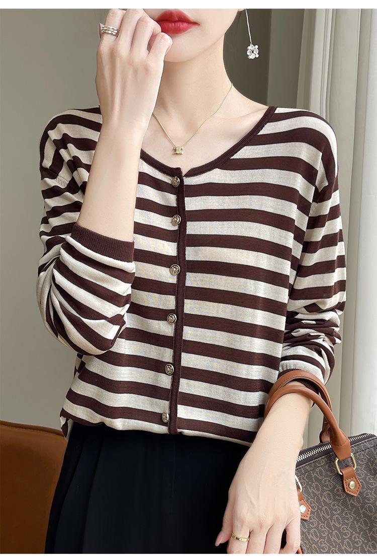 Cárdigan de punto a rayas coreanas para mujer, primavera y otoño 2024, nuevo, cuello redondo, holgado, combinable, chaqueta fina