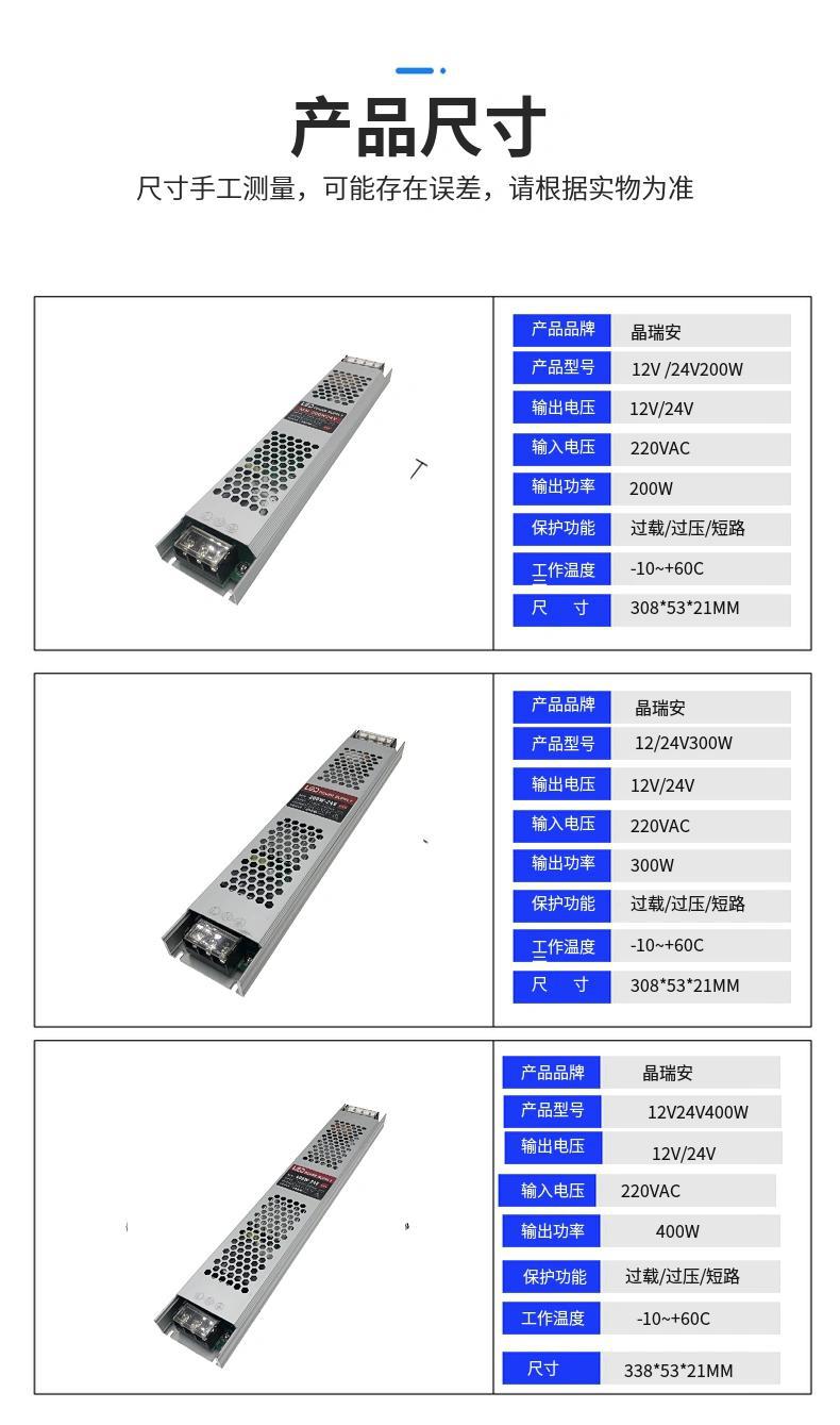 12V400W, 24V400W, 12V300W, 24V300W, 12V200W, 24V200W, 12V150W, 24V150W, 12V100W, 24V100W, 12V60W, 24V60W
