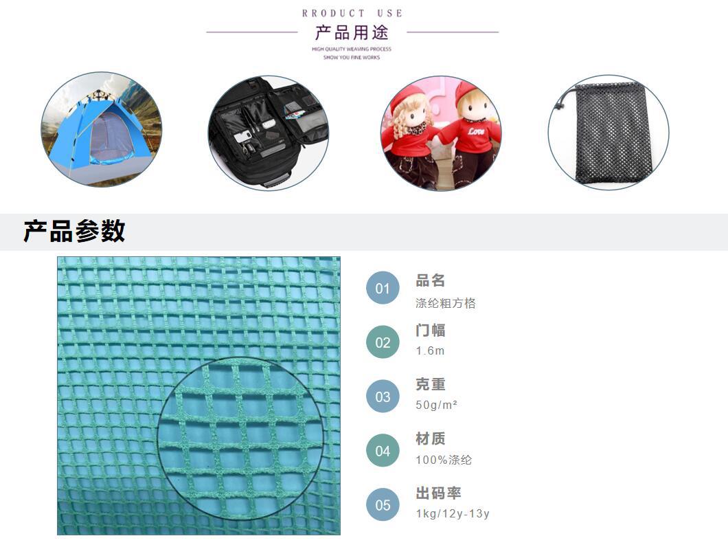 Los fabricantes recomiendan malla de poliéster para zapatos y sombreros, costura de ropa, bolsas de malla, puertas y ventanas de tiendas de campaña, accesorios de ropa.