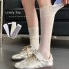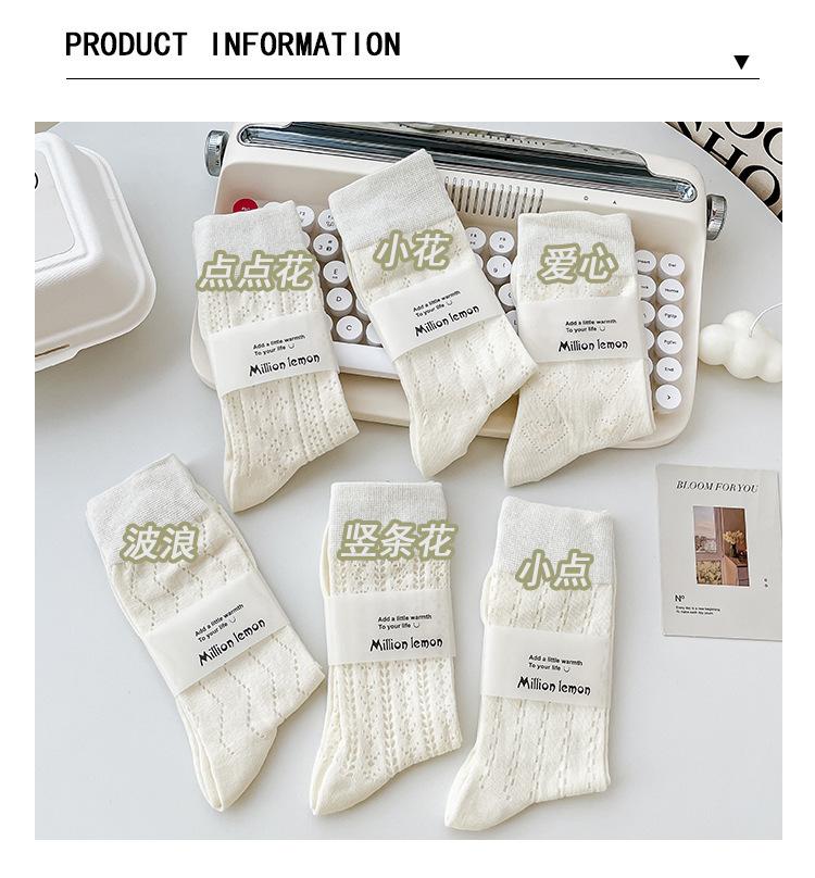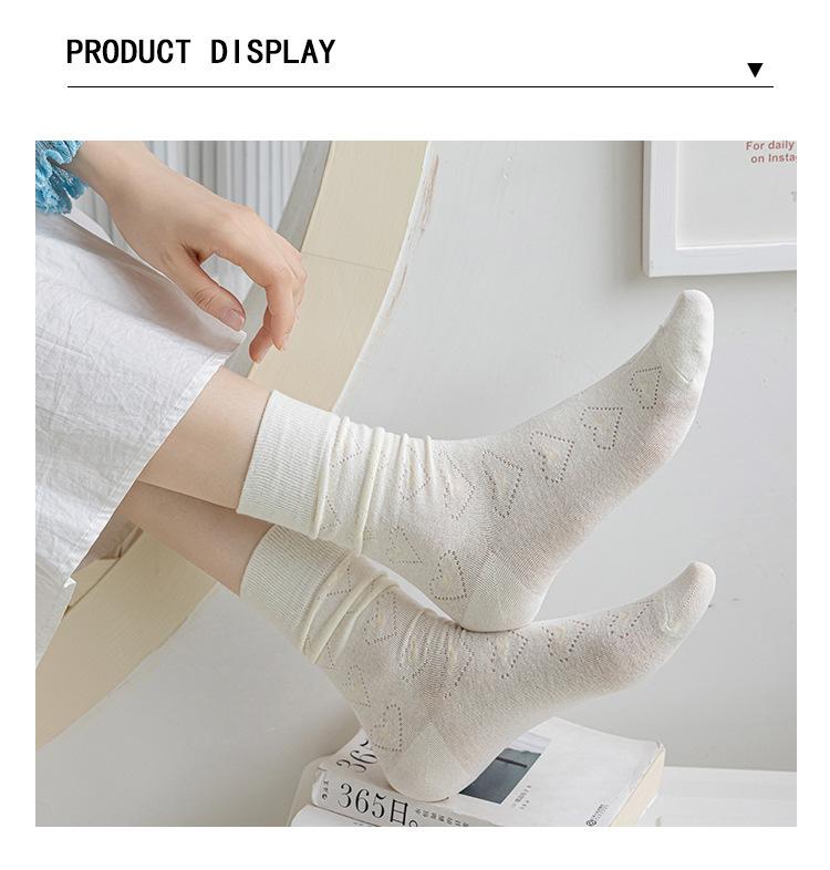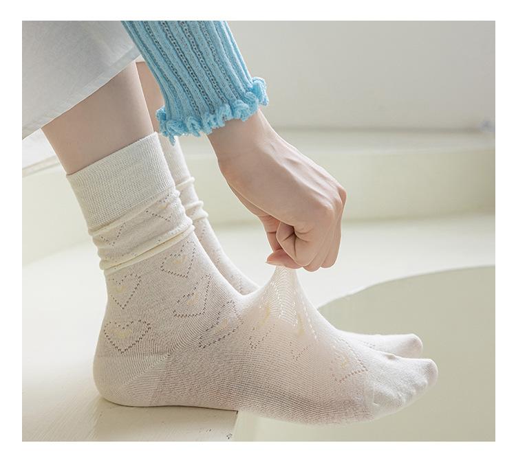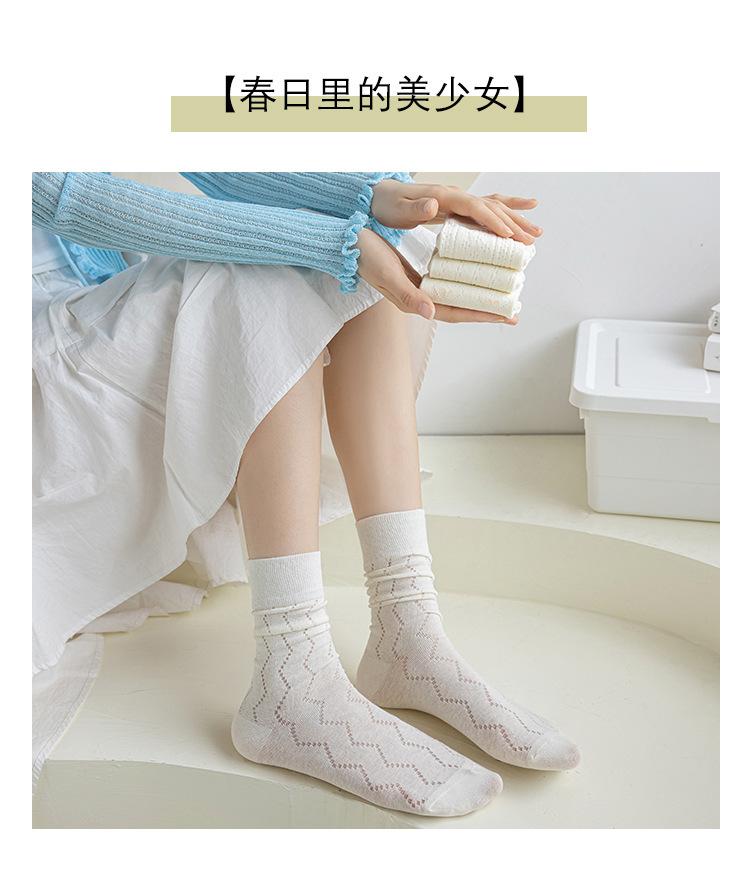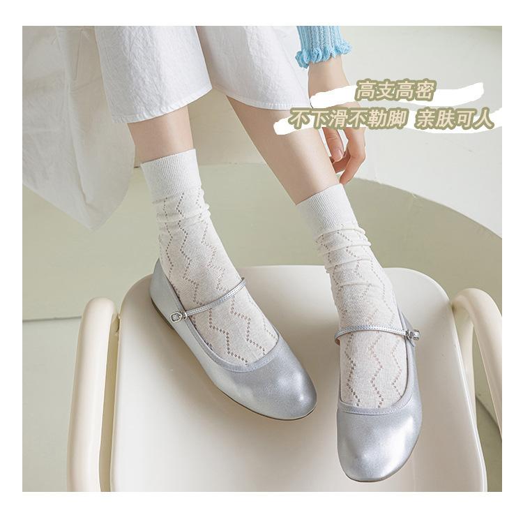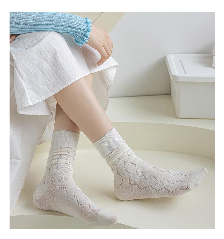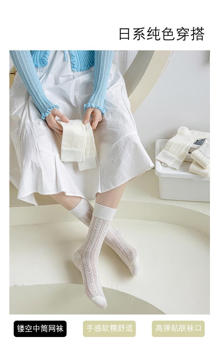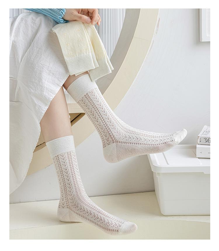 Calcetines Altos de Encaje Calcetines Blancos para Mujer Primavera y Verano Calcetines Delgados de Media Caña Malla Hueca Transpirable Color Sólido Calcetines Largos