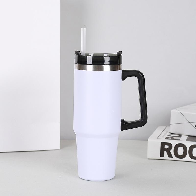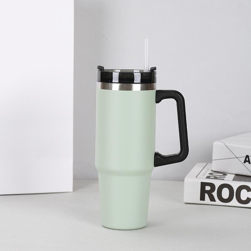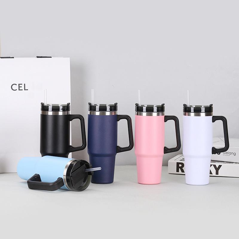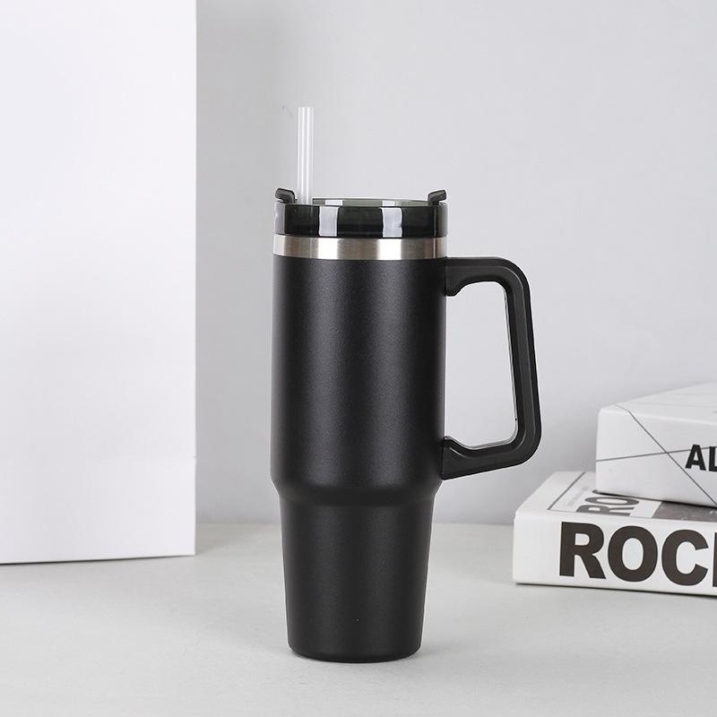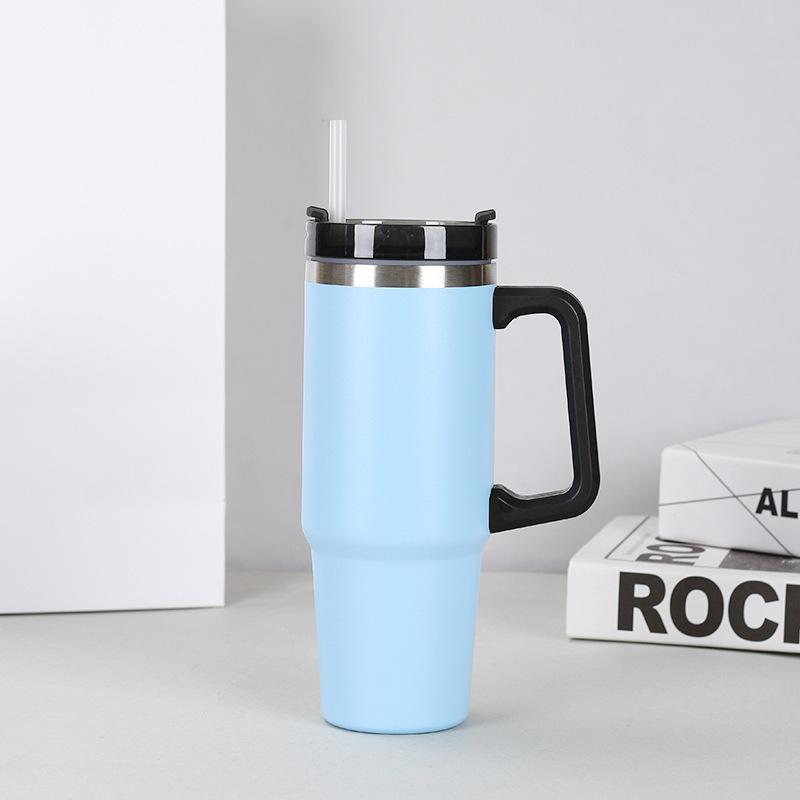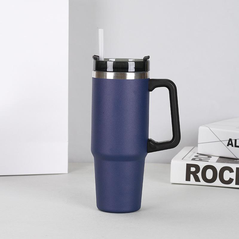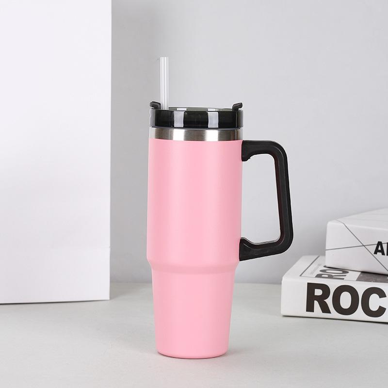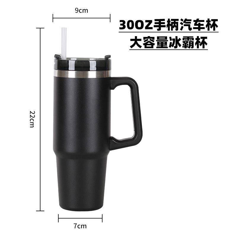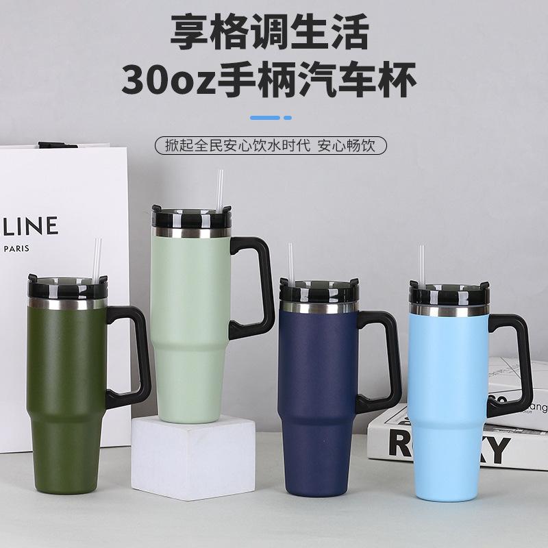 Taza para auto con asa de 30 oz, taza de acero inoxidable 304 con pajita al vacío, taza de helado portátil de gran capacidad para auto.