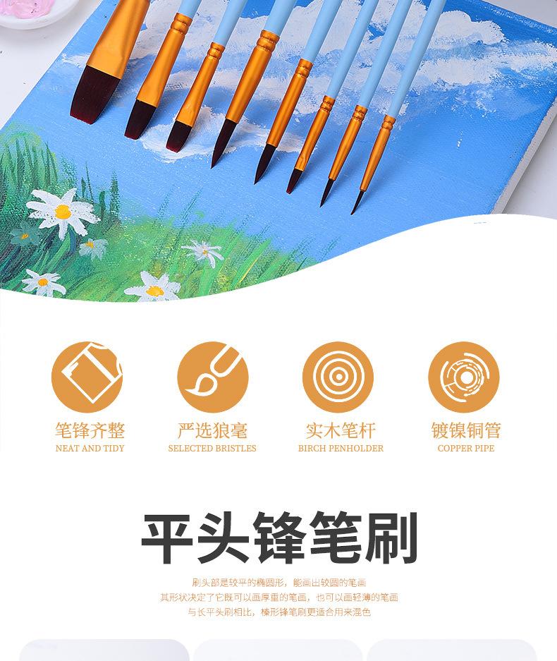 Juego de bolígrafos gouache transfronterizos, bolígrafo para pintar acuarela, bolígrafo para estudiantes de arte, pincel plano de nailon de cabeza redonda para colorear