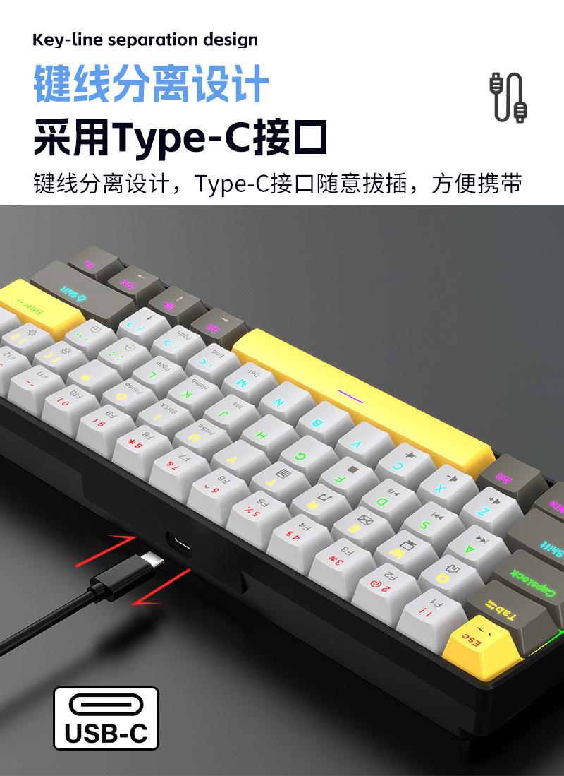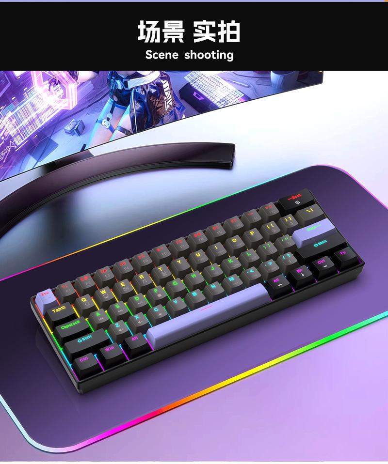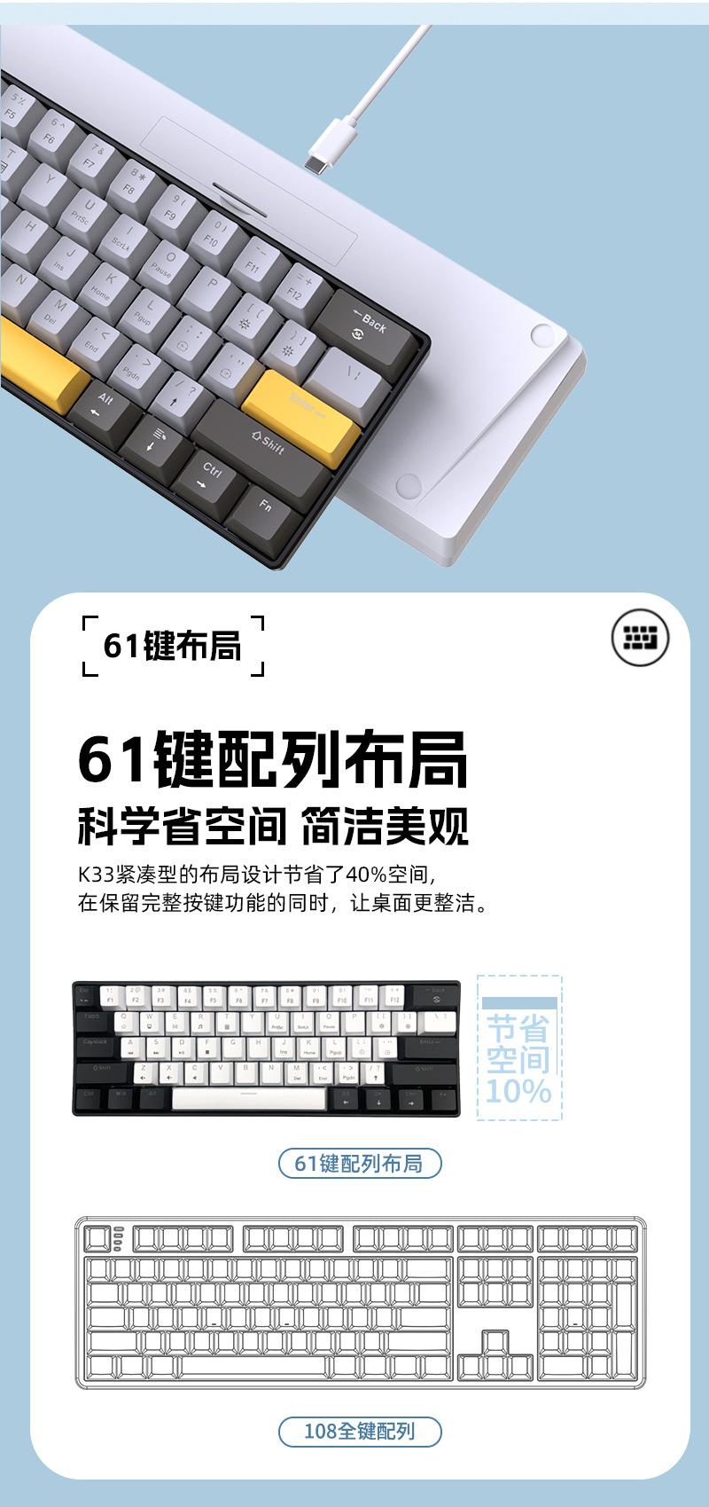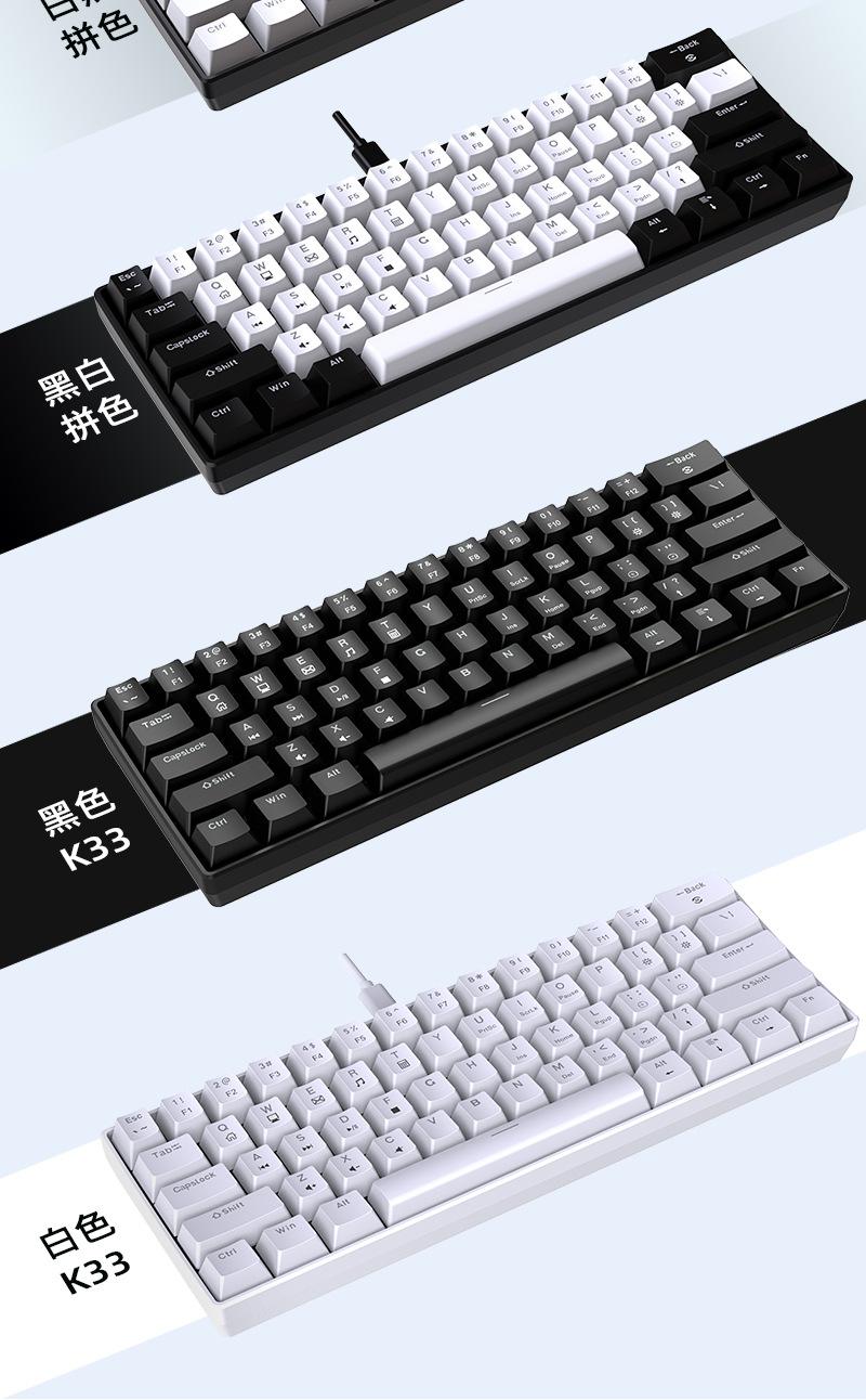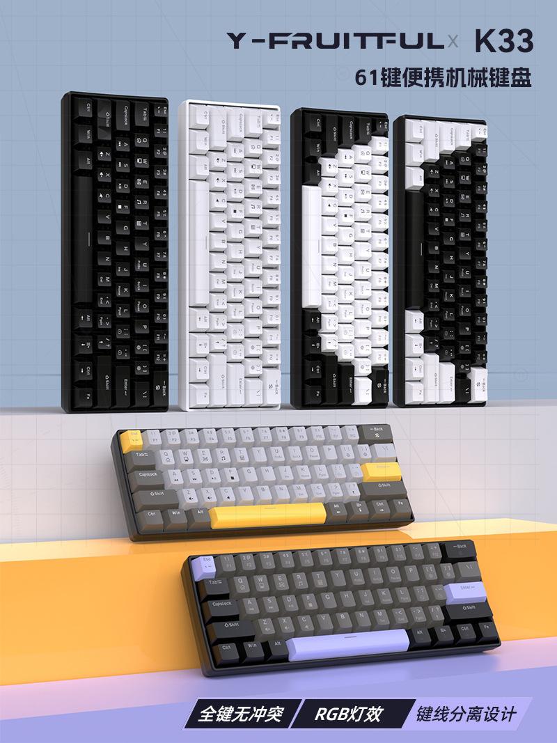 Teclado Mecánico Alámbrico Personalizado Transfronterizo al por Mayor Yun Guo Guo K33 61 Teclas Tpc Intercambiable en Caliente Teclado para Juegos Personalizado