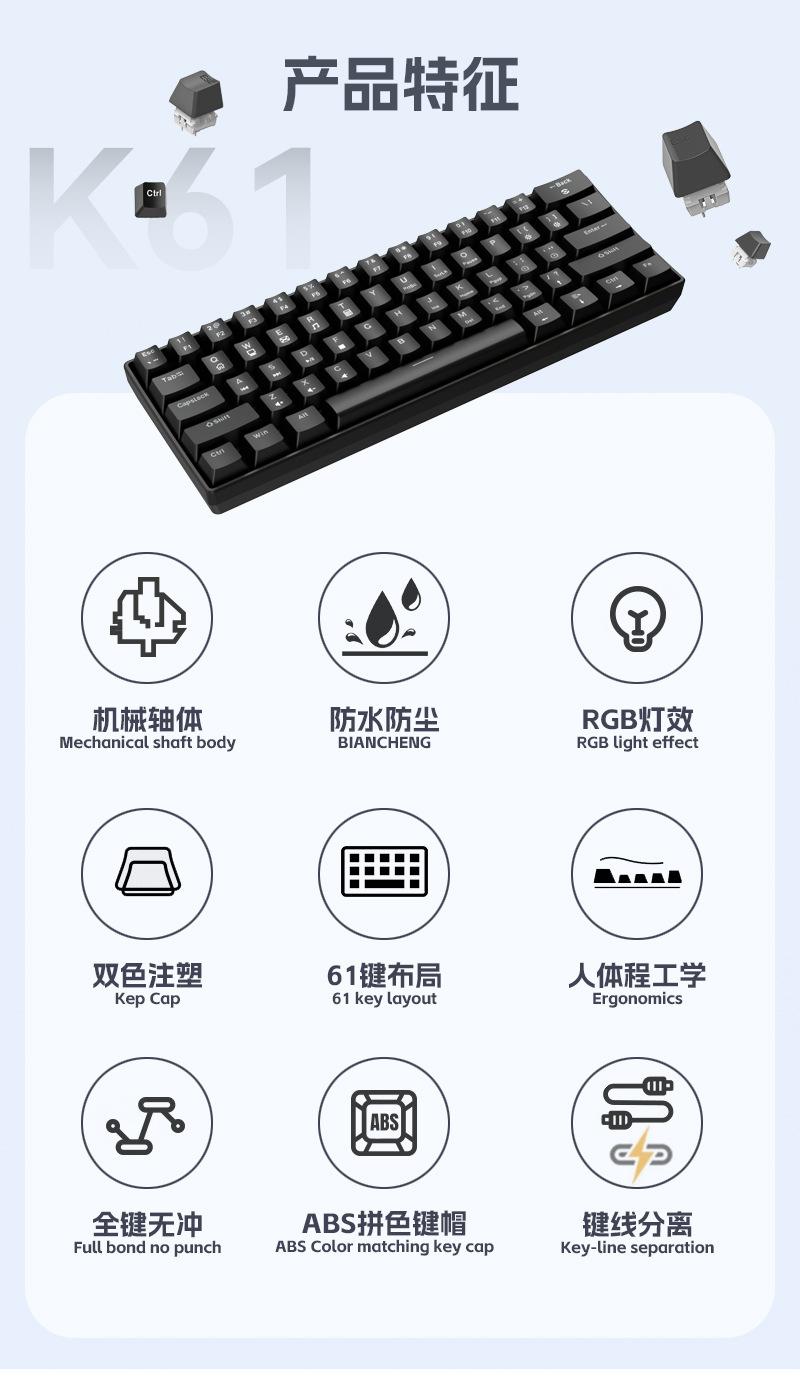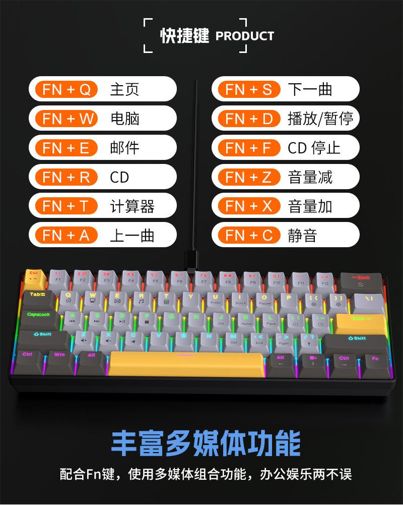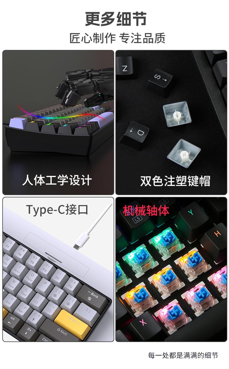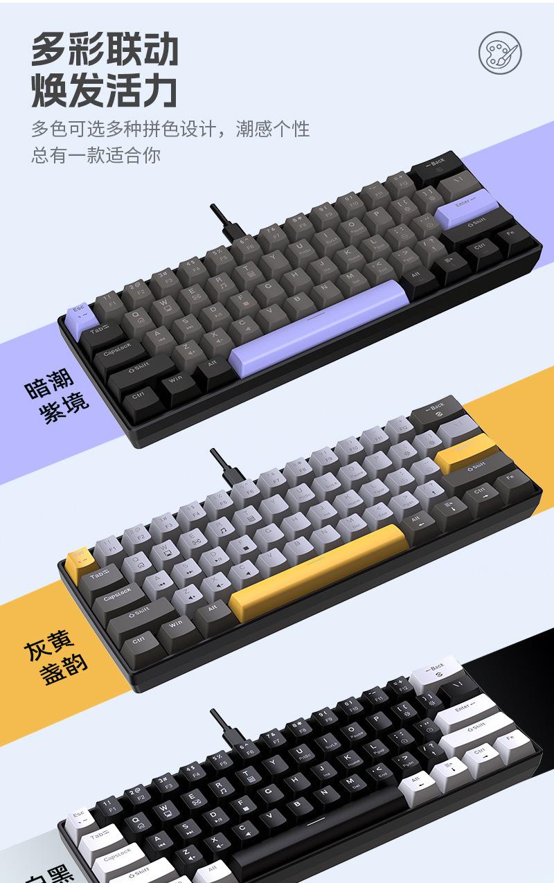 Teclado Mecánico Alámbrico Personalizado Transfronterizo al por Mayor Yun Guo Guo K33 61 Teclas Tpc Intercambiable en Caliente Teclado para Juegos Personalizado