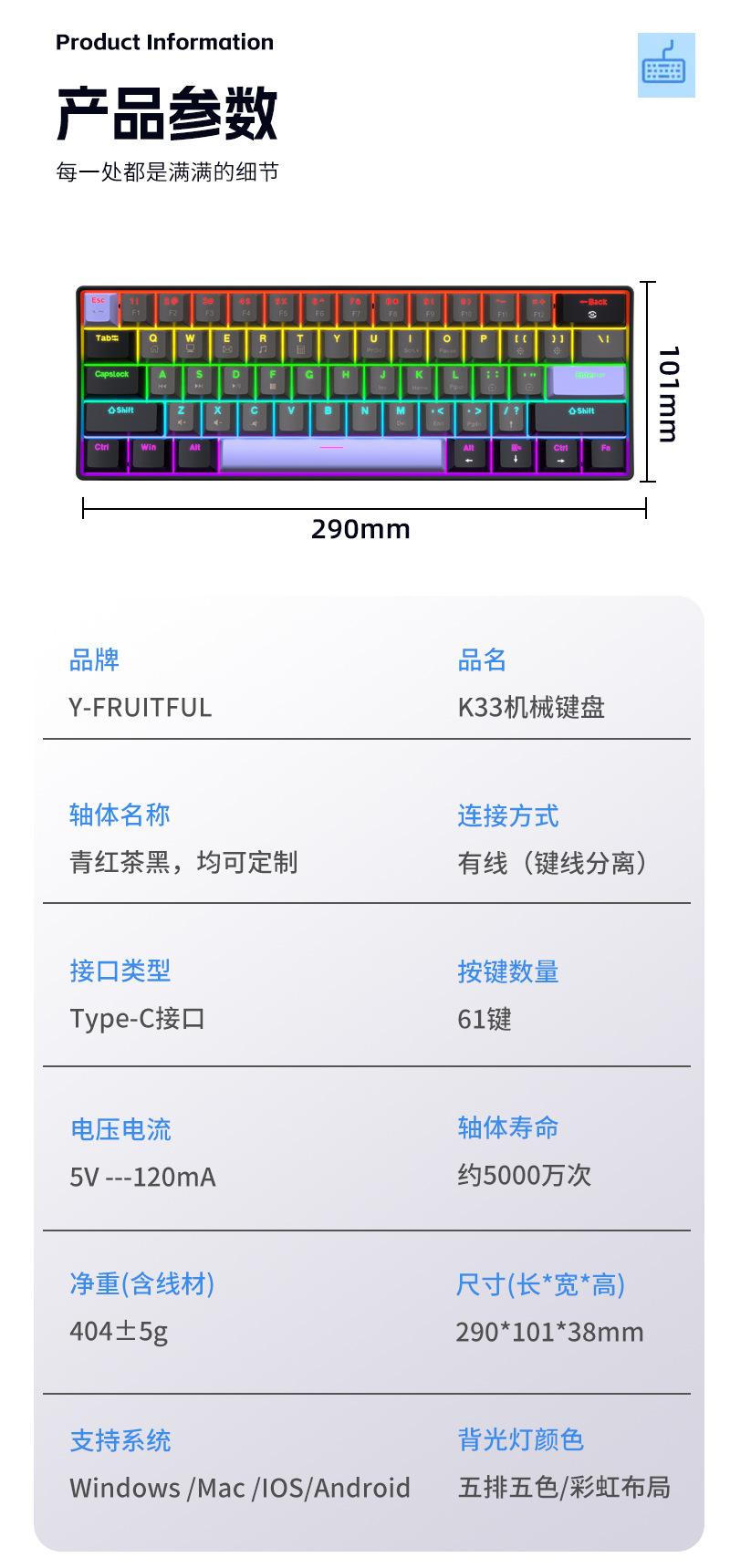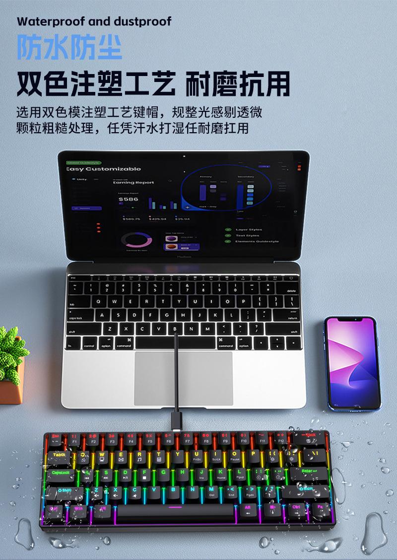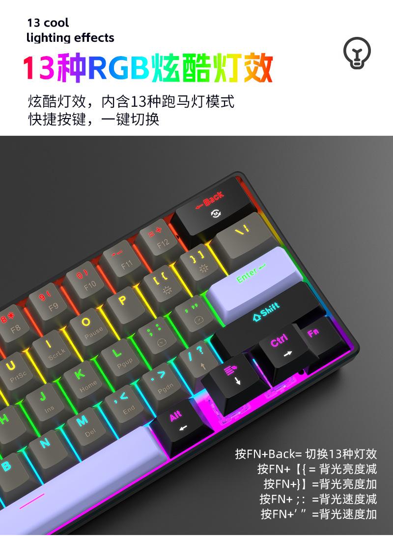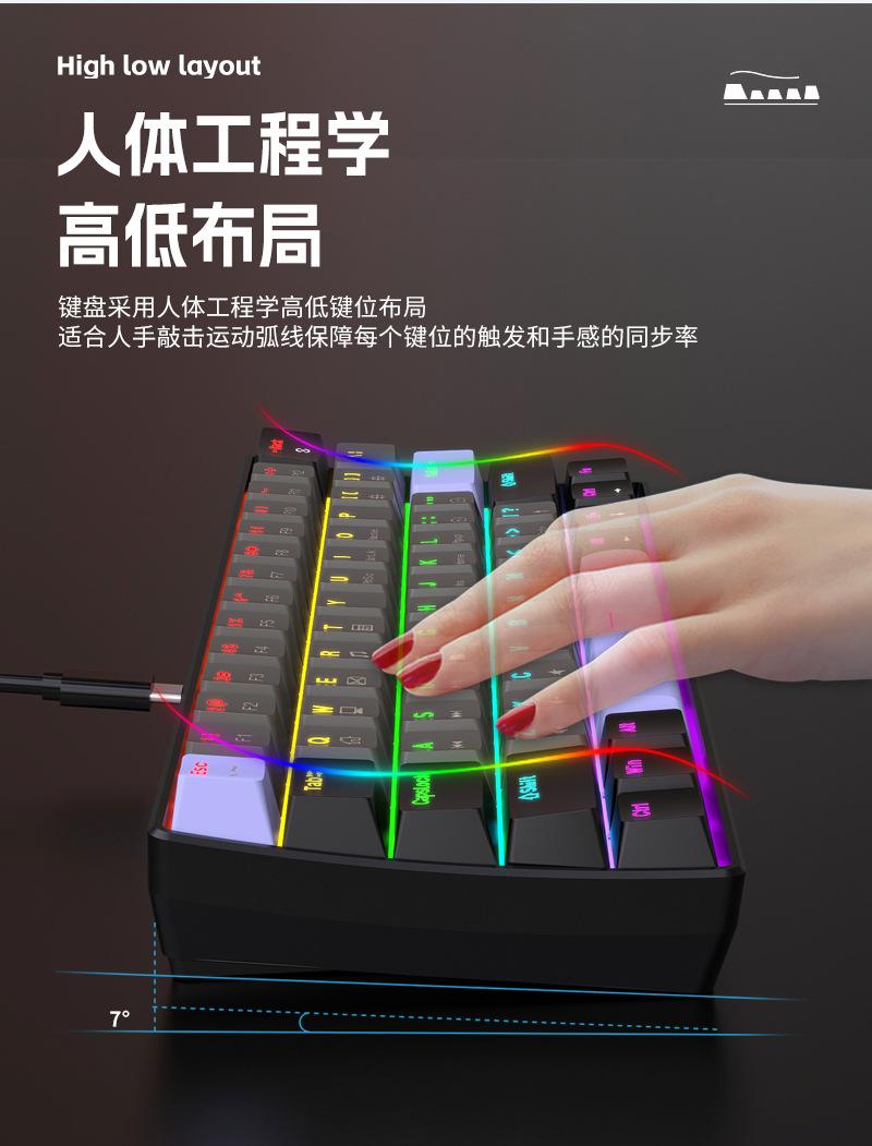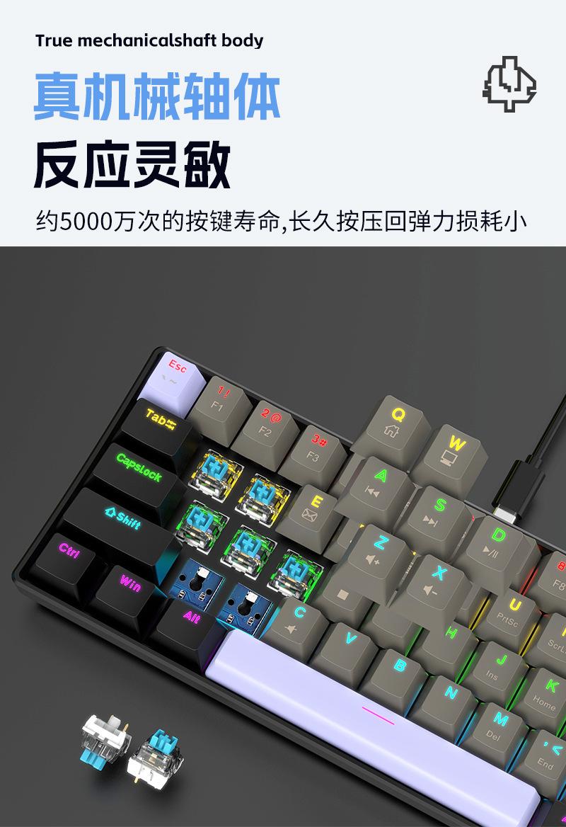 Teclado Mecánico Alámbrico Personalizado Transfronterizo al por Mayor Yun Guo Guo K33 61 Teclas Tpc Intercambiable en Caliente Teclado para Juegos Personalizado
