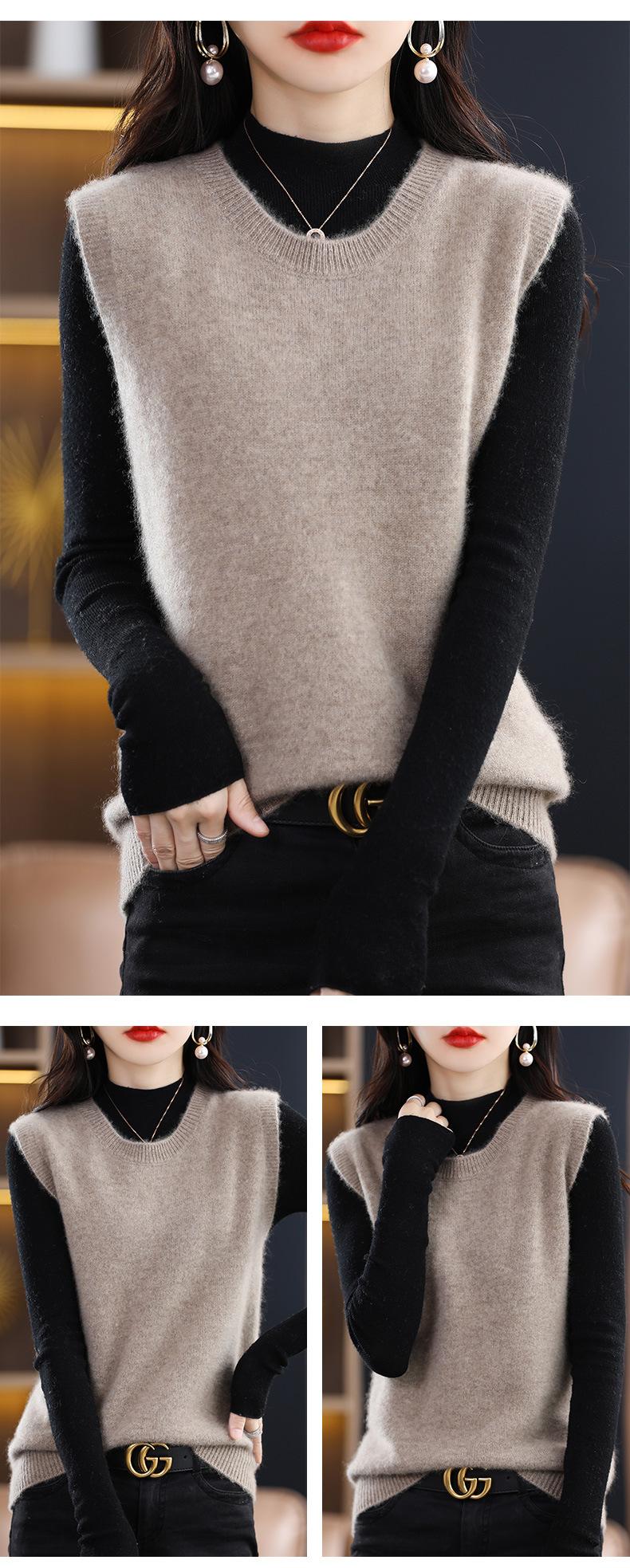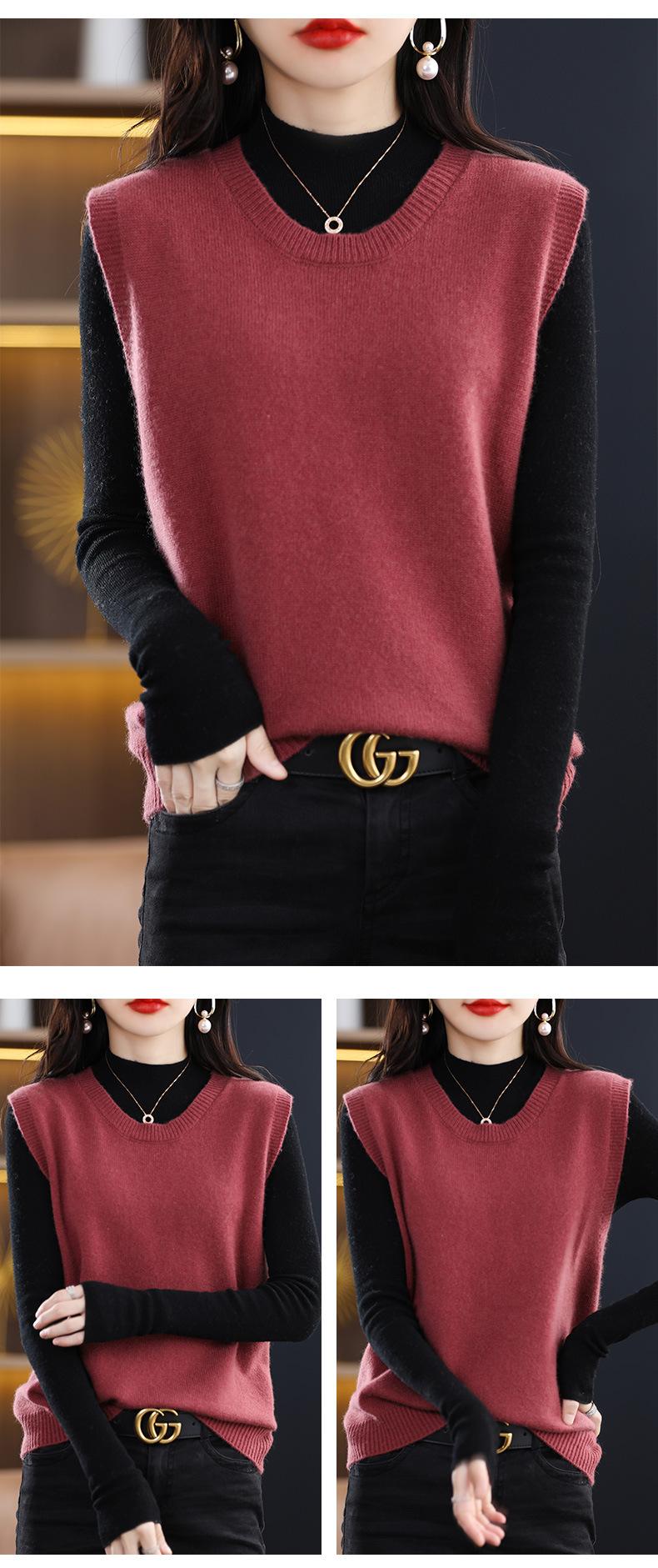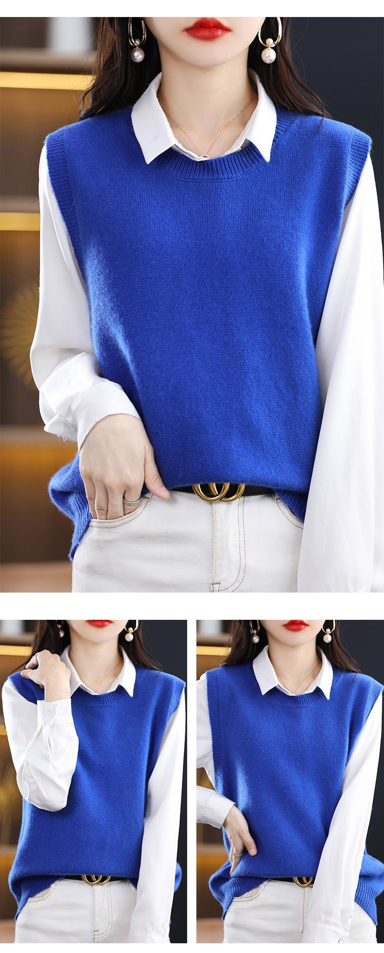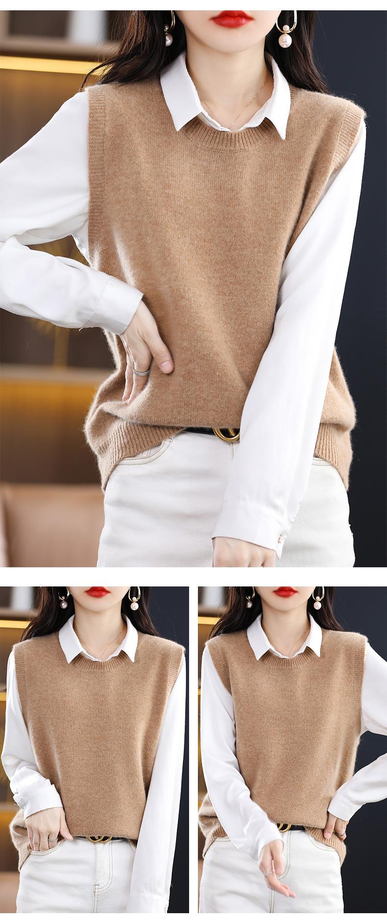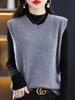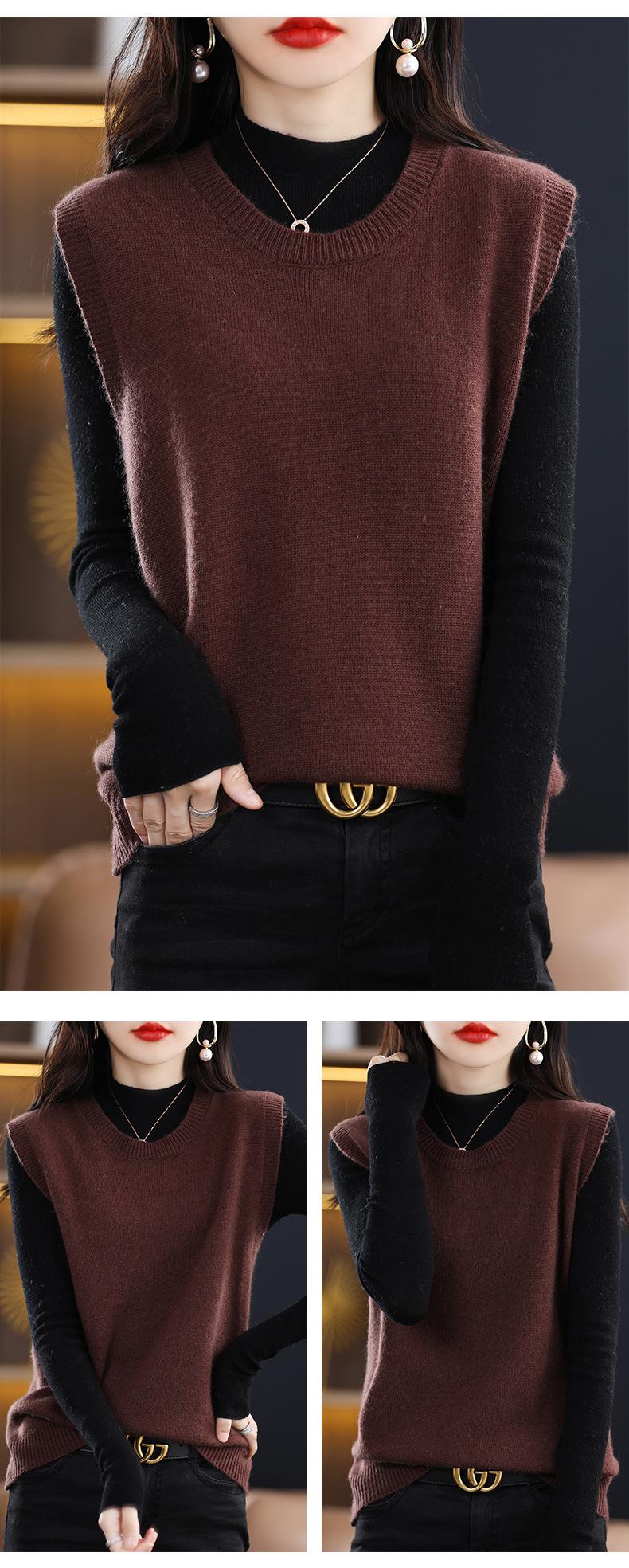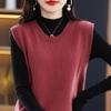 Principios de Otoño Nuevo Chaleco de Punto para Mujer Cuello Redondo Sin Mangas Suelto Casual Color Sólido Suave Ceroso Jersey Elegante Básico Chaleco
