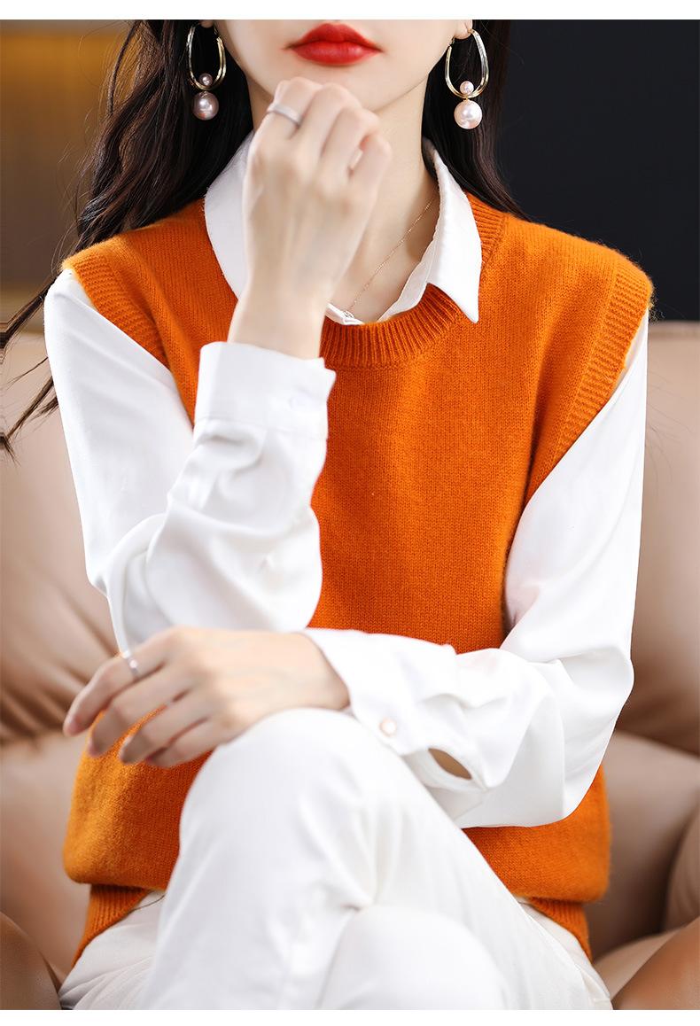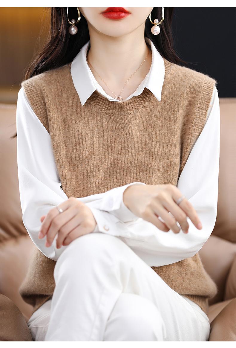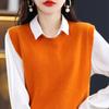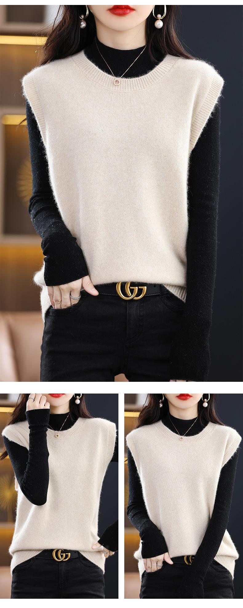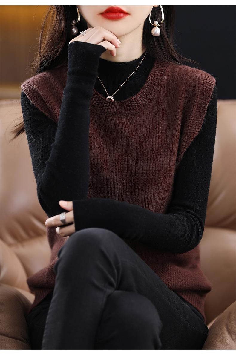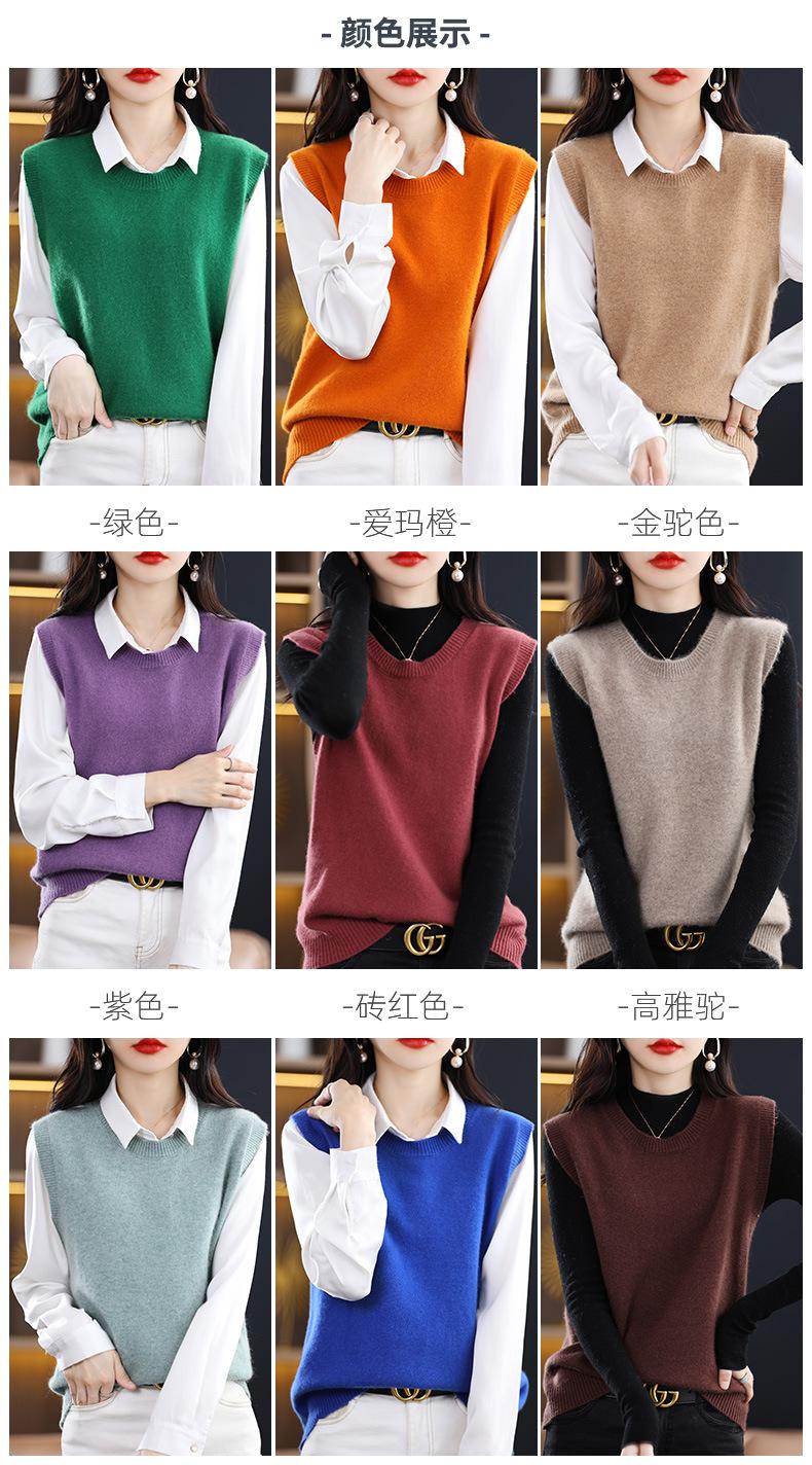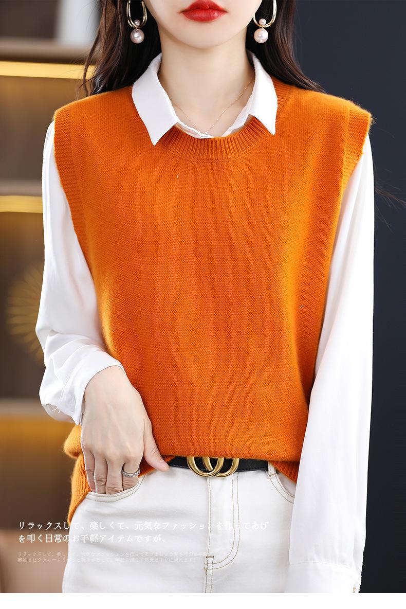 Principios de Otoño Nuevo Chaleco de Punto para Mujer Cuello Redondo Sin Mangas Suelto Casual Color Sólido Suave Ceroso Jersey Elegante Básico Chaleco
