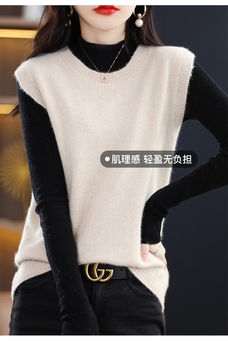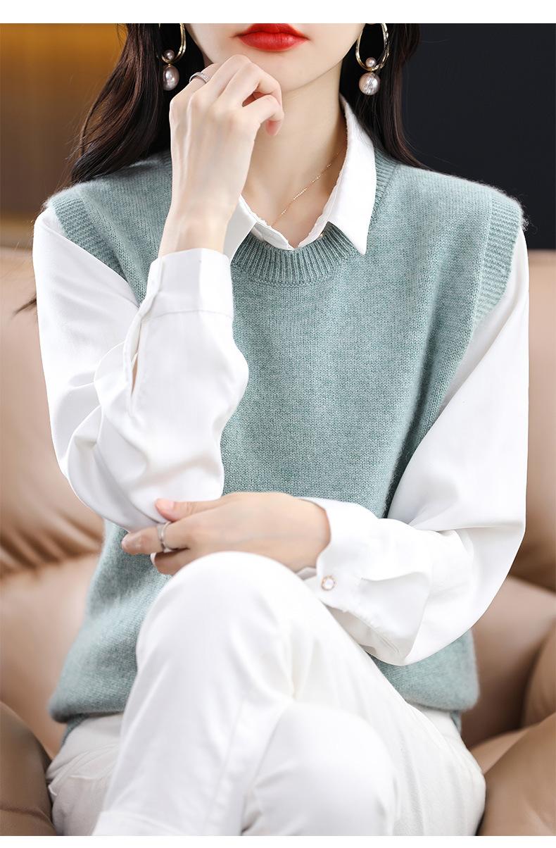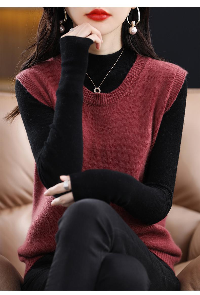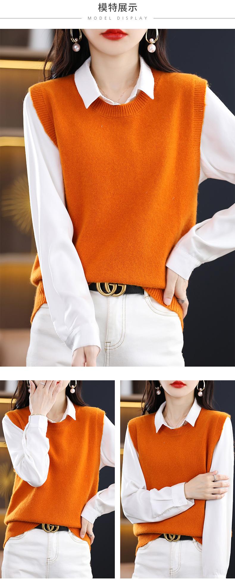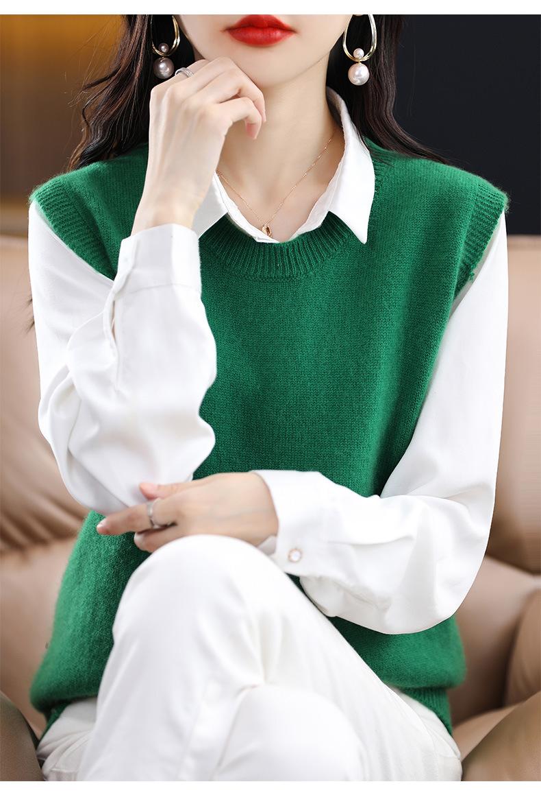 Principios de Otoño Nuevo Chaleco de Punto para Mujer Cuello Redondo Sin Mangas Suelto Casual Color Sólido Suave Ceroso Jersey Elegante Básico Chaleco