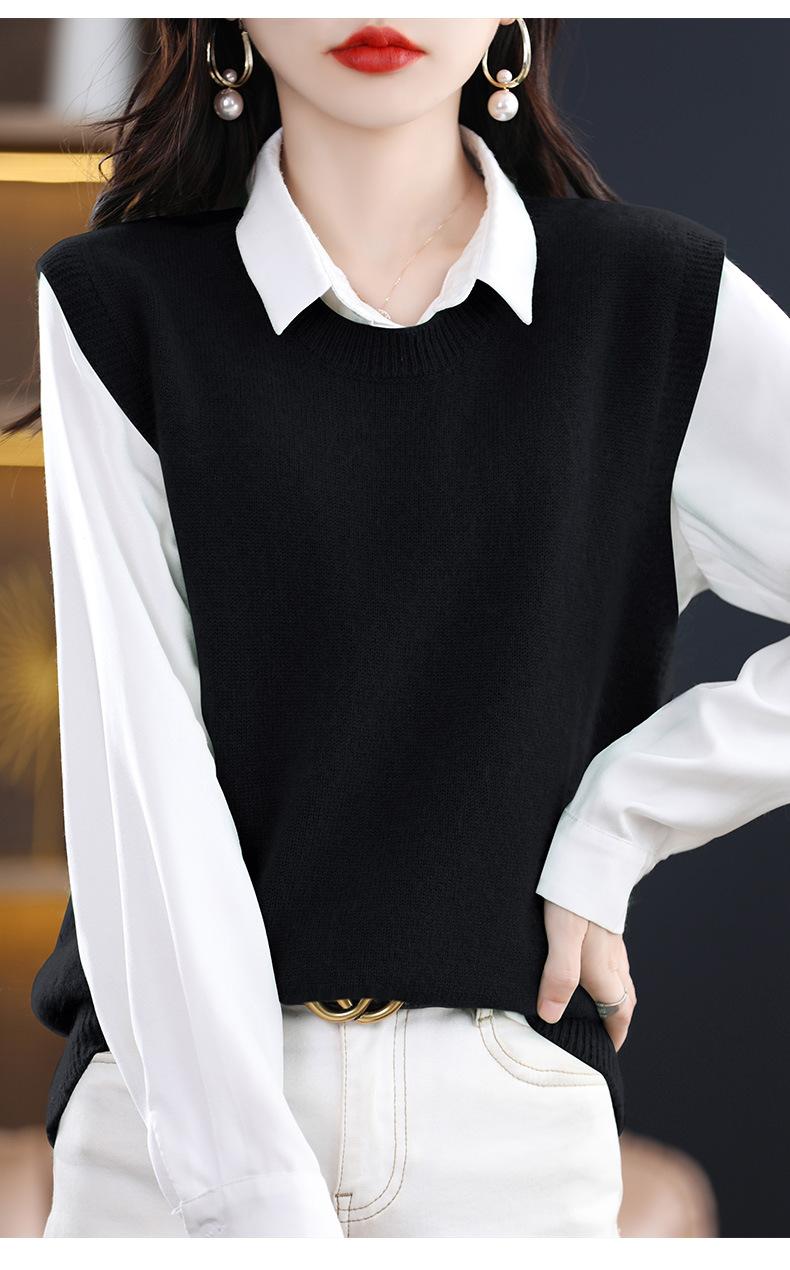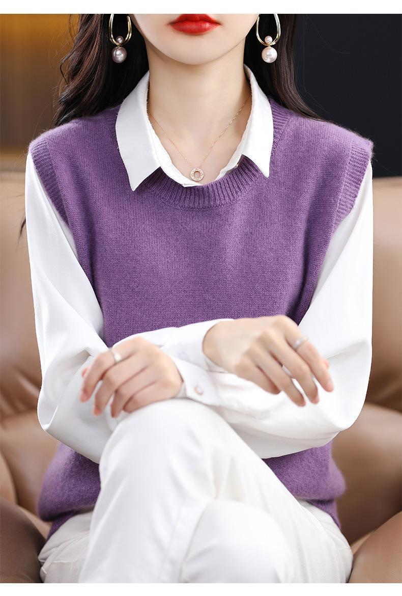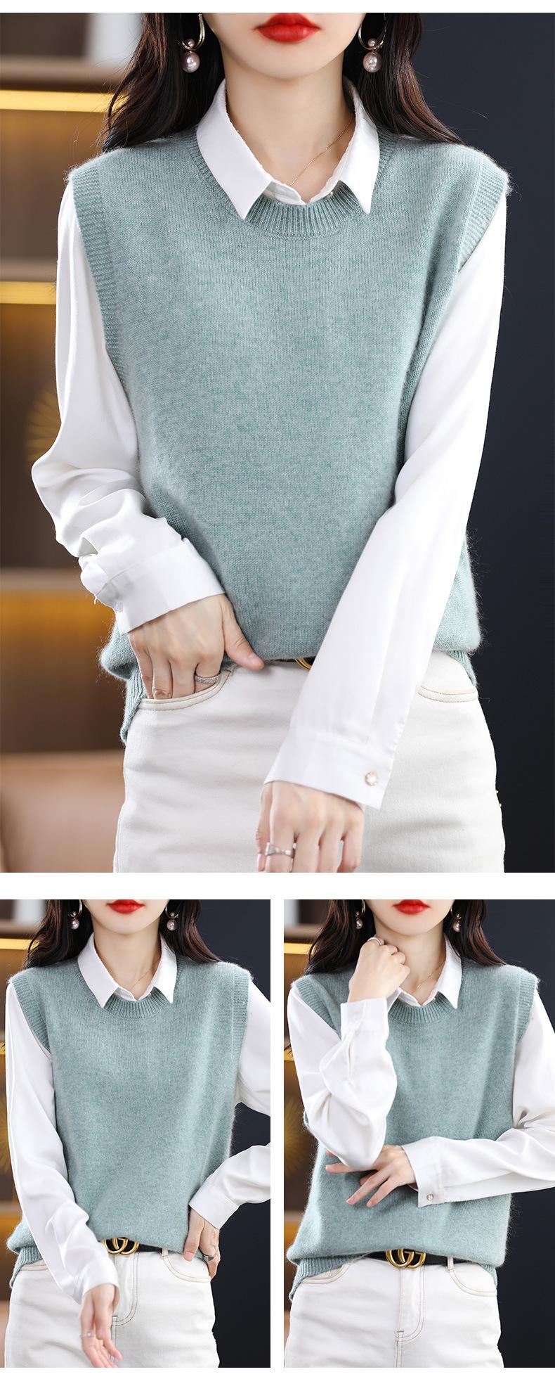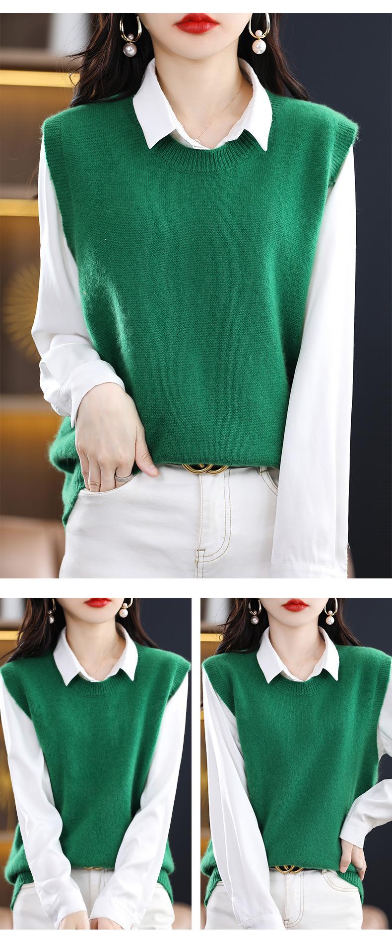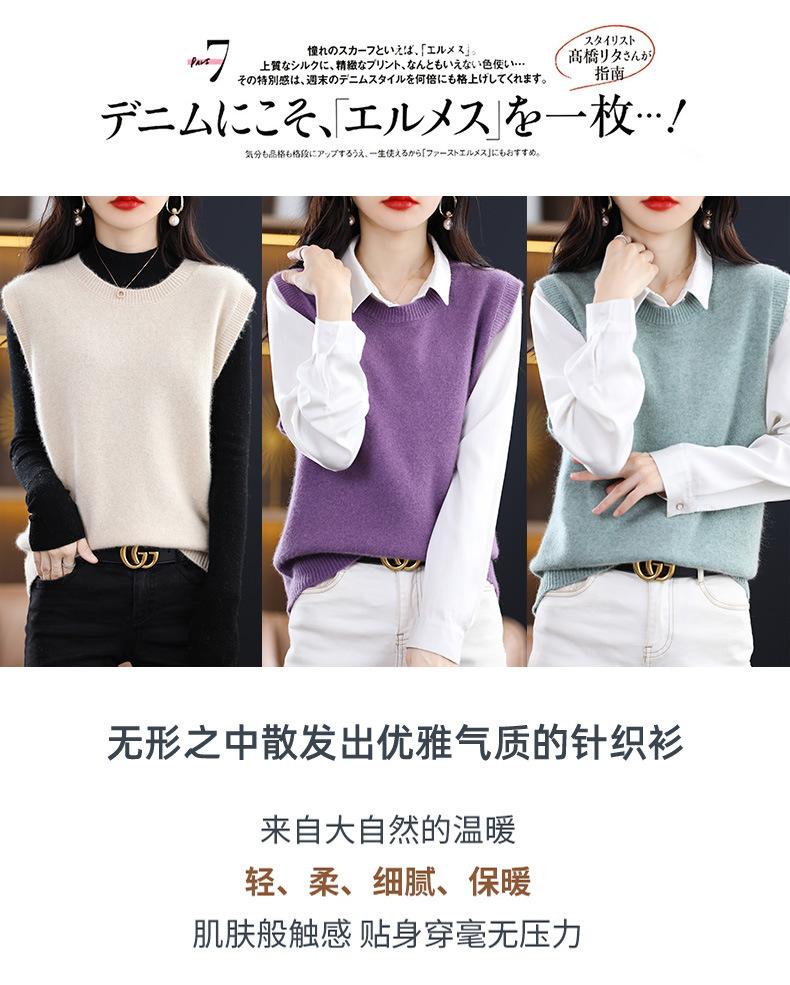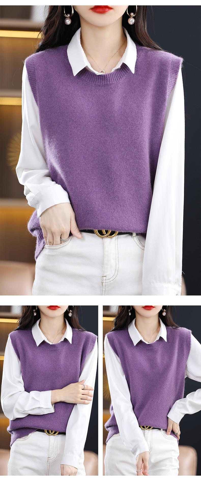 Principios de Otoño Nuevo Chaleco de Punto para Mujer Cuello Redondo Sin Mangas Suelto Casual Color Sólido Suave Ceroso Jersey Elegante Básico Chaleco
