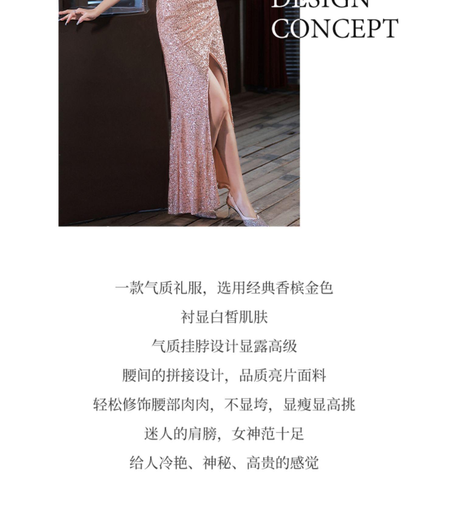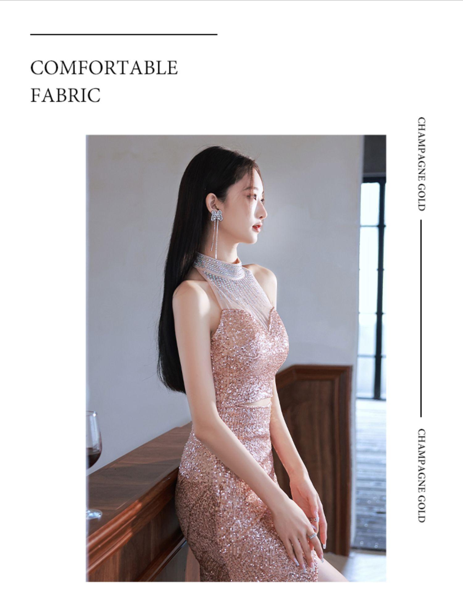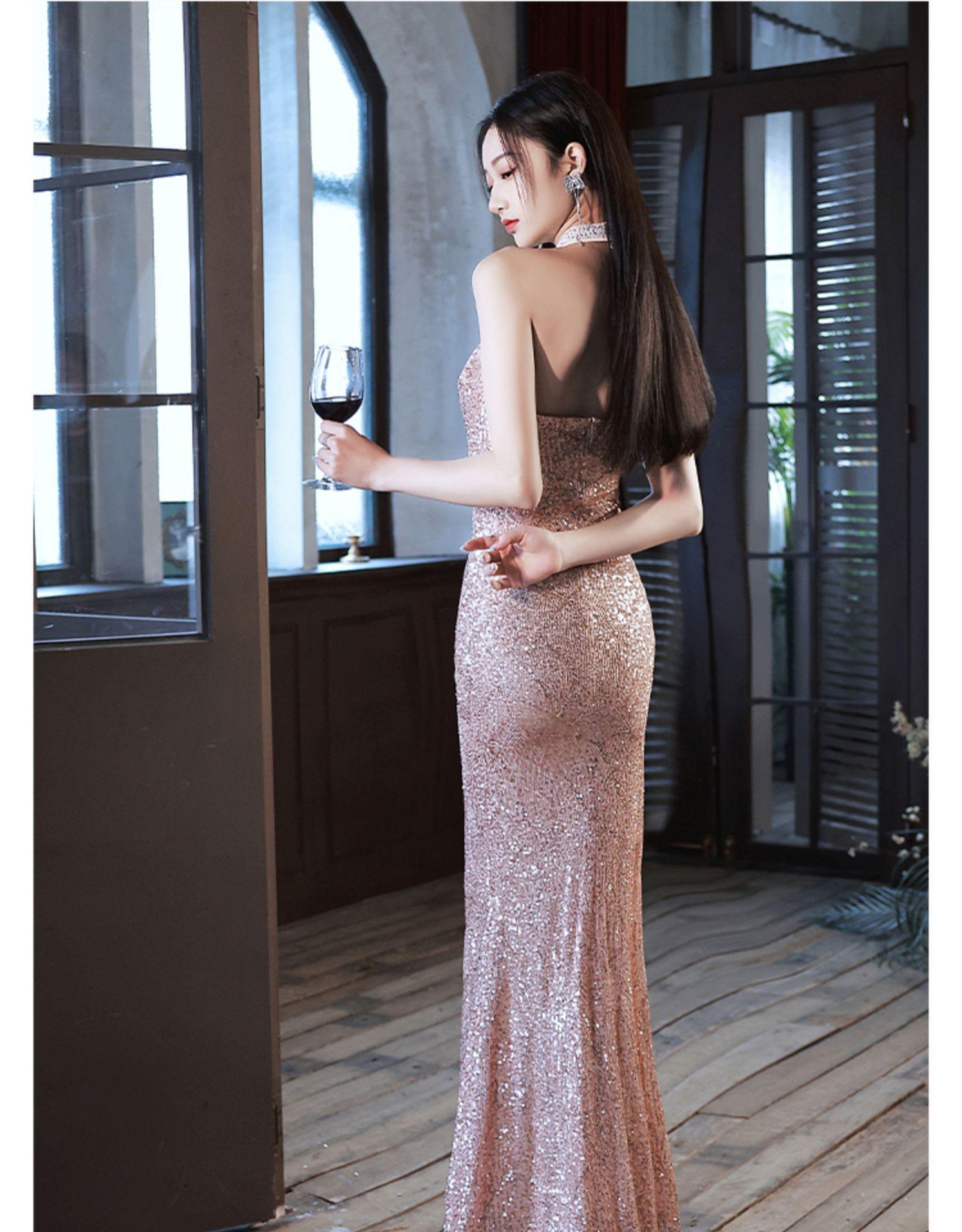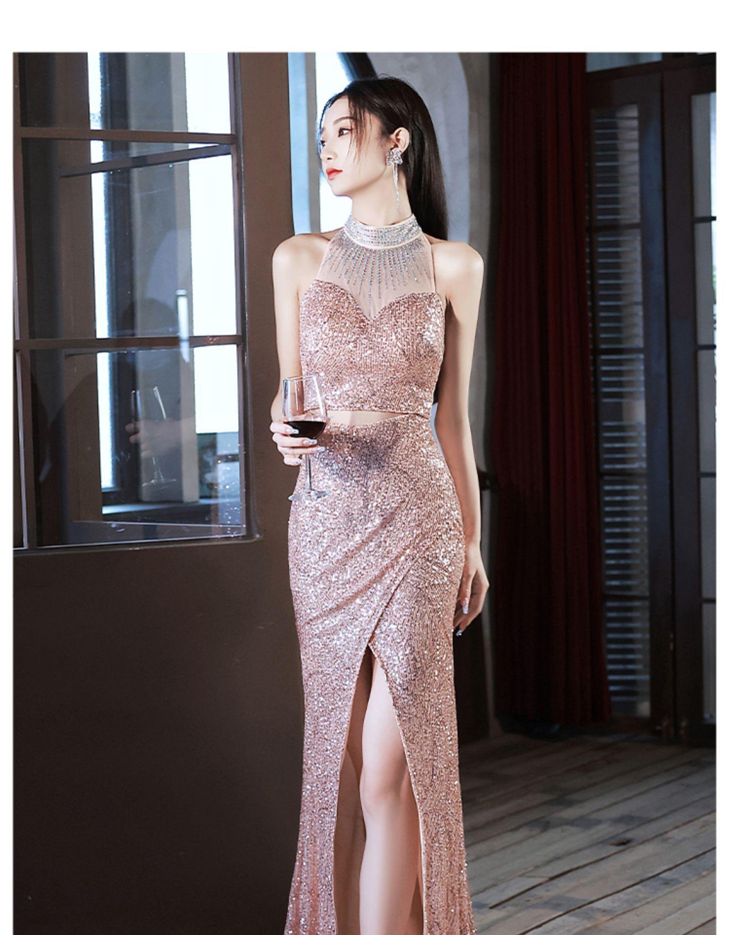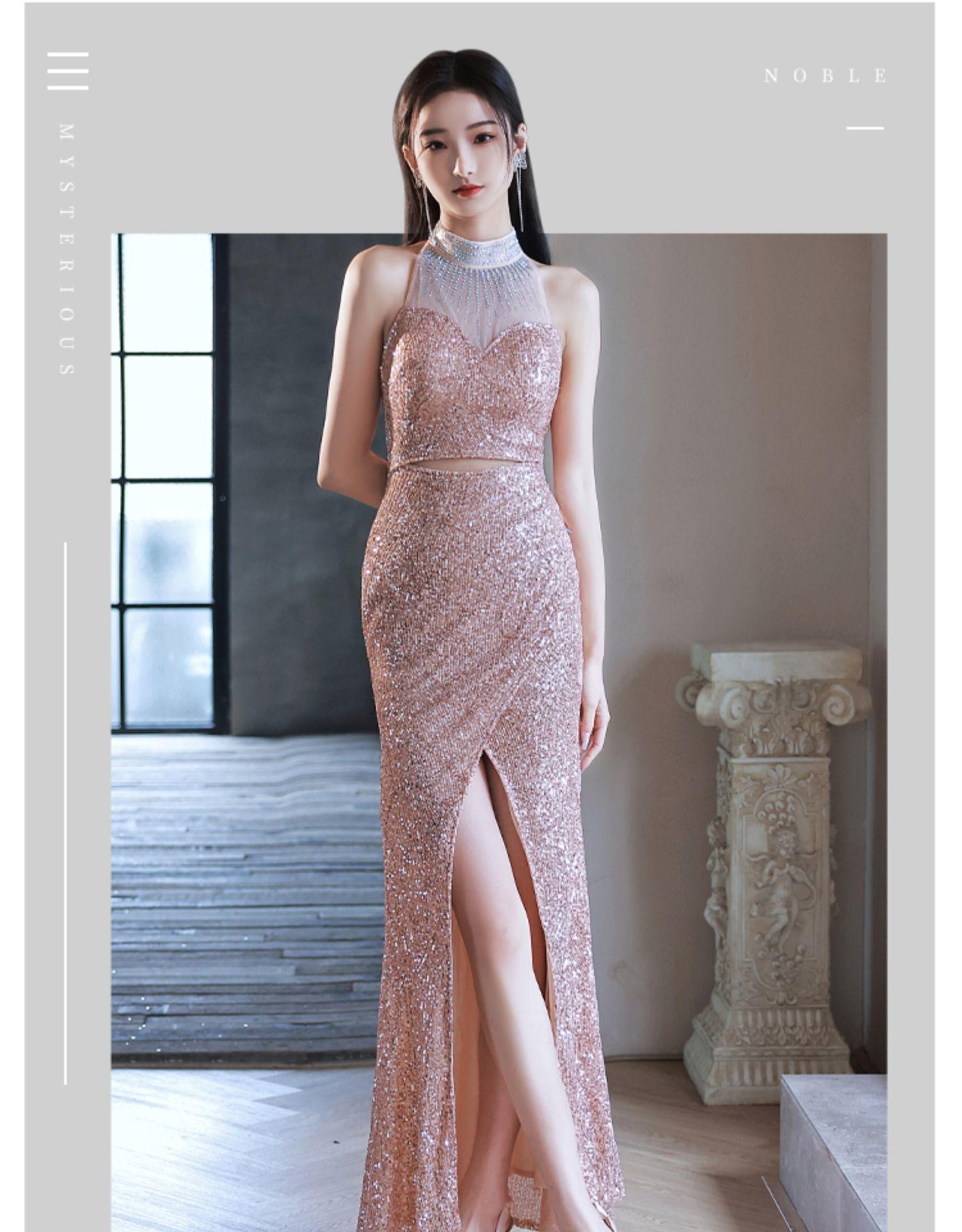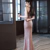 Vestido de noche personalizado para mujer, elegante, ligero, de lujo, de alta gama, con cola de pez, sin mangas, con abertura.