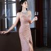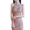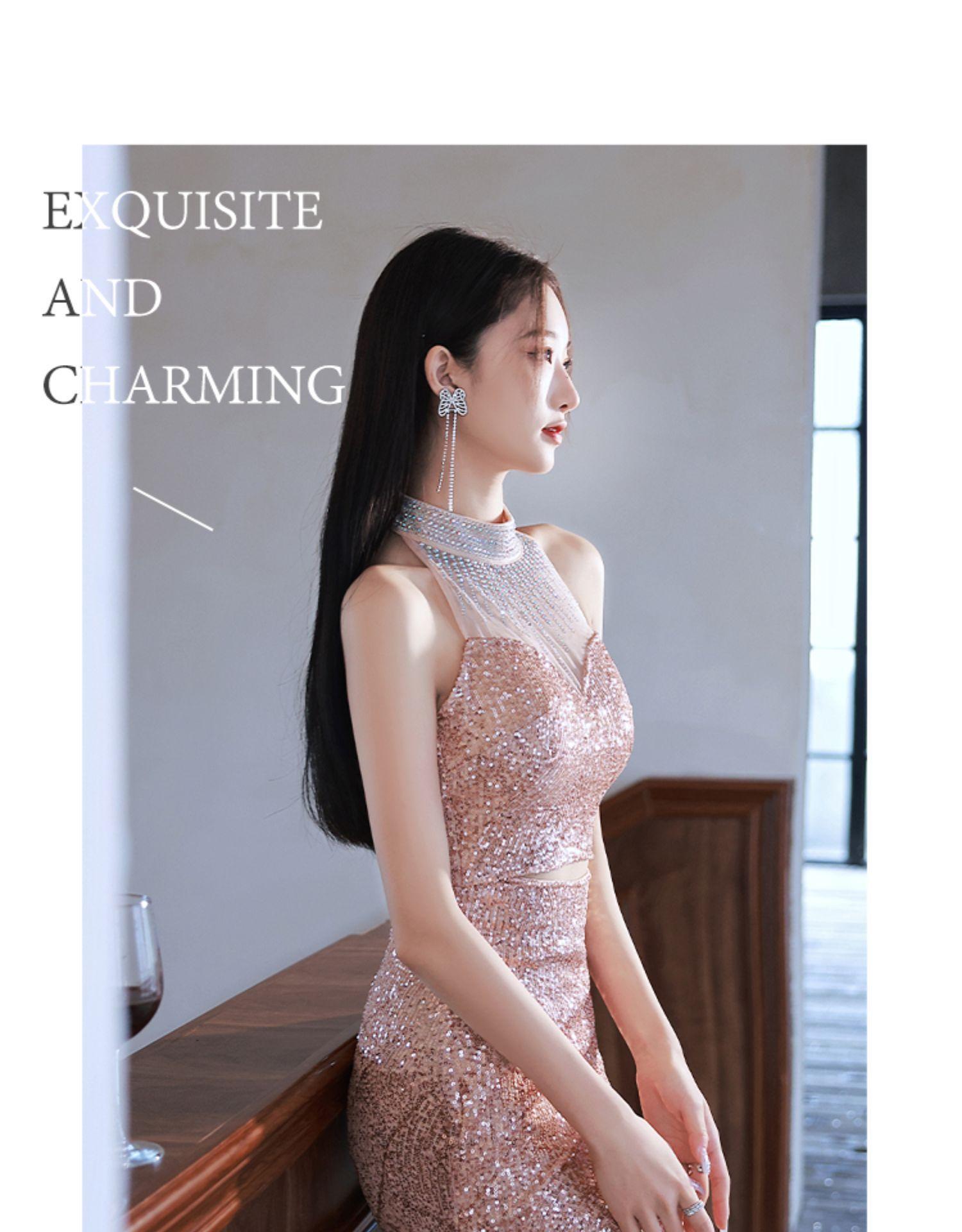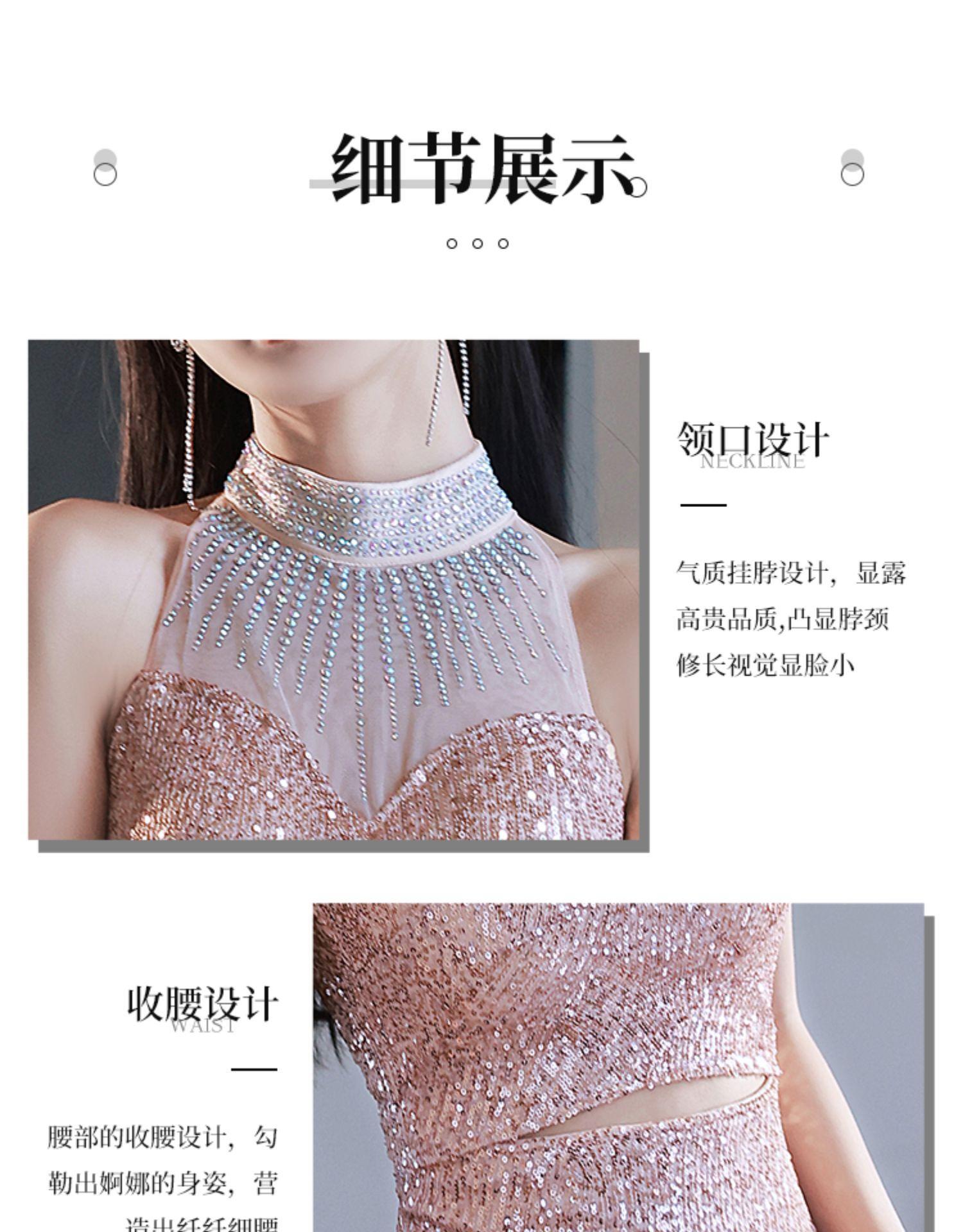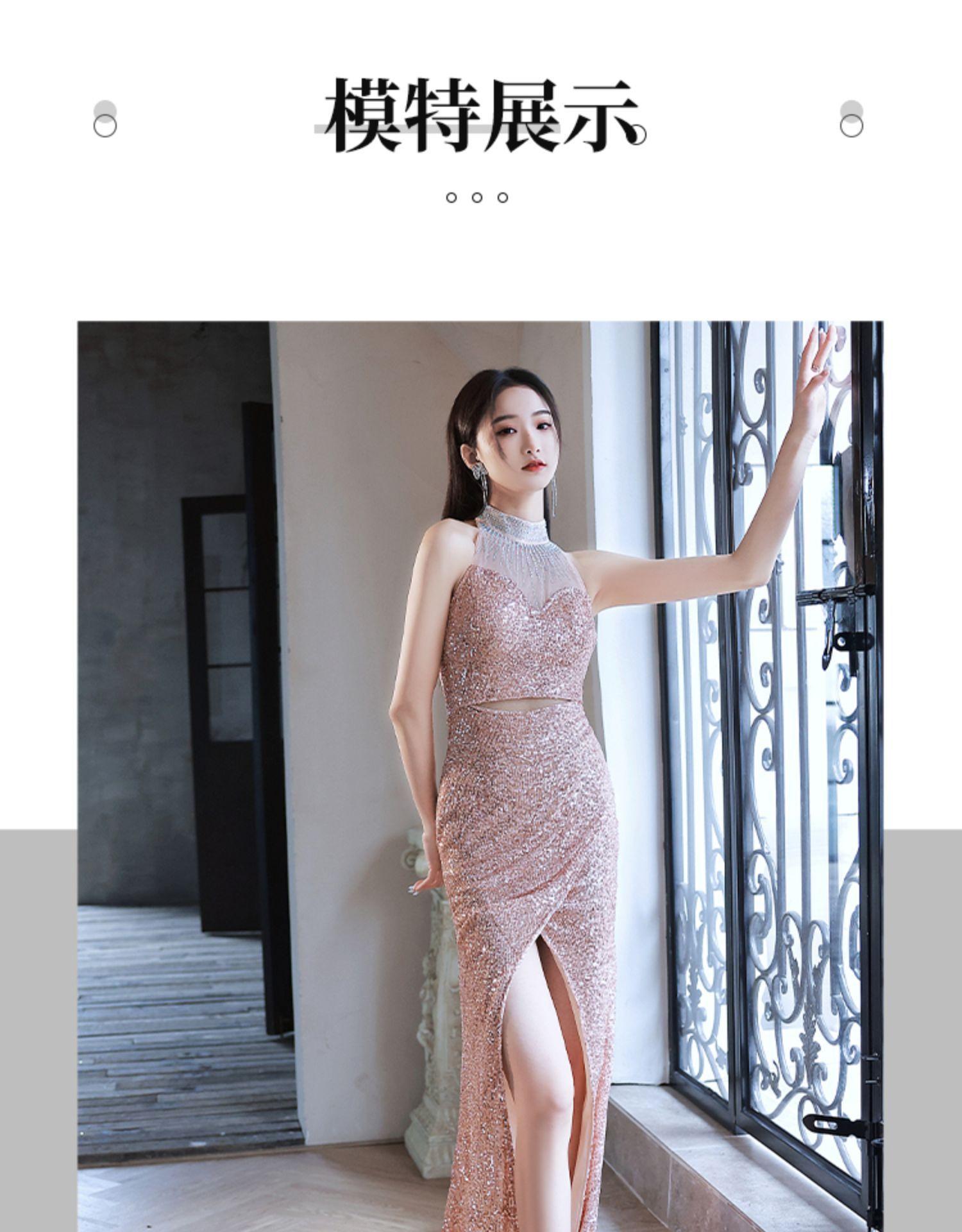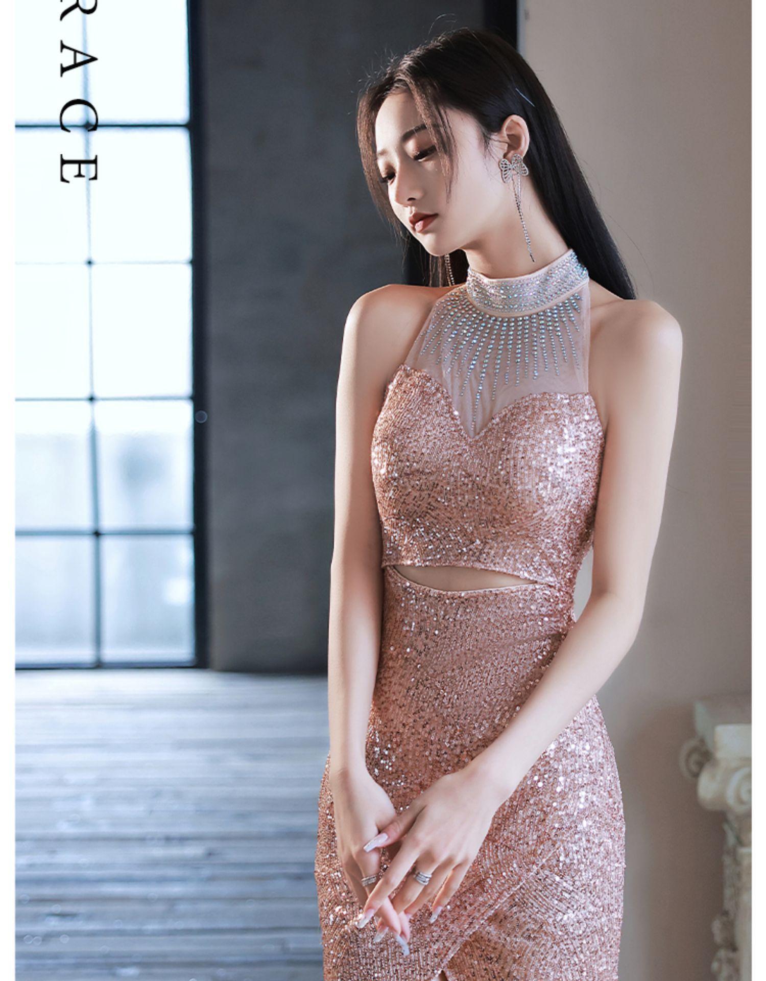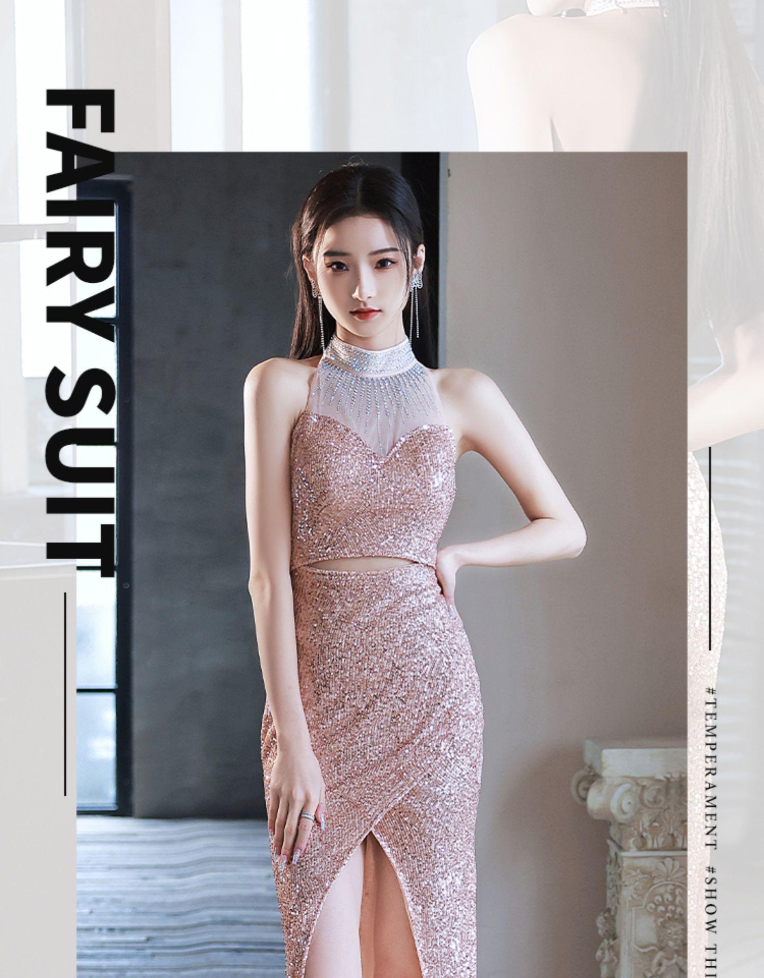 Vestido de noche personalizado para mujer, elegante, ligero, de lujo, de alta gama, con cola de pez, sin mangas, con abertura.