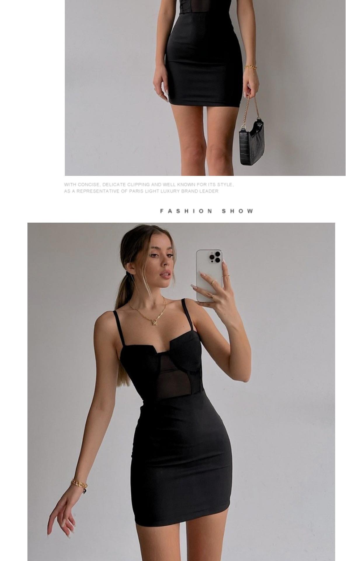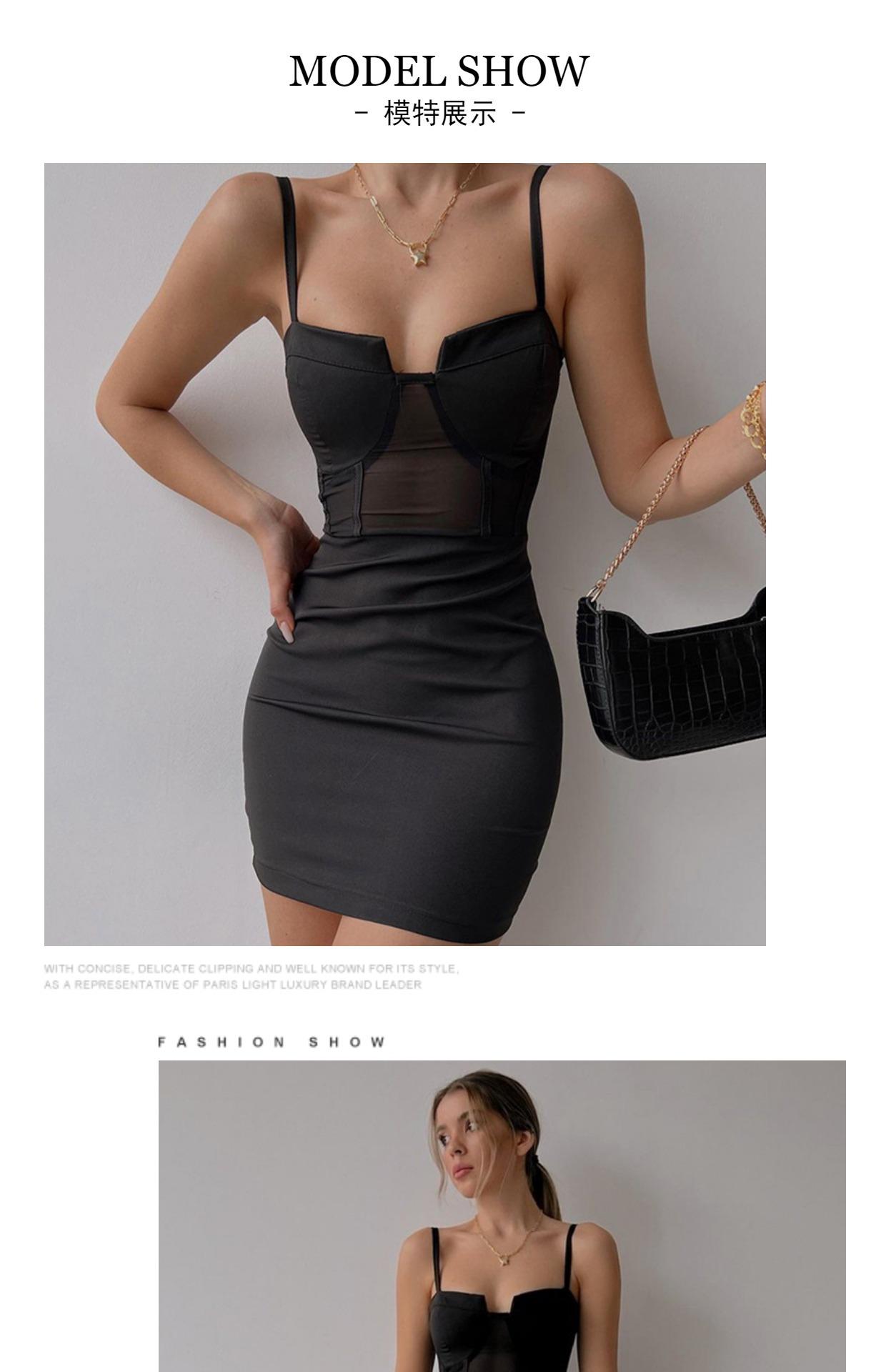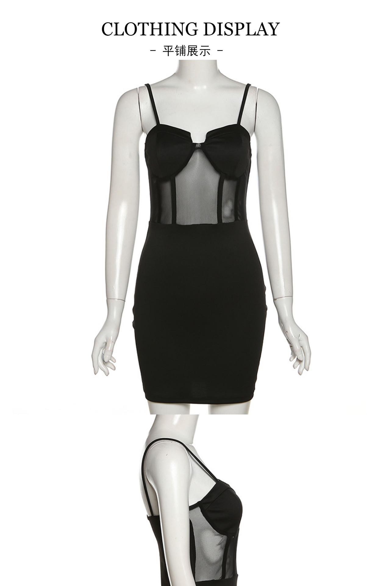 Vestido veraniego estilo discoteca europeo y americano, sexy, de corte bajo, con costuras de malla, microtransparente, ajustado y con falda tipo tubo.