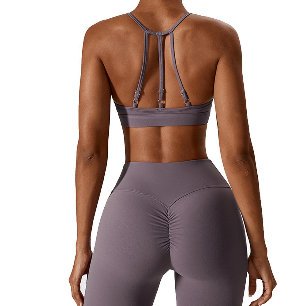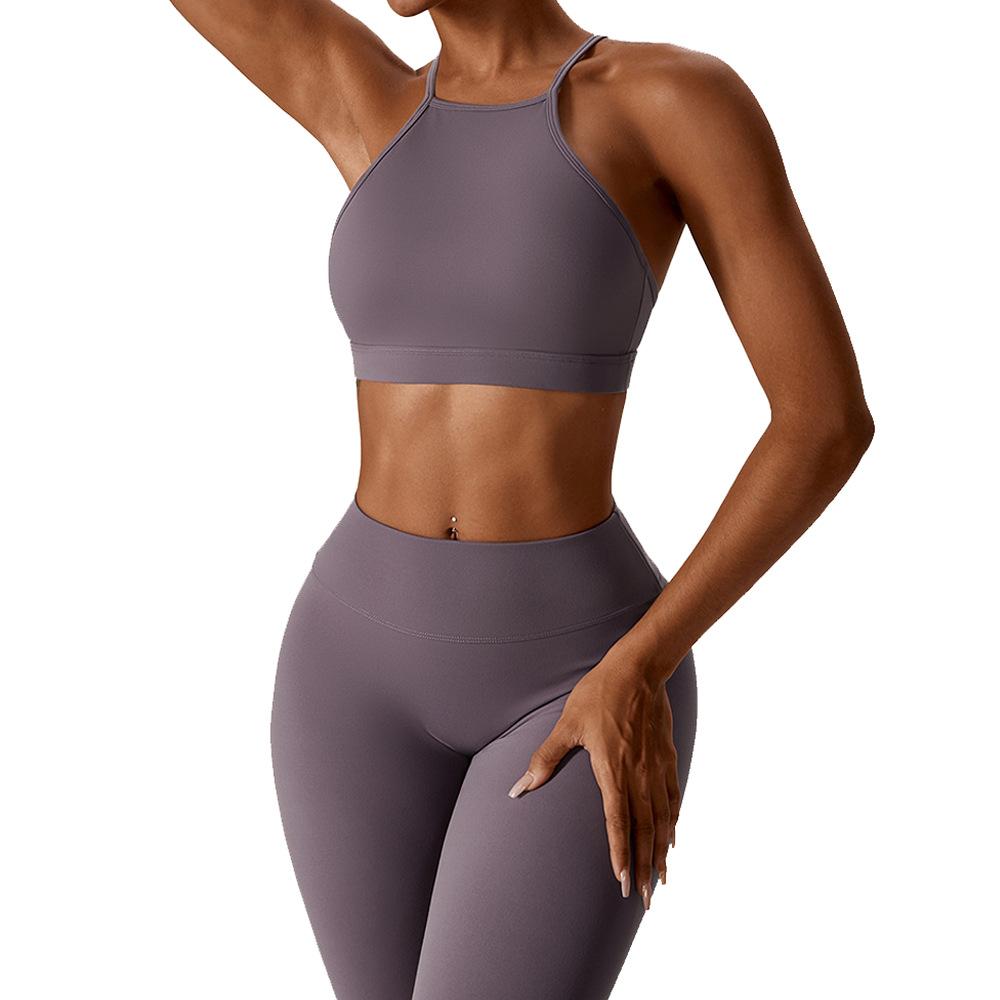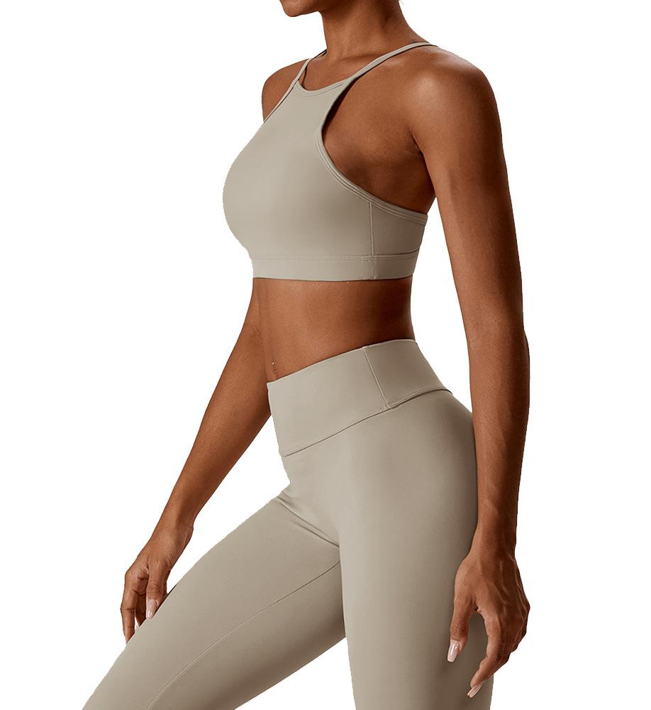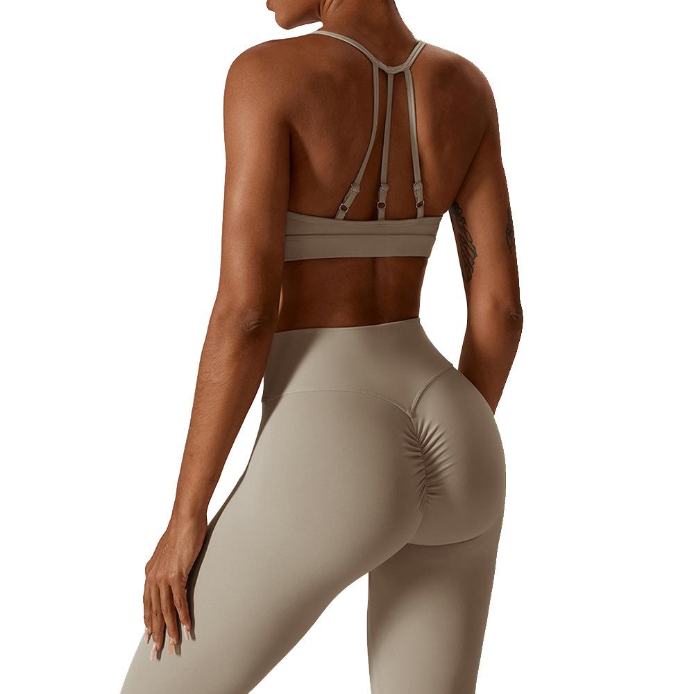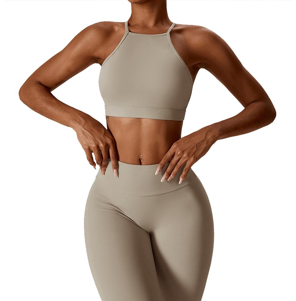 Sujetador de Yoga de Verano para Mujer Personalizado Europeo y Americano de Cuello Halter Espalda Hermosa Ropa Interior Deportiva Nude Chaleco de Yoga para Deportes al Aire Libre