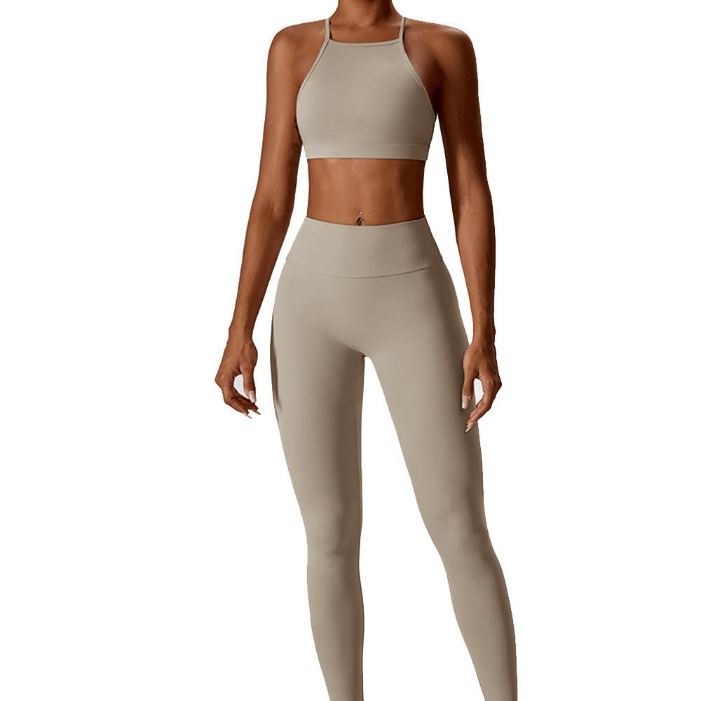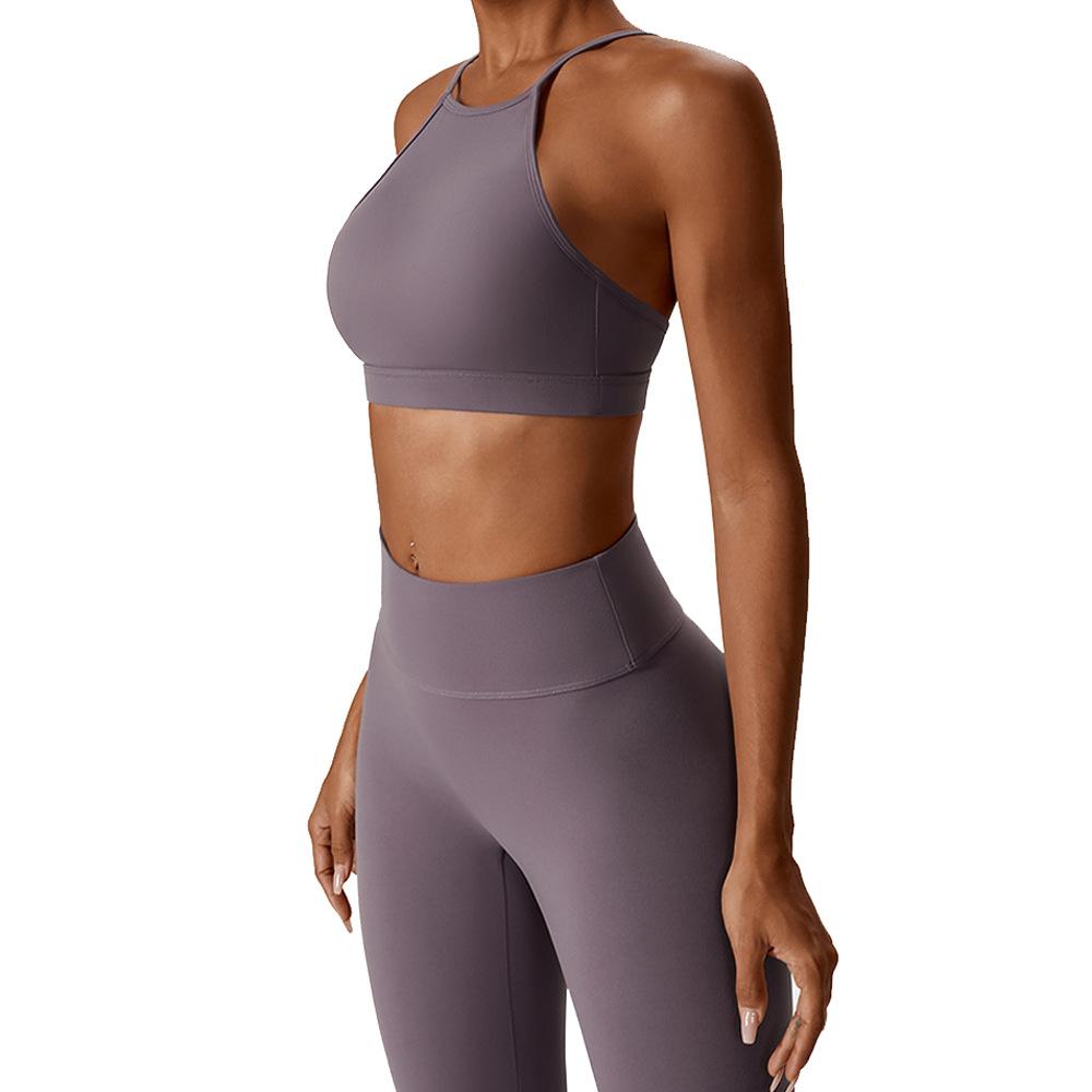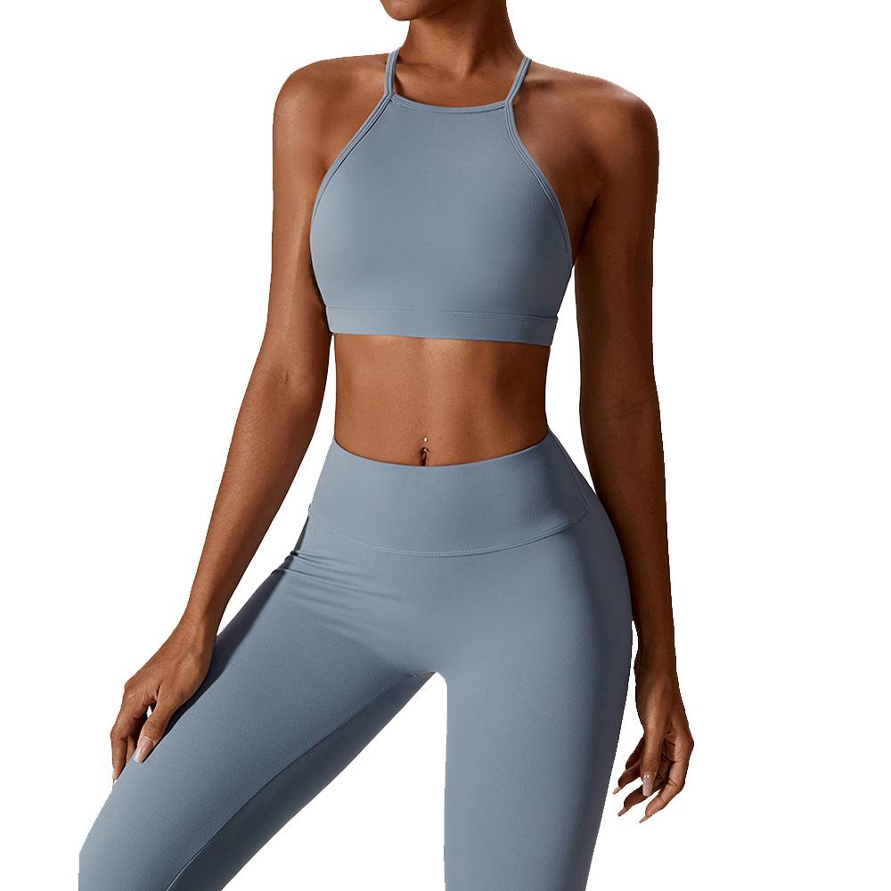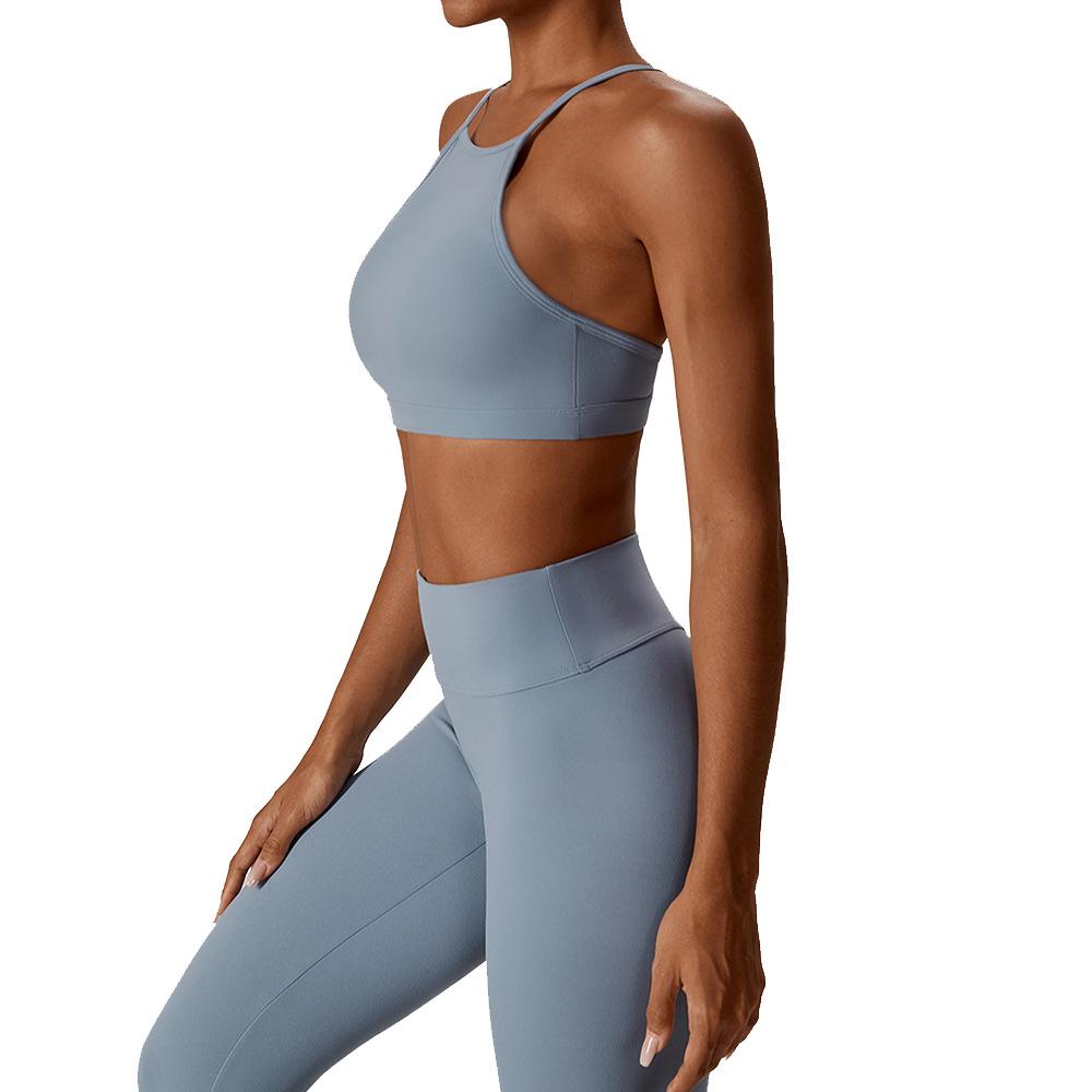 Sujetador de Yoga de Verano para Mujer Personalizado Europeo y Americano de Cuello Halter Espalda Hermosa Ropa Interior Deportiva Nude Chaleco de Yoga para Deportes al Aire Libre